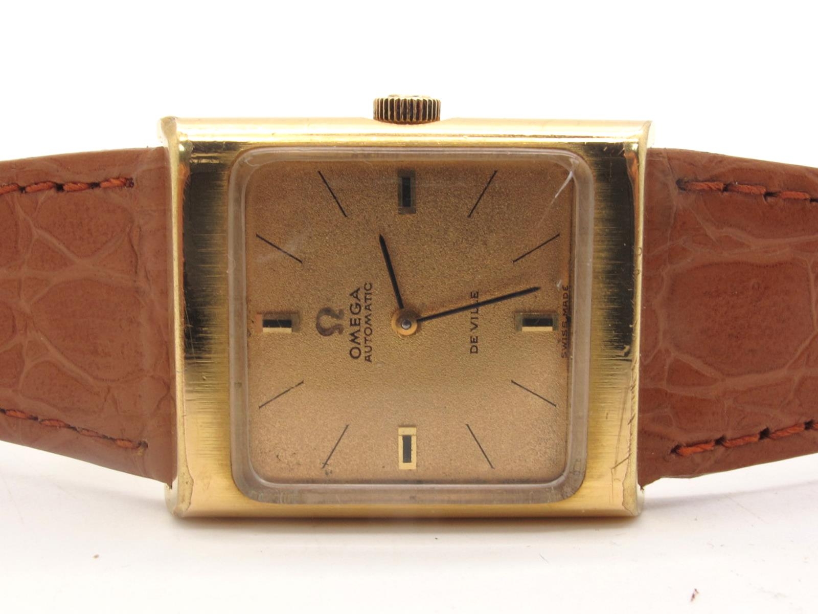 Omega; A Gold Plated Cased De Ville Automatic Ladies Wristwatch, the signed square dial with line markers, the movement stamped "Omega Watch Co", 671 calibre, inside case back stamped "551.047", on a later strap.