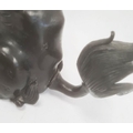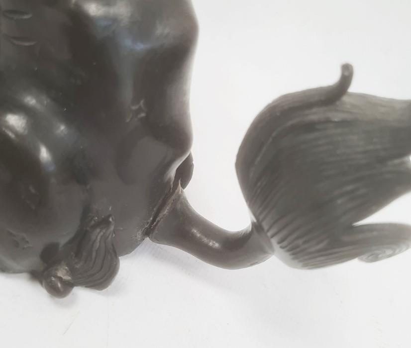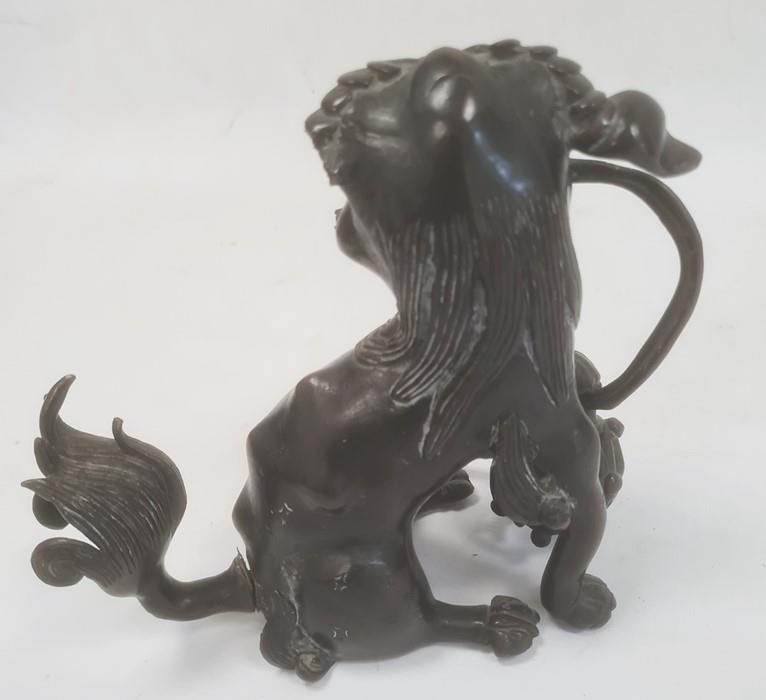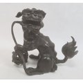 Chinese bronze model of a lion dog seated with pierced ball (with losses), 20cm high