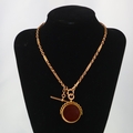 An early 20th century 9ct gold watch chain, the fancy link chain with interlocking and rope twist detail, suspending a 'T-bar' lobster swivel and an associated 9ct gold mounted swivel fob, initialled to reverse, hallmarked for Birmingham 1919, overall length of chain 37cm, gross weight 30gms (including fob)