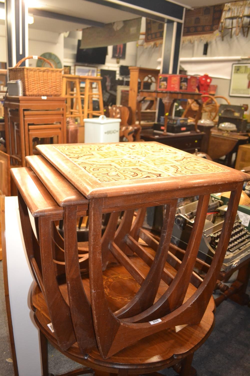 G Plan nest of three tables, largest with tile top 50 x 50 x 50cm