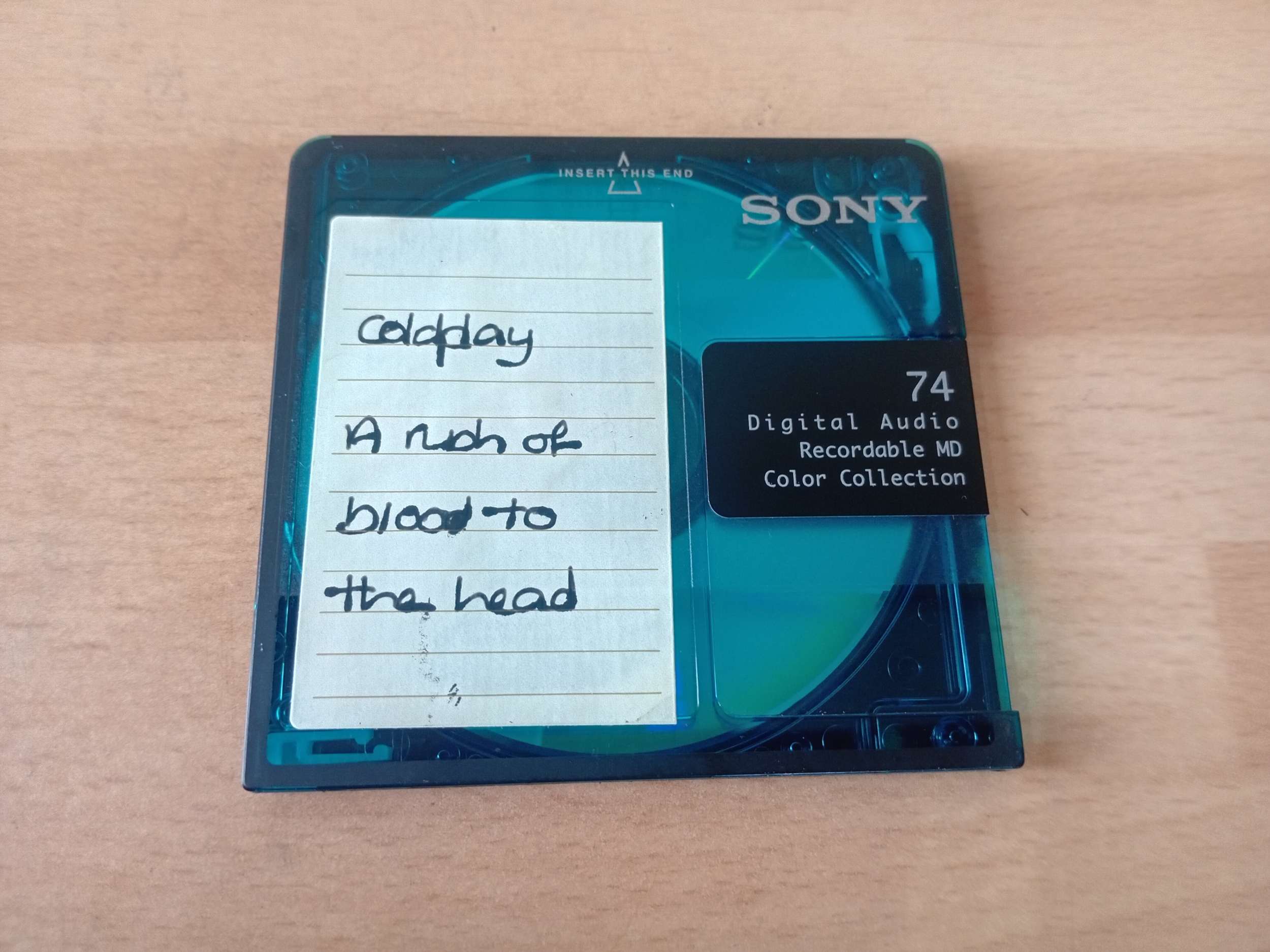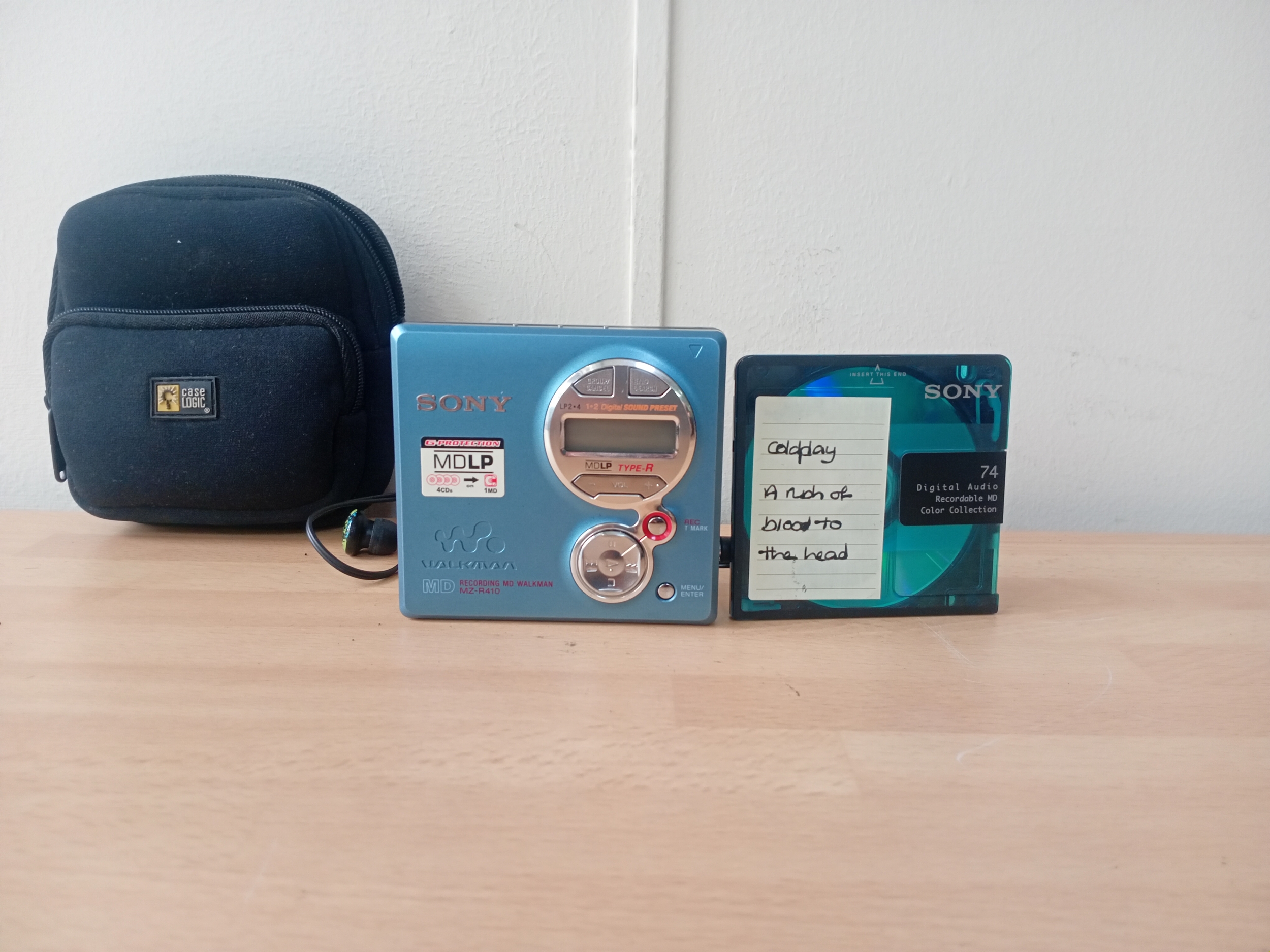A vintage sony recording Walkman mzr410 with a digital audio mixer colour collection of Coldplay. Working.