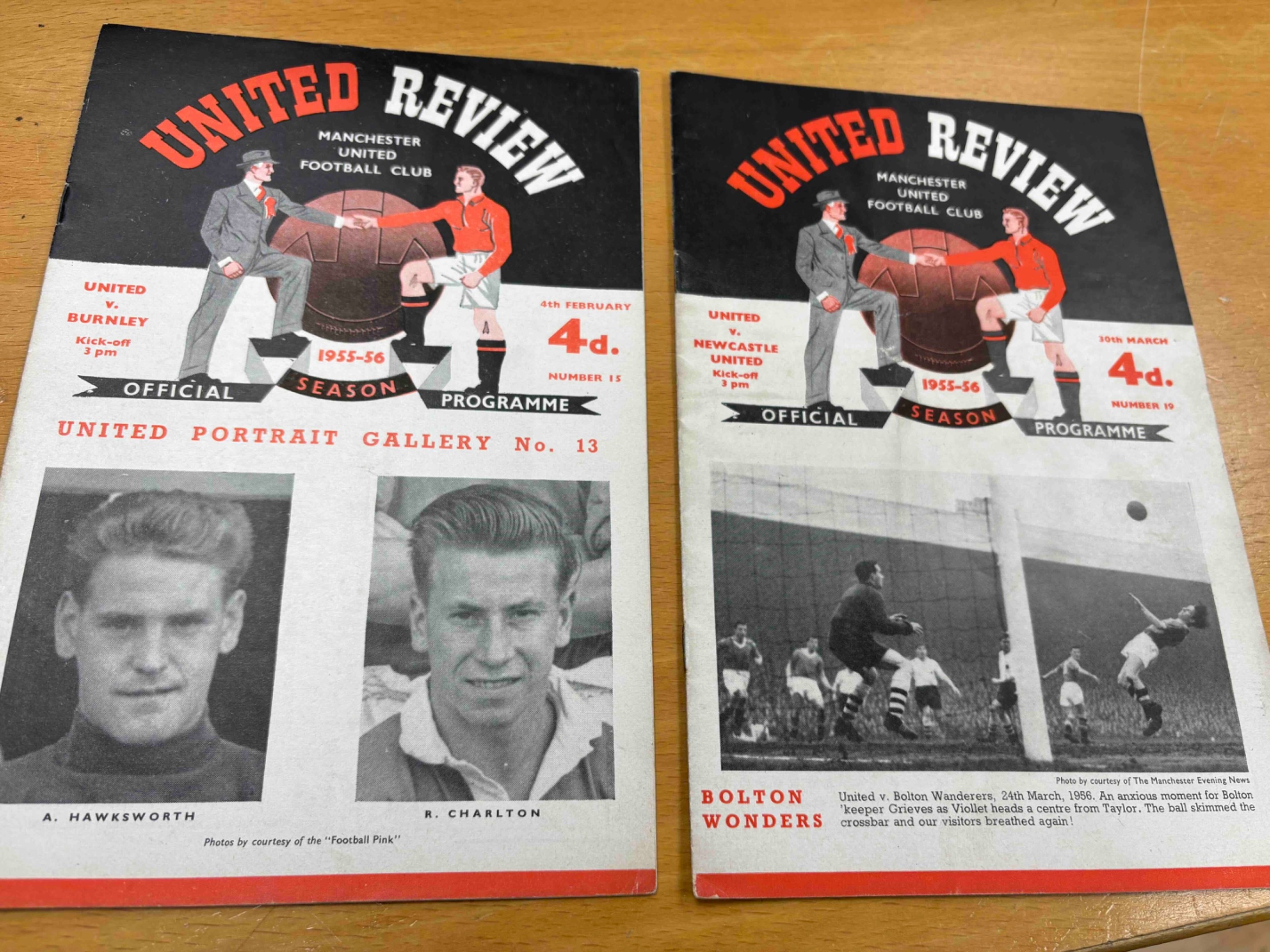 MANCHESTER UNITED: 55/56 Championship Season Burnley, Newcastle (2) all programmes very good, tokens intact, all neat team changes