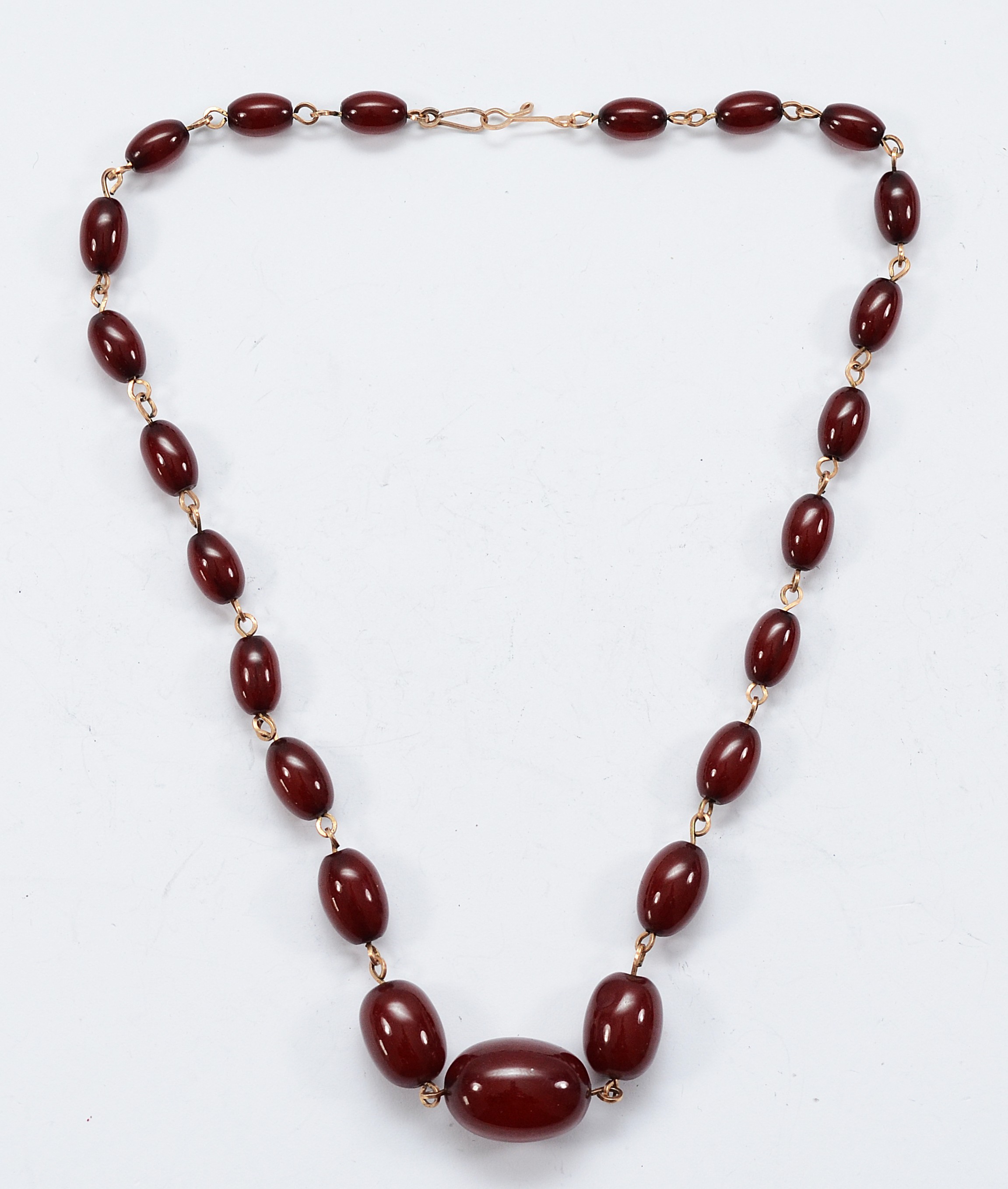 A cherry Bakelite beaded necklace, largest bead 20mm, 46cm, 19g