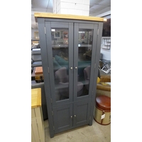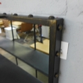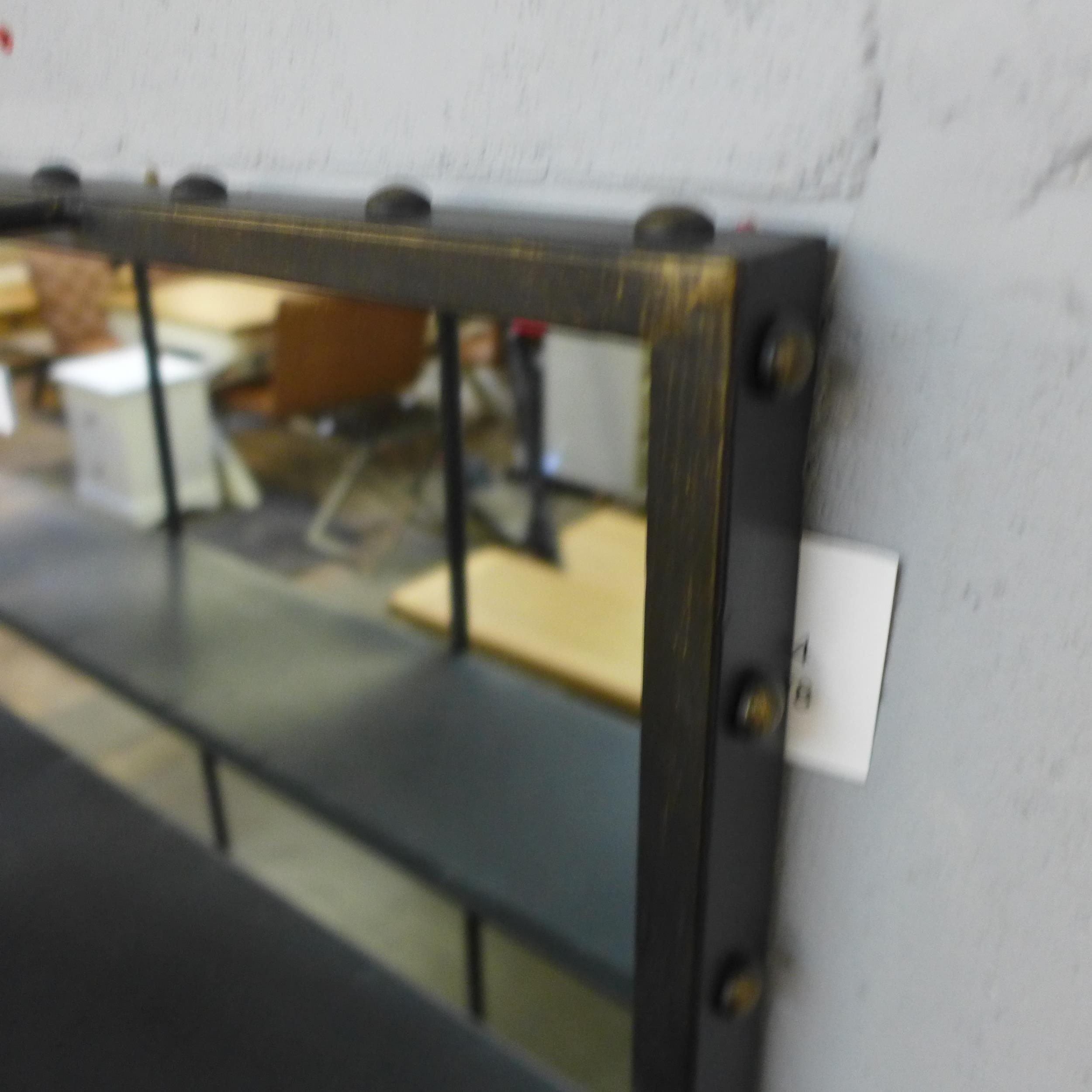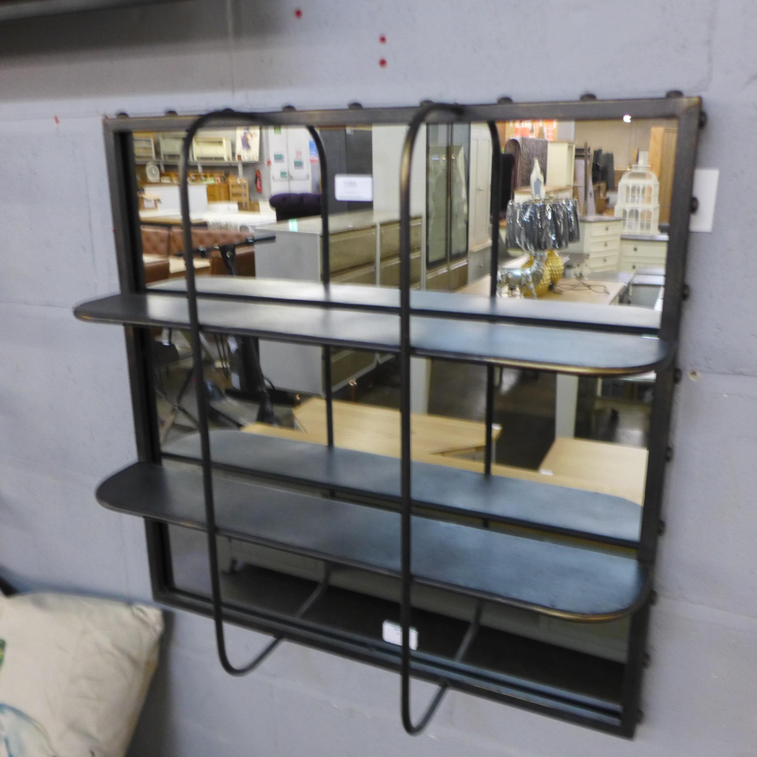 An antiqued black industrial wall mirror with shelves (JCS1458) #