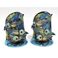 Bottom fish on one bookend with signs of restoration to mouth, some crazing to both.