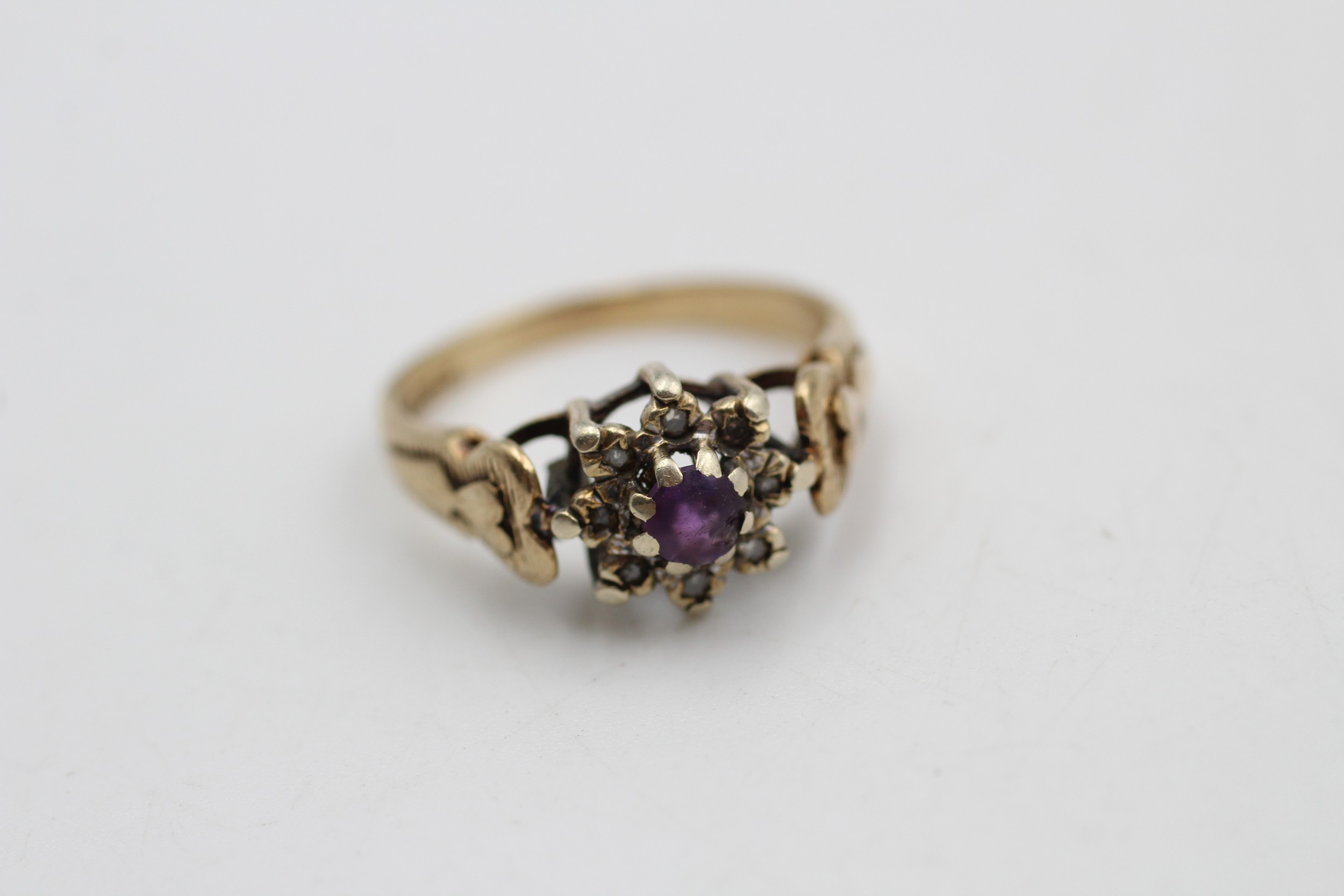 9ct Gold Vintage Amethyst & Diamond Cluster Ring (3.2g) 9983