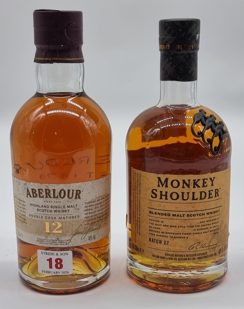 Two 70cl bottles of Whisky, comprising: Monkey Shoulder Batch 27; and Aberlour Double Cask Matured 12 Year Old. (2)