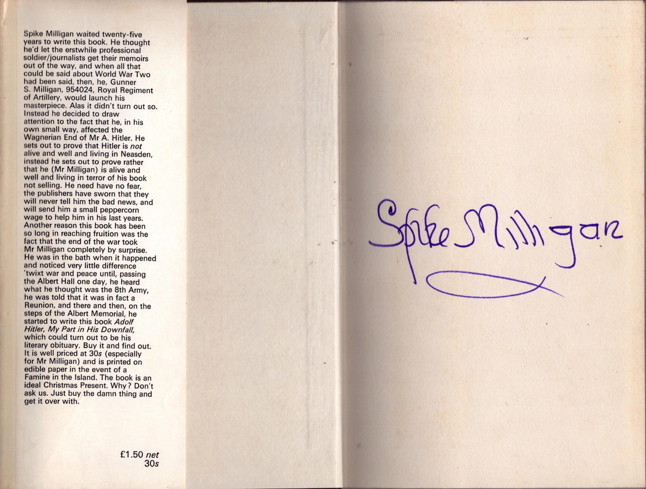 Spike Milligan signed Adolf Hitler - my part in his downfall hardback book.