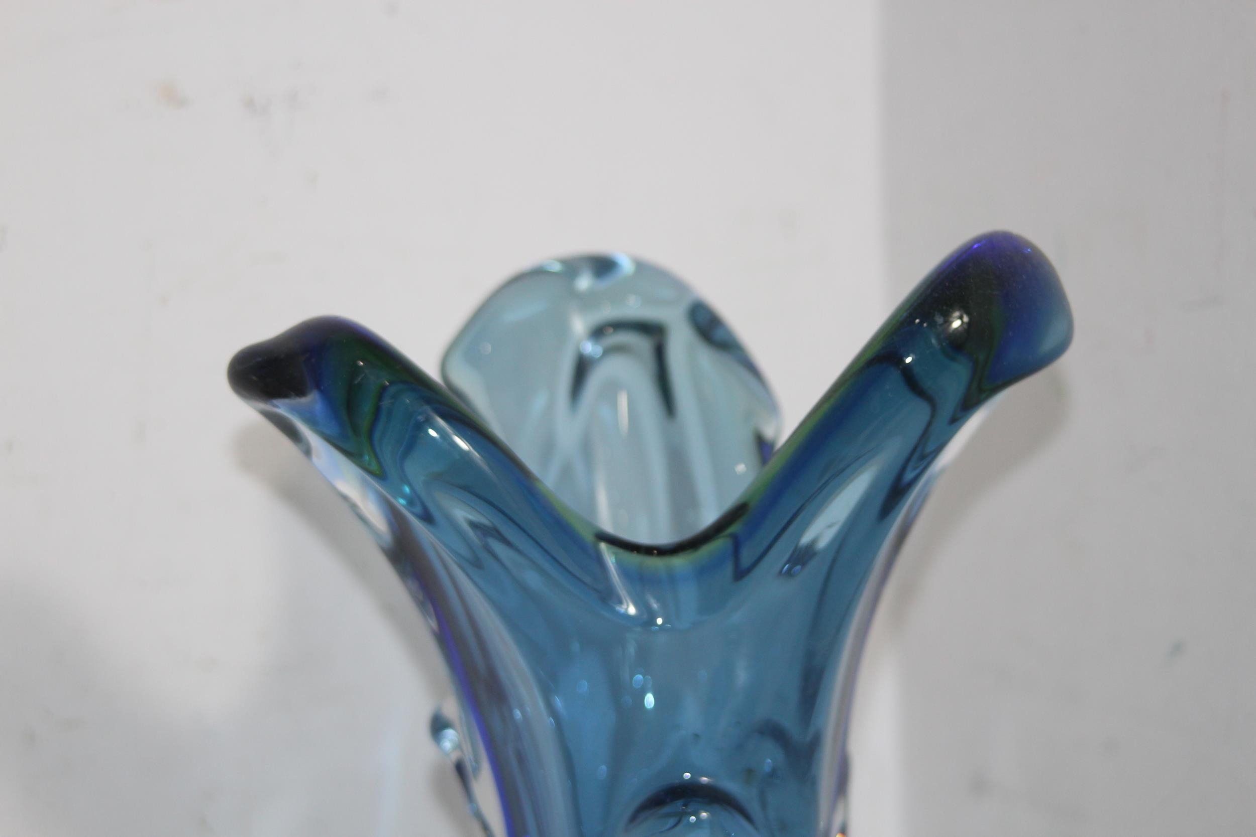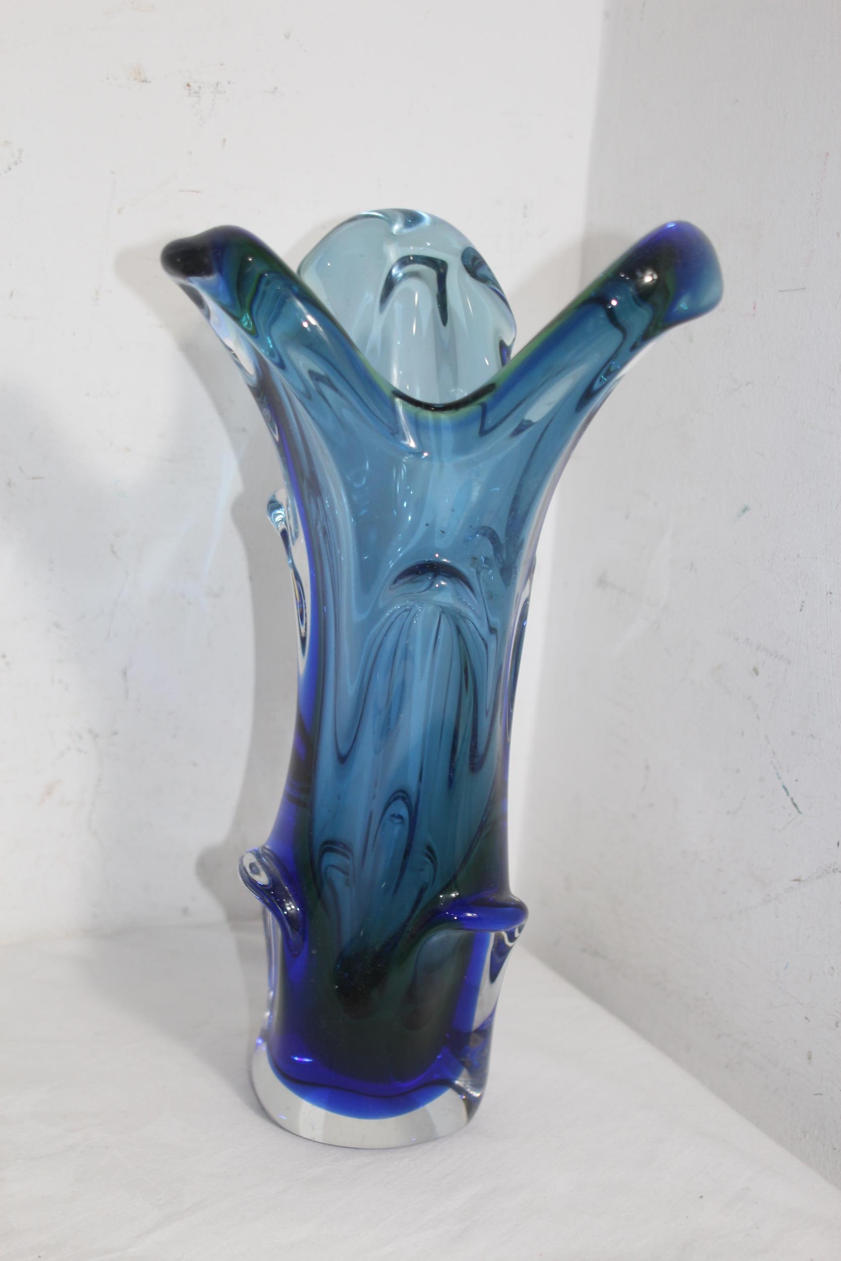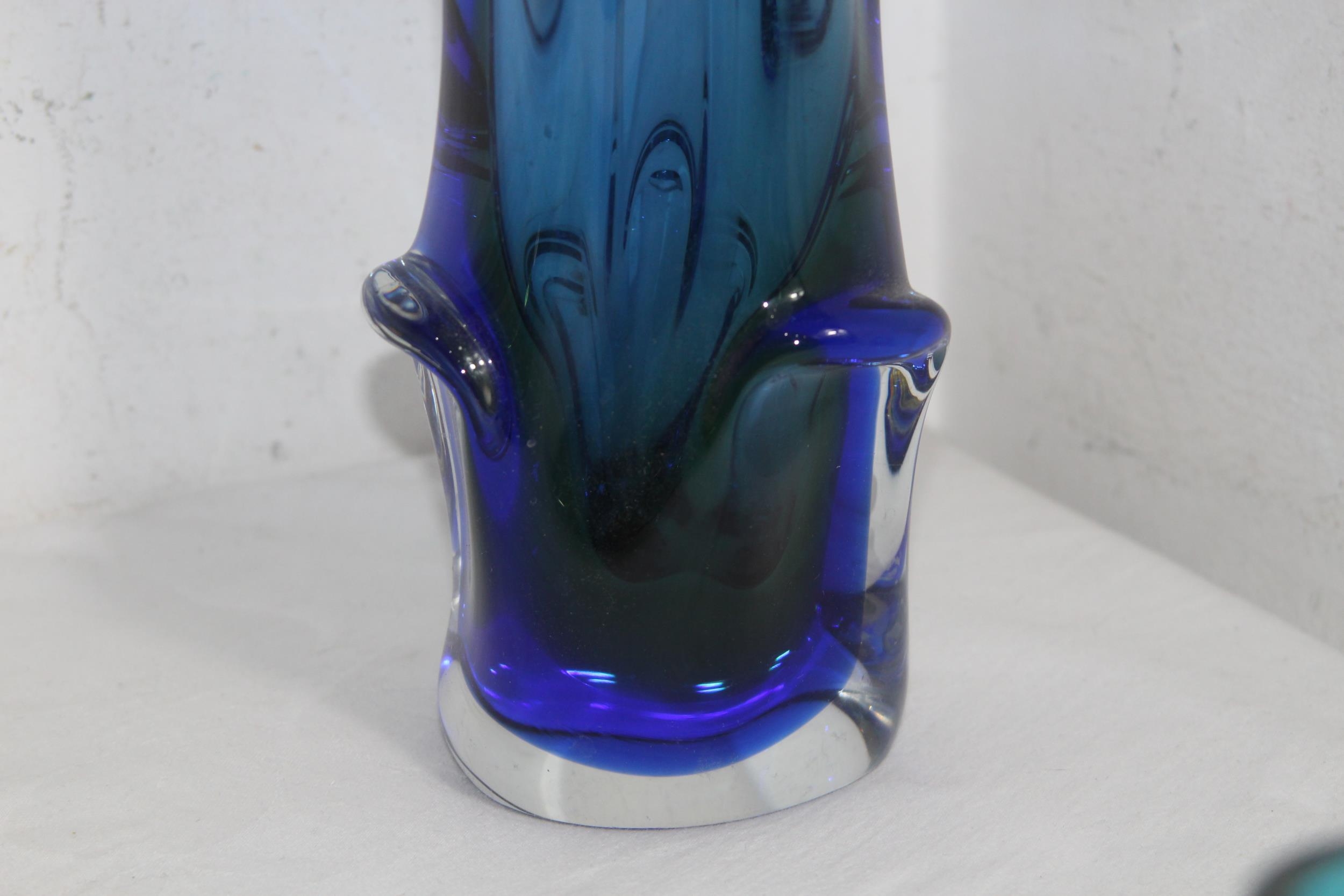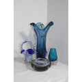 FOUR BLUE ART GLASS PIECES 32CM