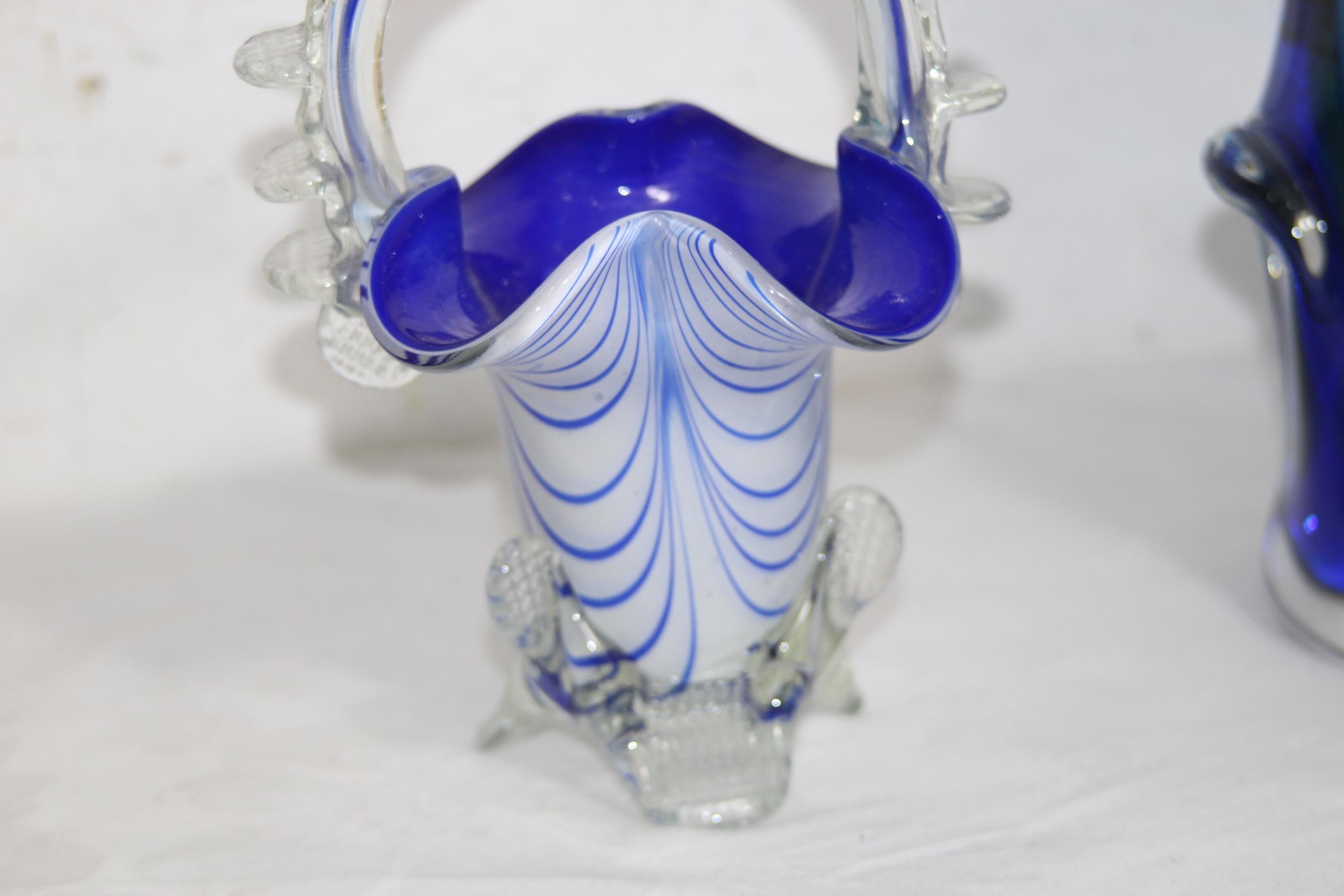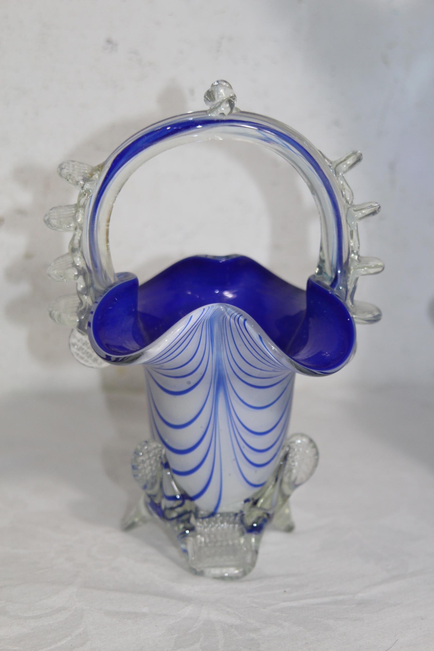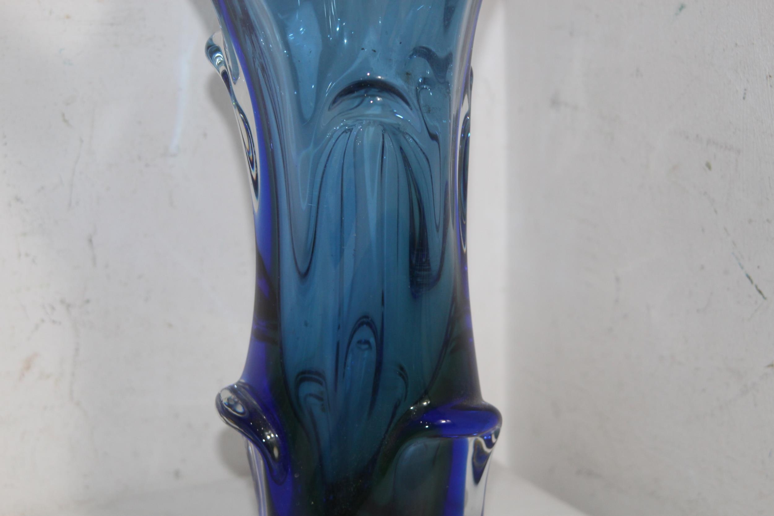 FOUR BLUE ART GLASS PIECES 32CM