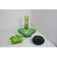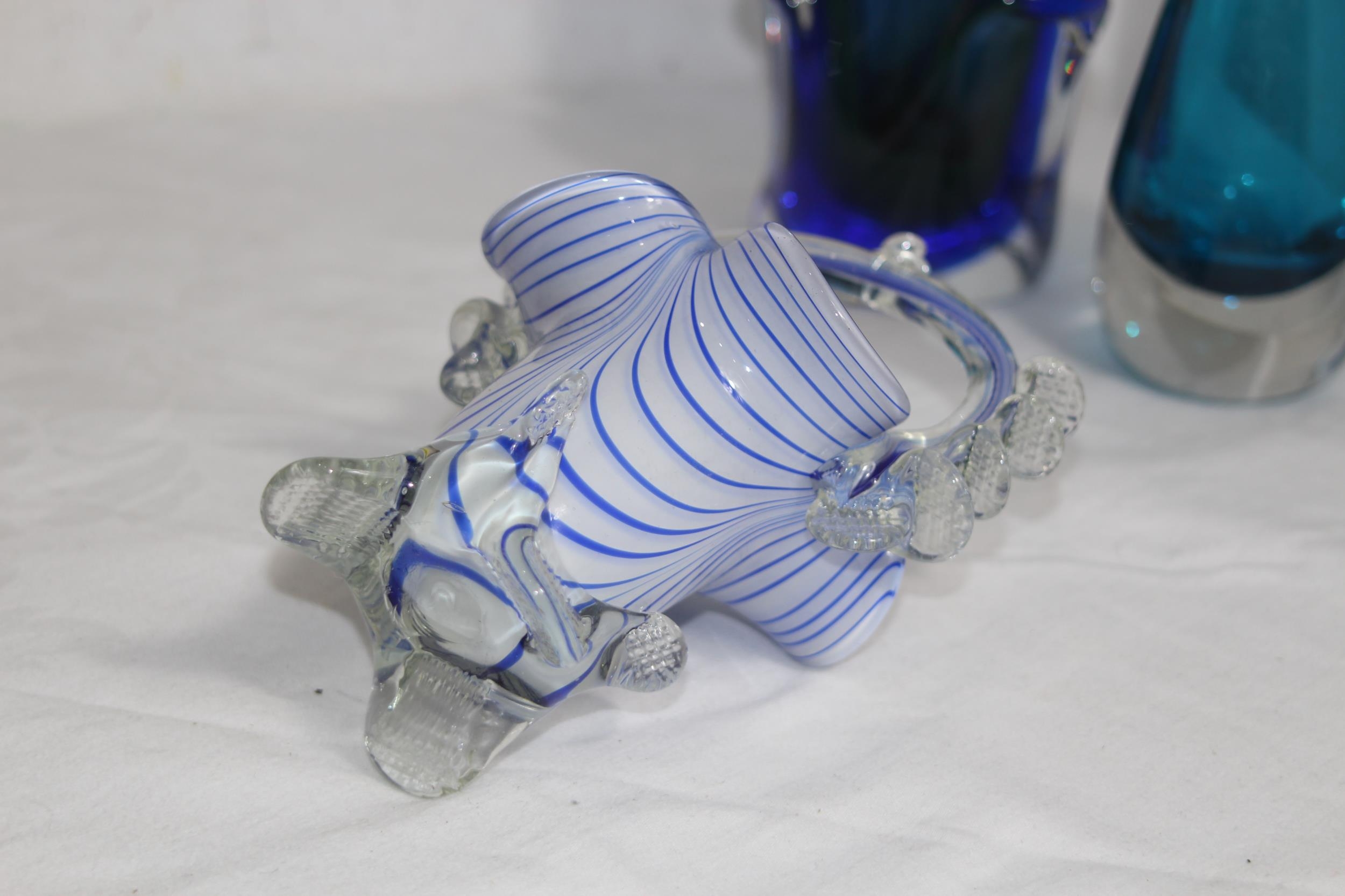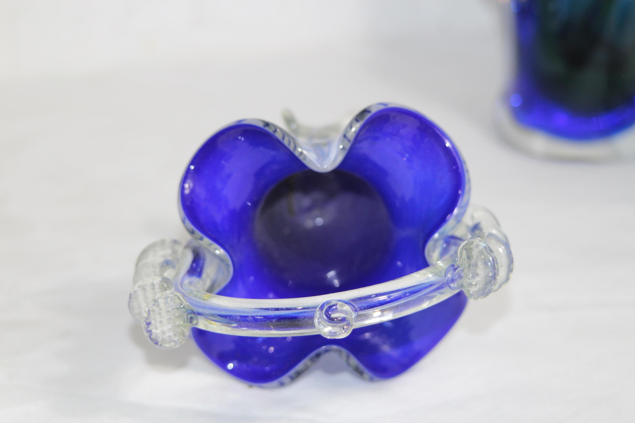 FOUR BLUE ART GLASS PIECES