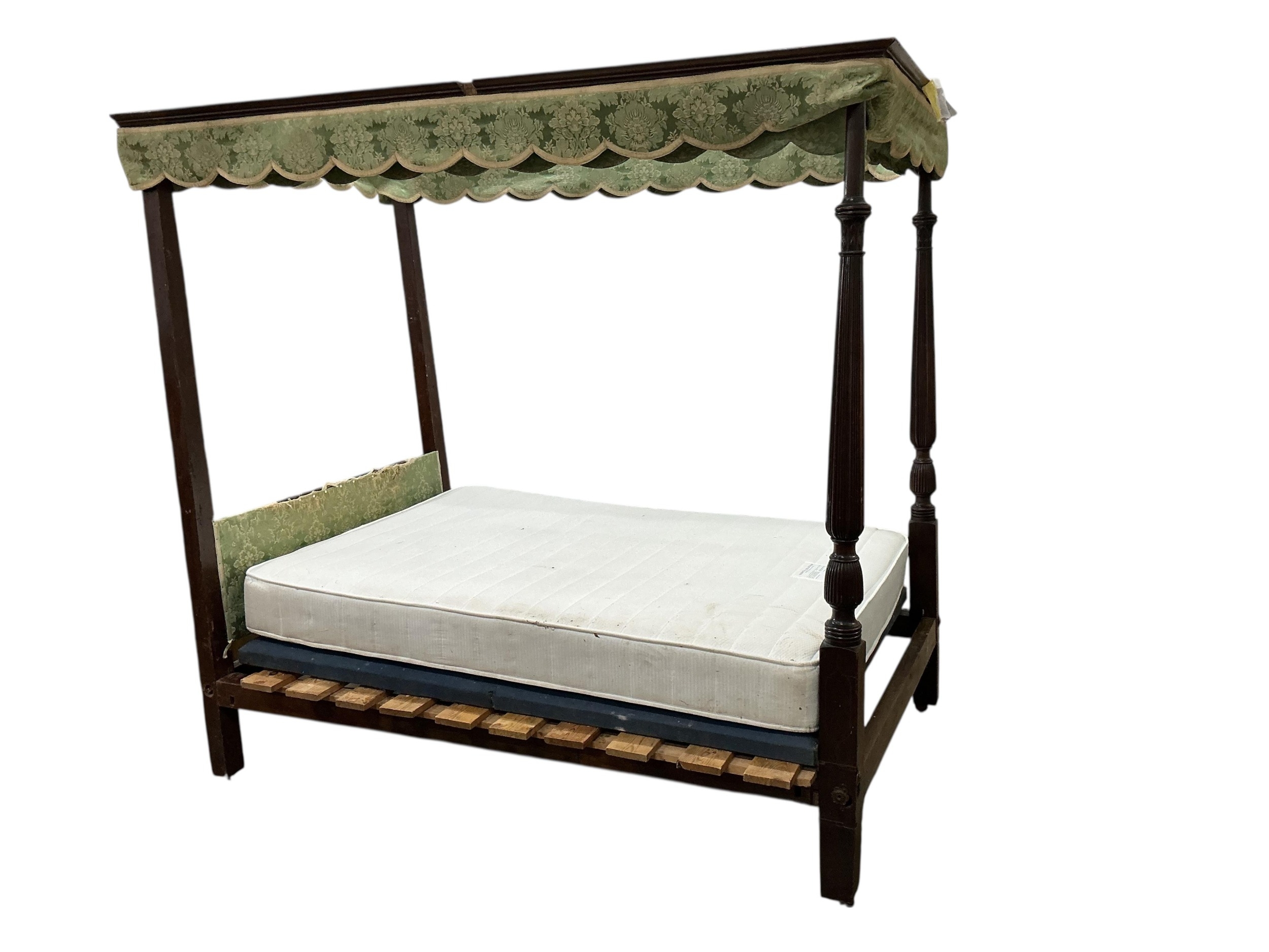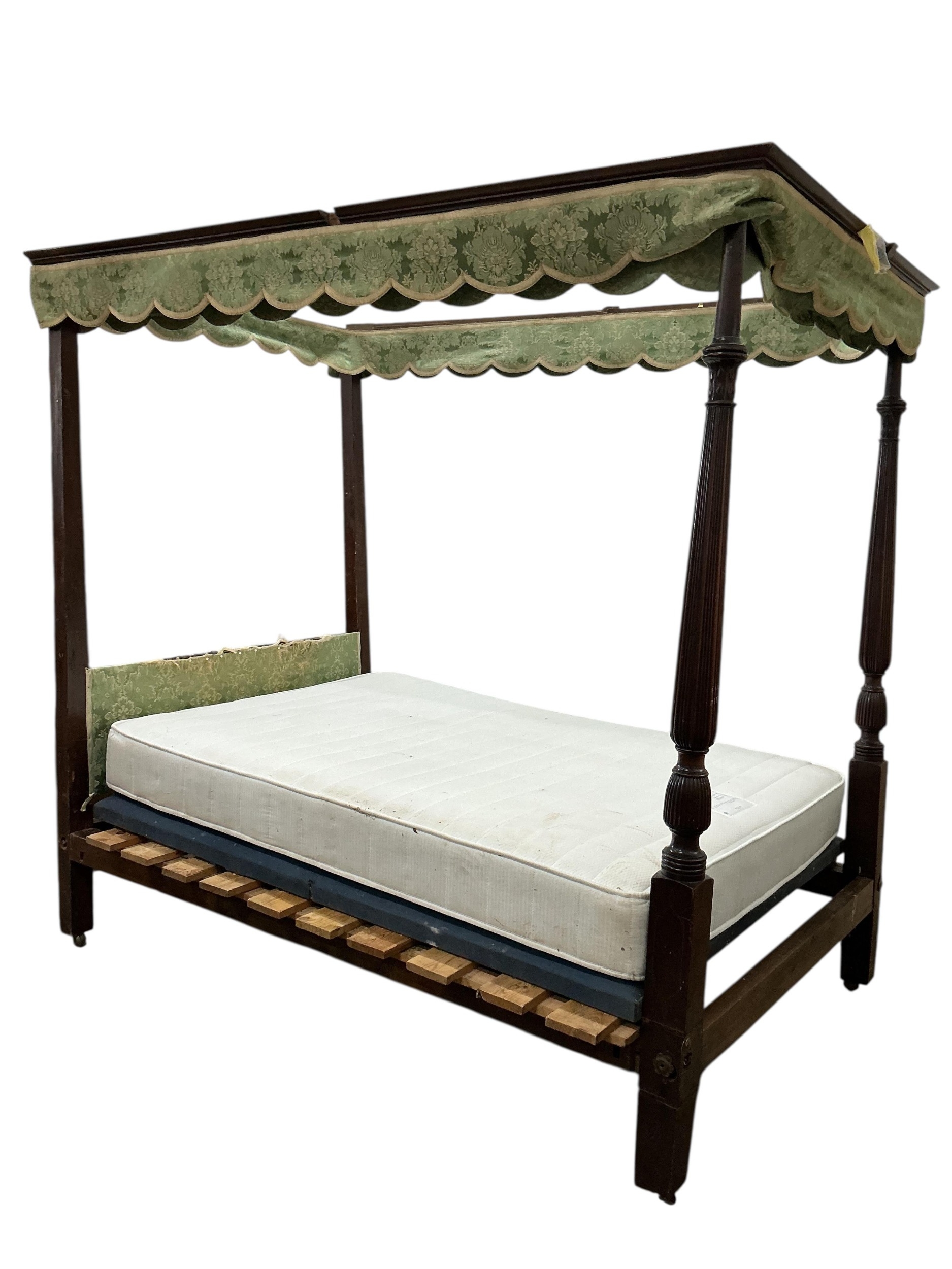 A George III and later oak and mahogany four poster bed, width 136cm, length 212cm, height 212cm.