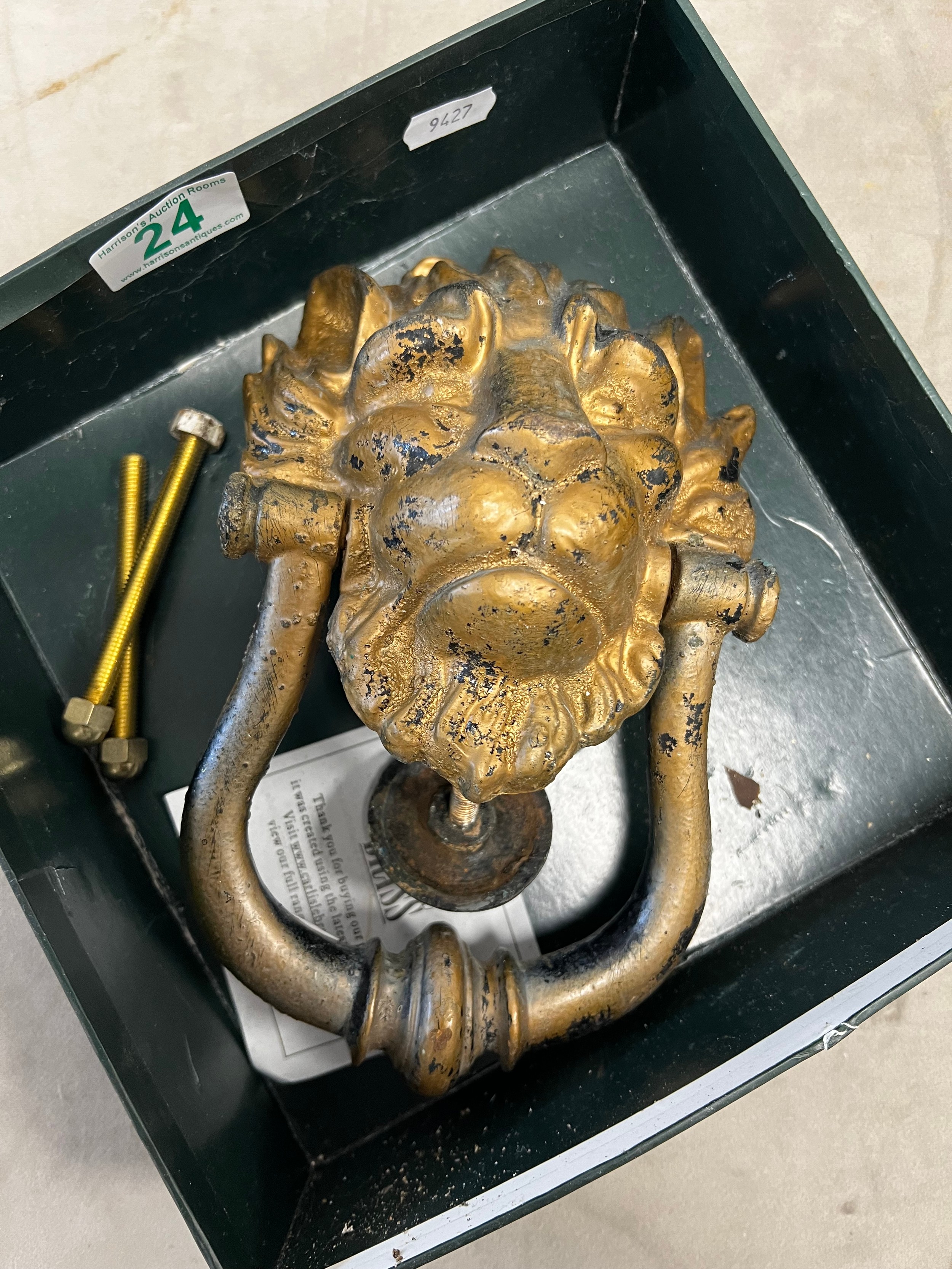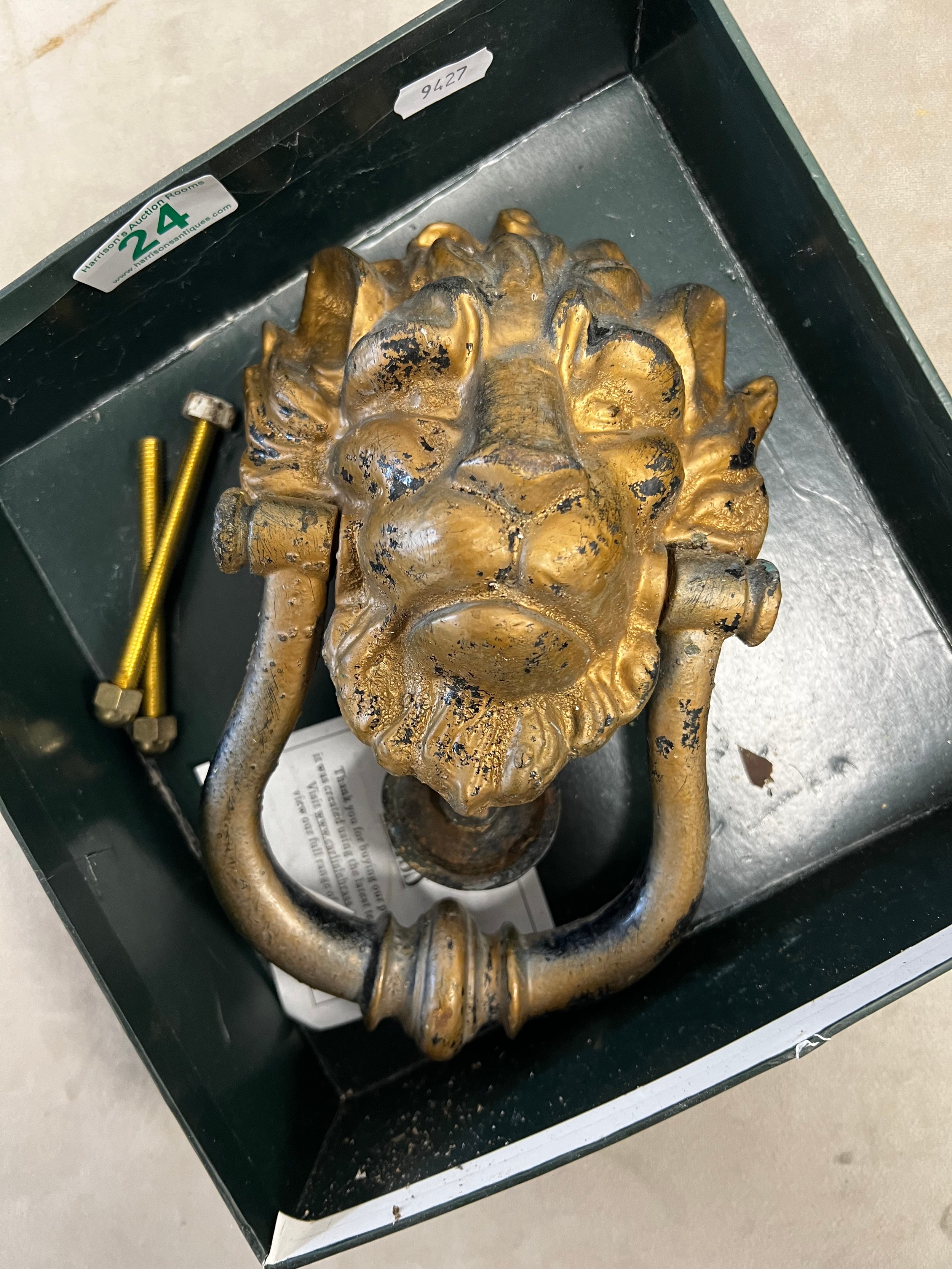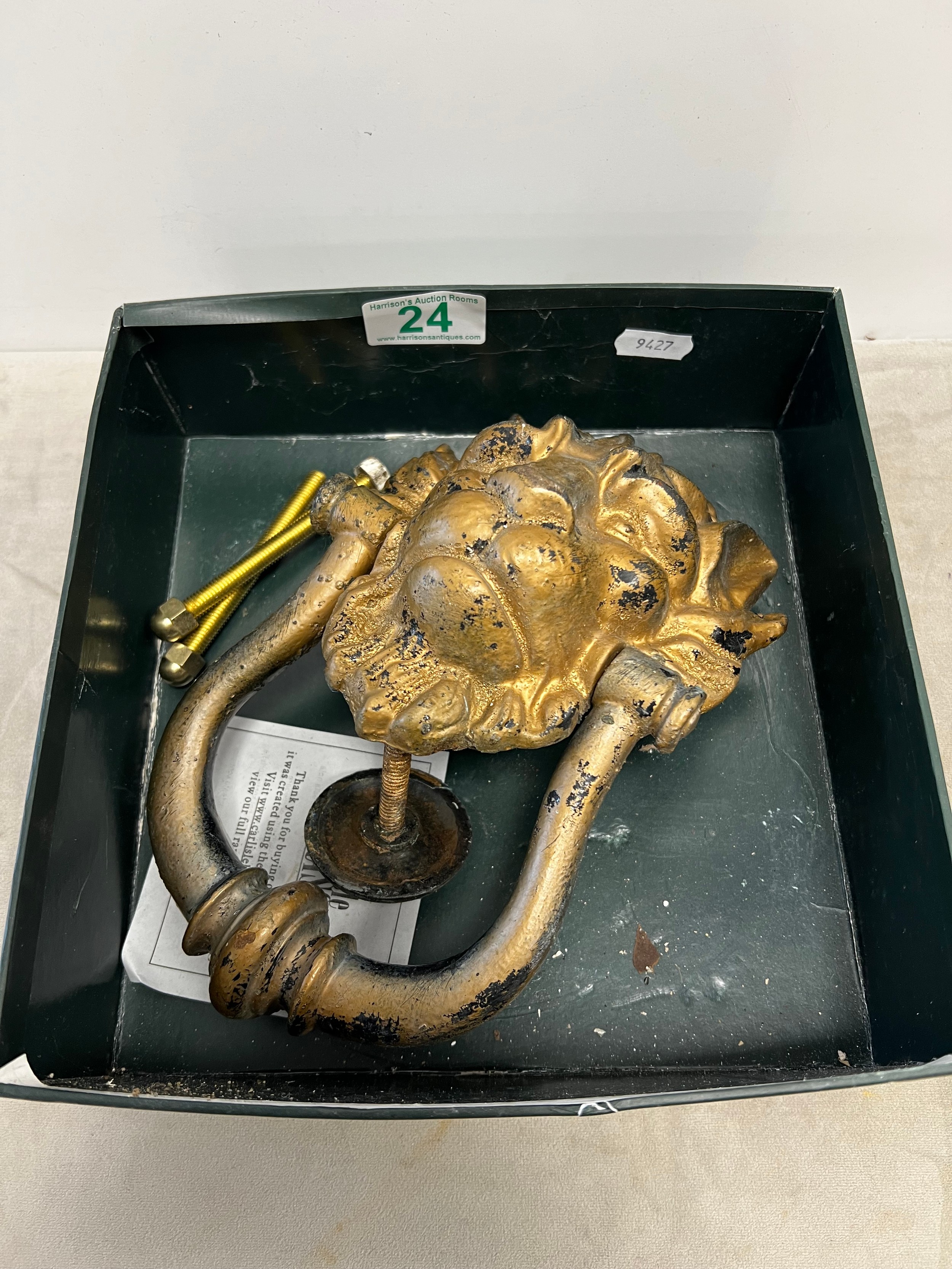 Early cast iron lions head door knocker