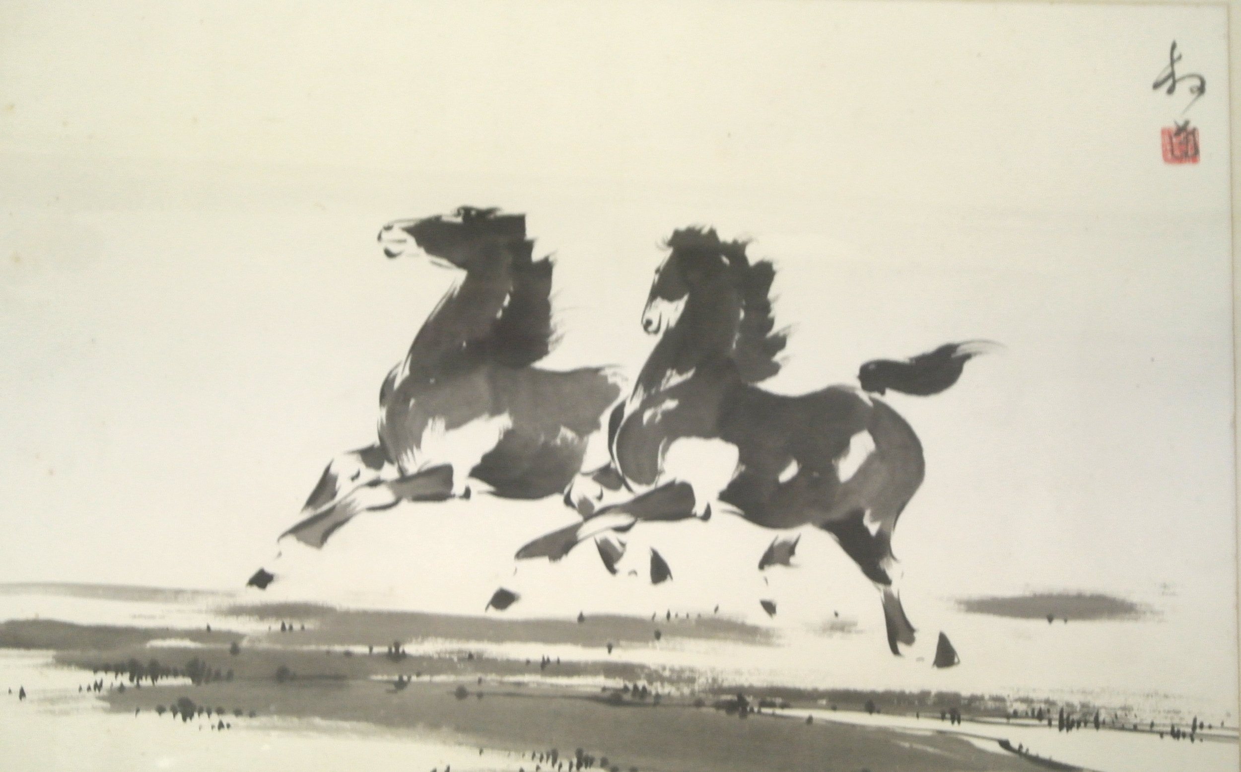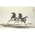 Oriental school 'Horses galloping' watercolour 43 x 66cm signed and stamped