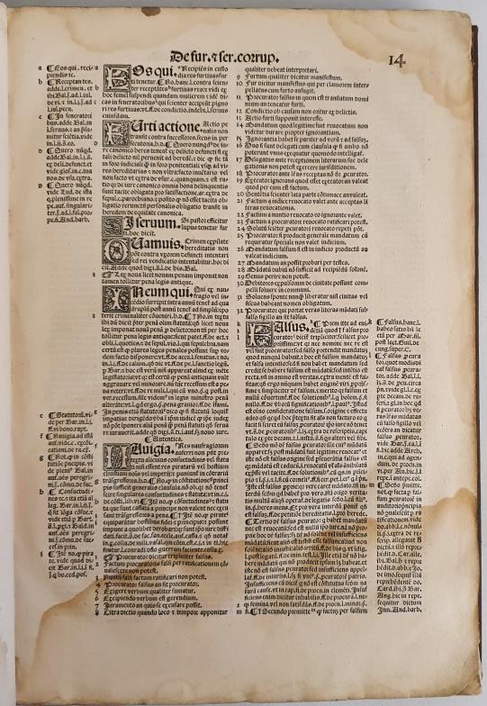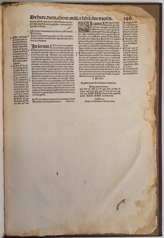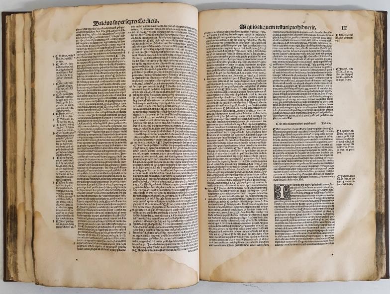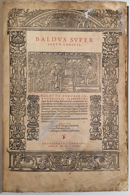 Baldi De Pervsio Ivrisconsvlti Clarrismi, fuper Sexto Codicis iuftiniami libro commentaria lus culentiffima. Commentary on the sixth book of the Justinian Code, a collection of Roman Laws. Lyon 1532. 196pp. Quarter calf, contemporary binding. Folio