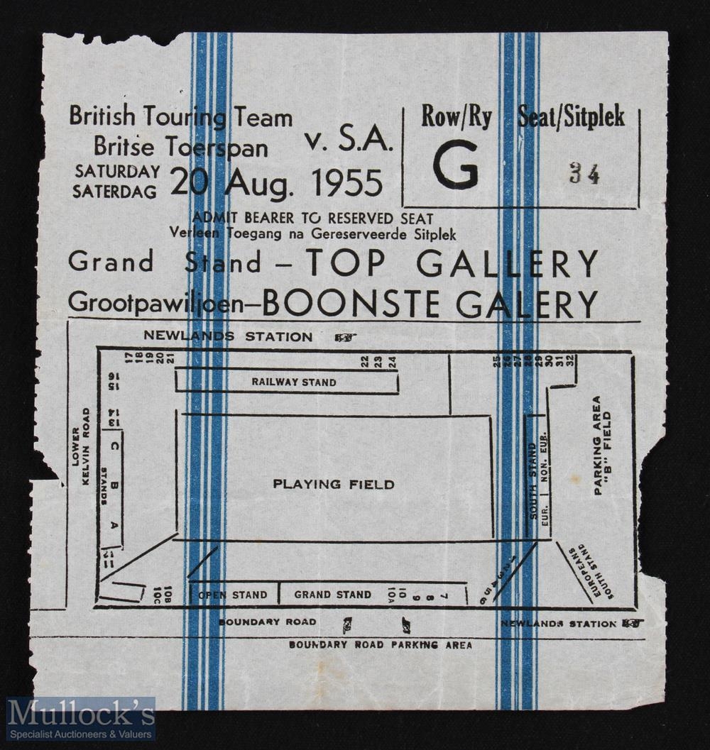 1955 S Africa v British & I Lions Test Ticket: Newlands issue, Cape Town, from the great series if that year. Large ticket which has been kept in good clean unfolded condition