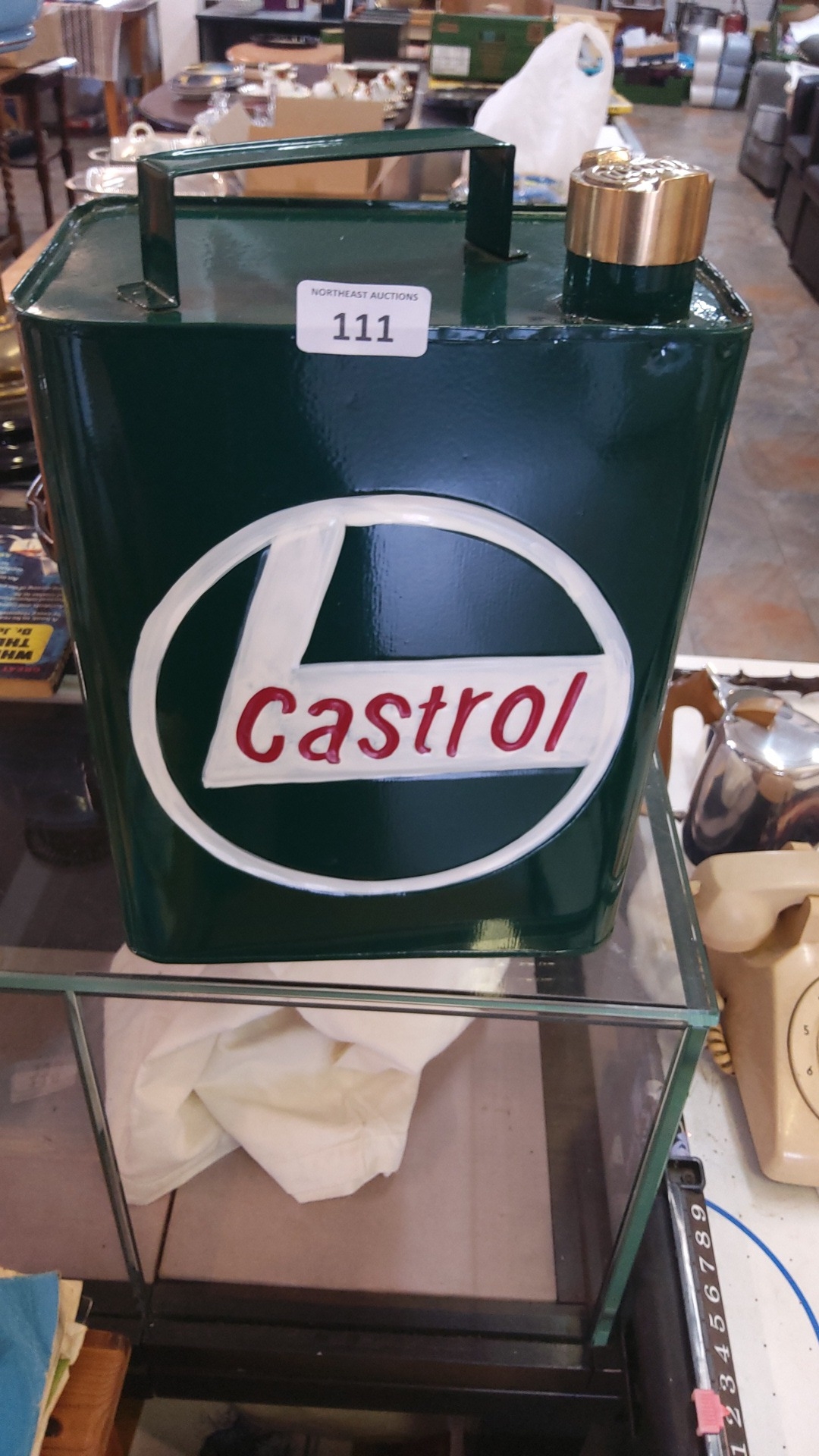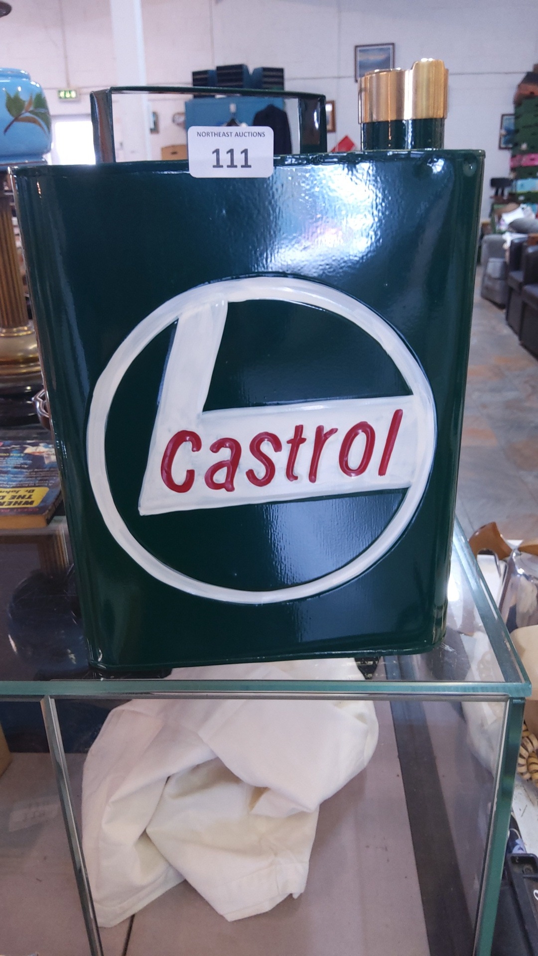 Castrol advertising oil can in green painted metal, rectangu...
