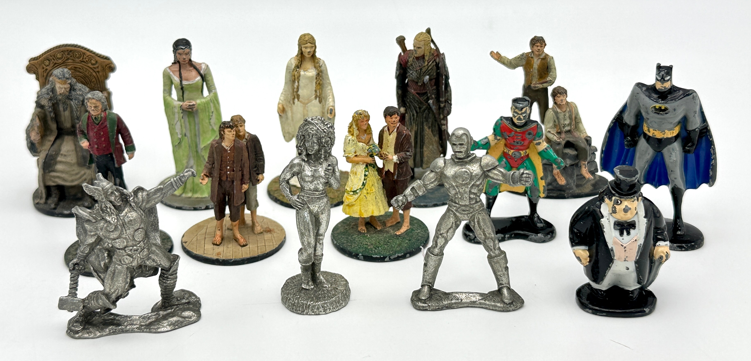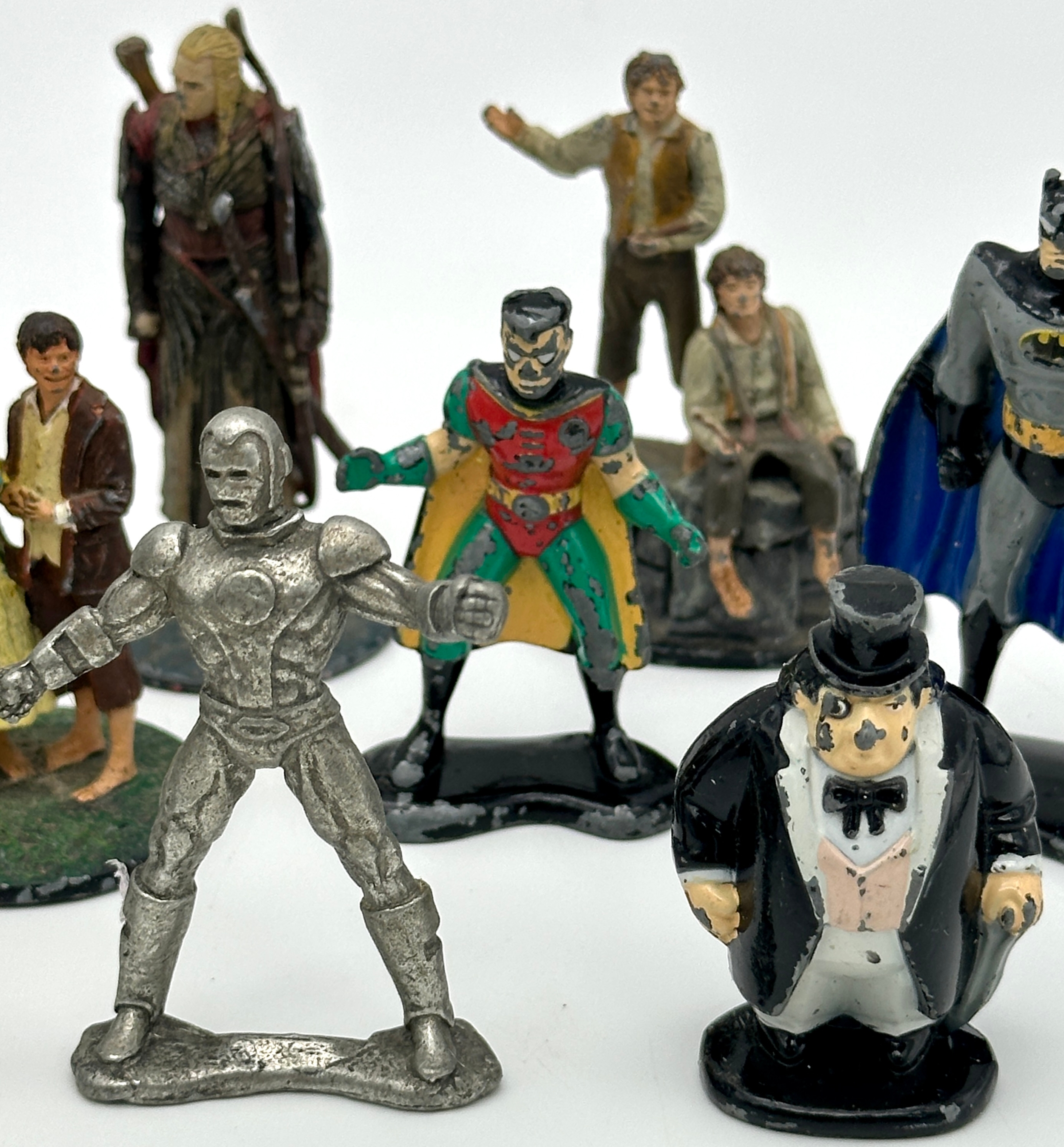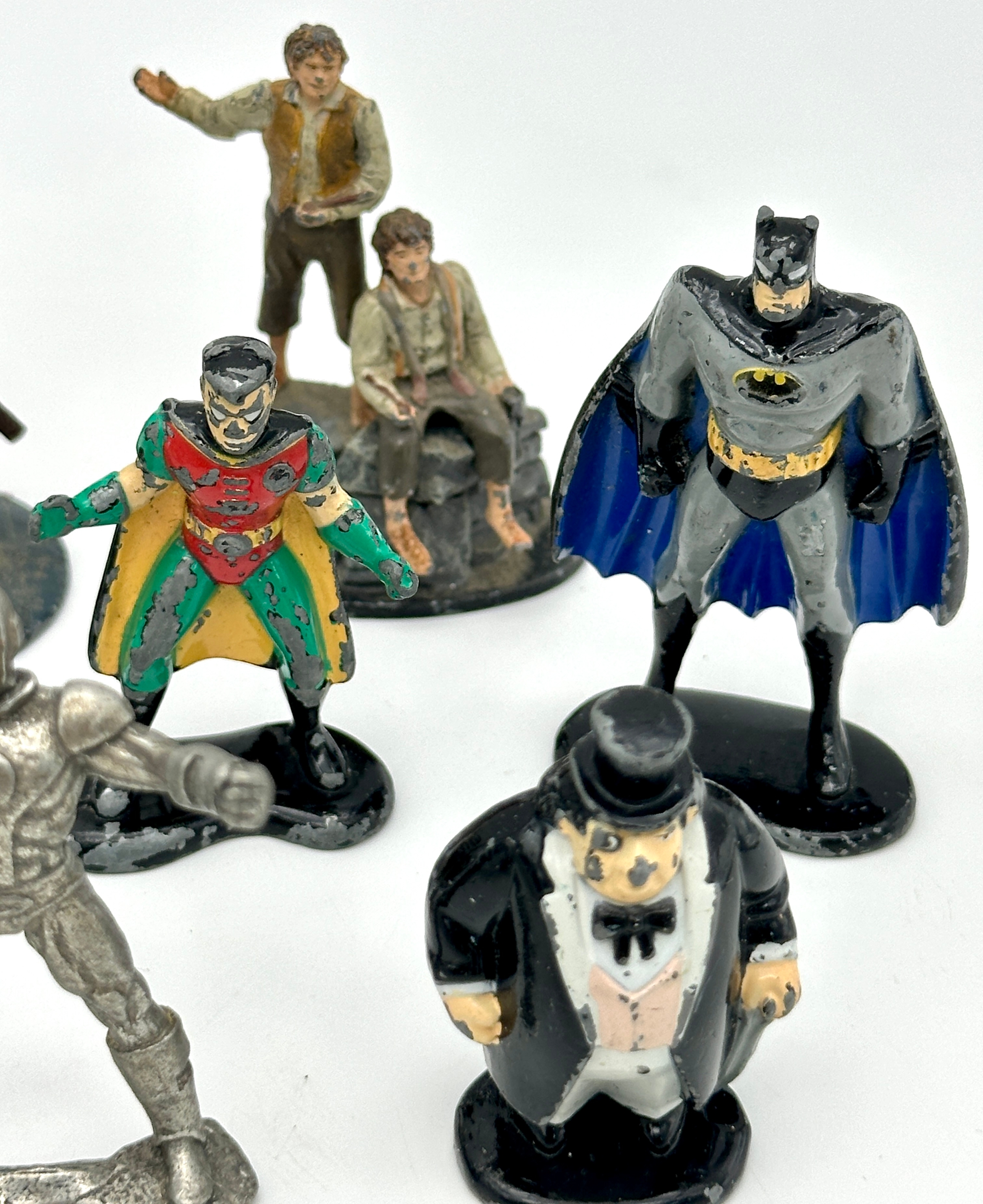 A bag of metal figures. Including Batman, Marvel and Lord of the Rings.
