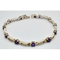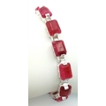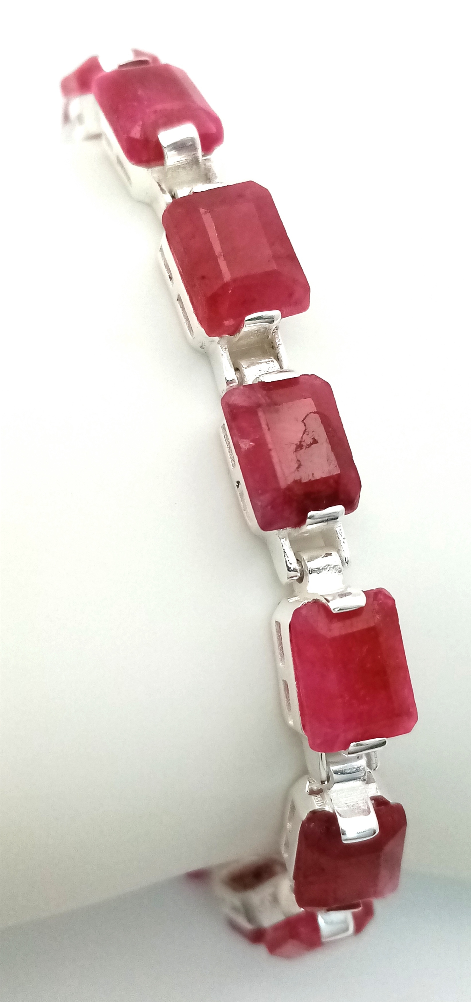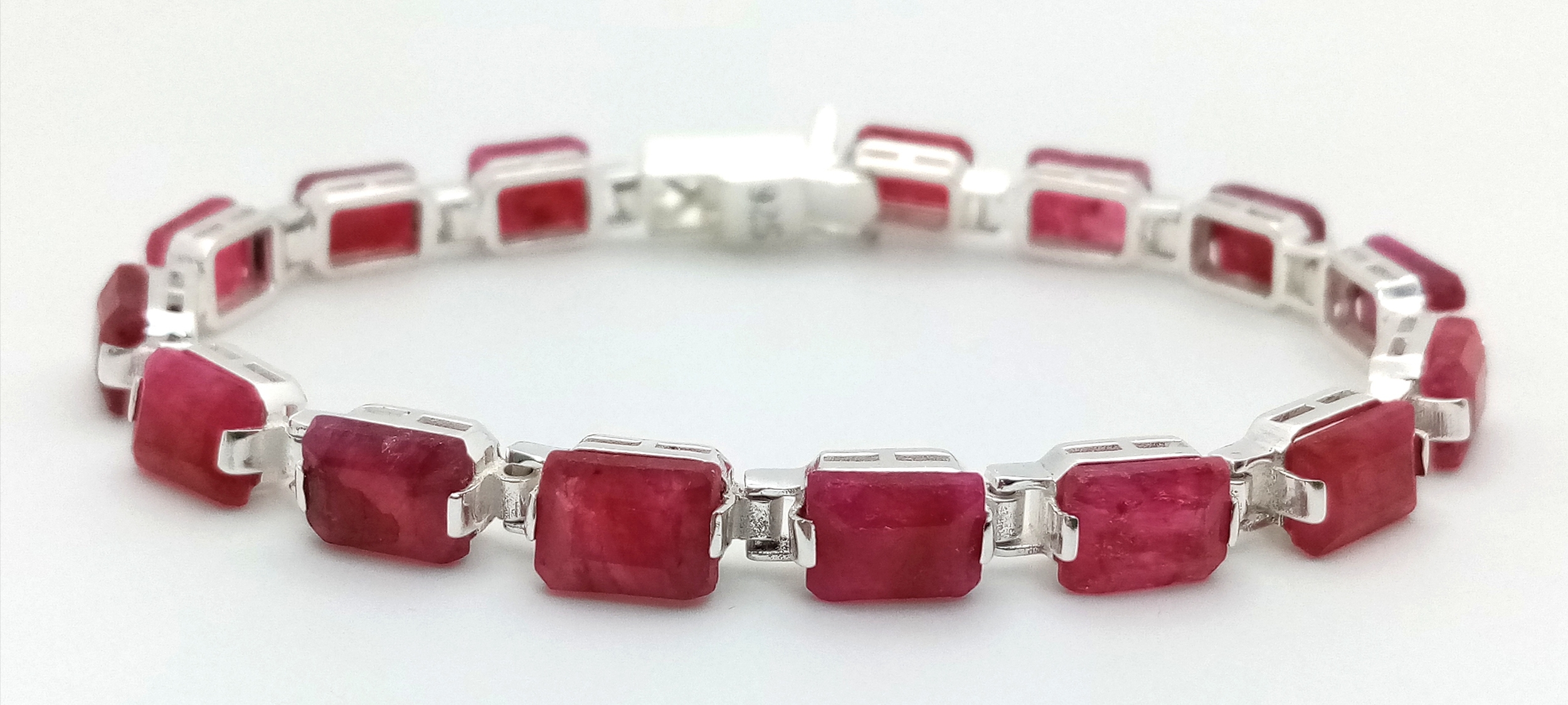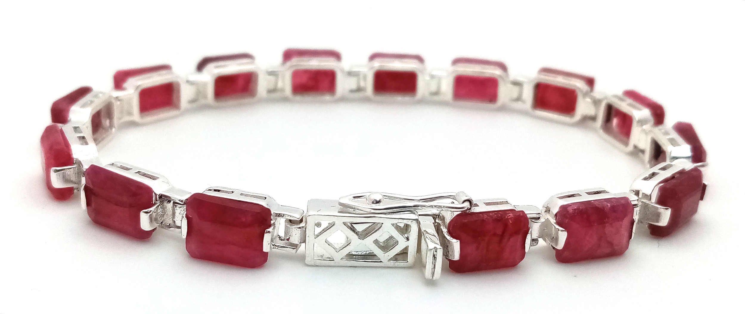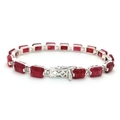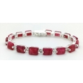 An Emerald Cut Ruby Gemstone Tennis Bracelet. Set in 925 Silver. 17cm. CD-1937