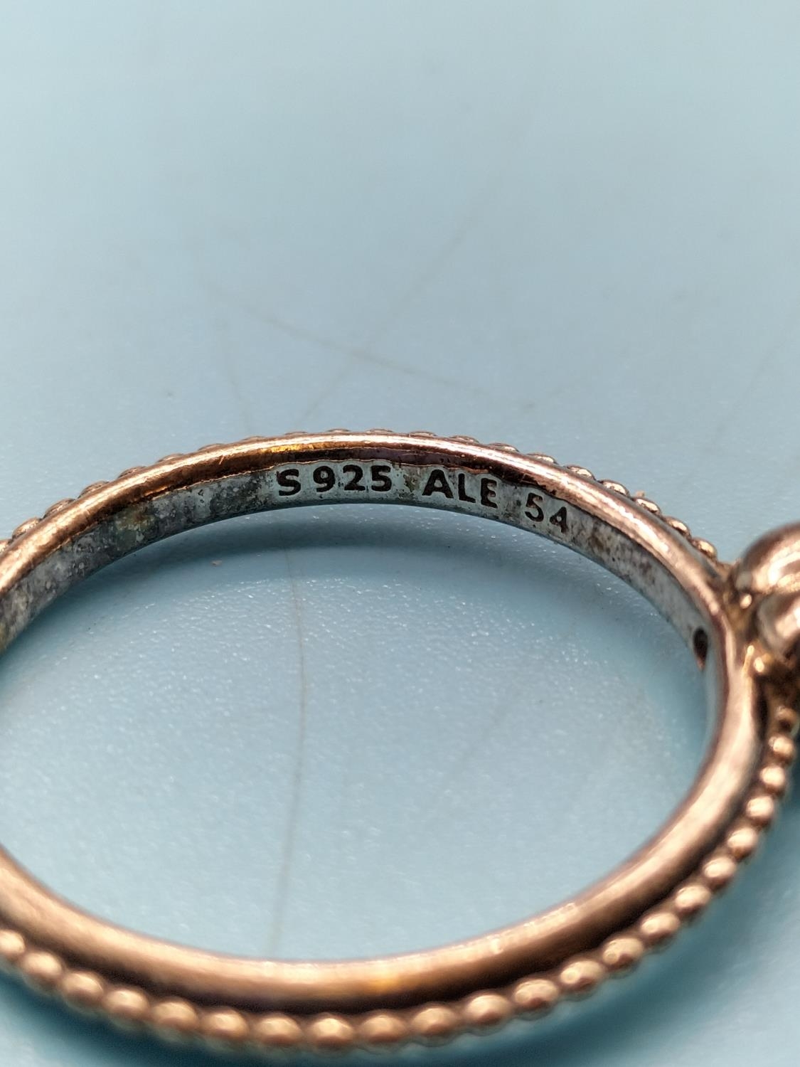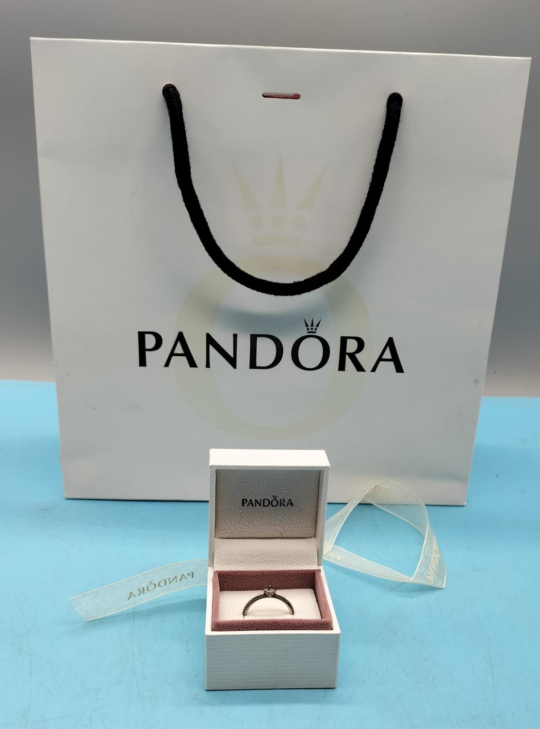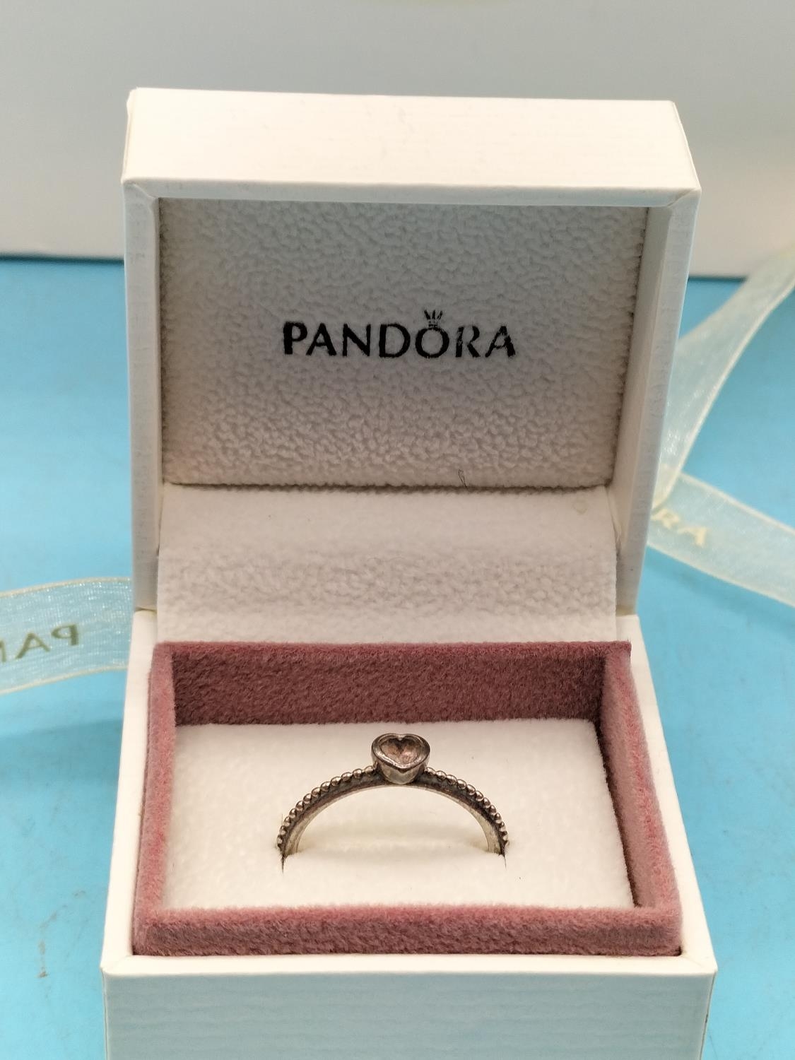 Pandora Amethyst Set Love Heart Ring with Box and Bag. Stamped S925 ALE. Size 54.
