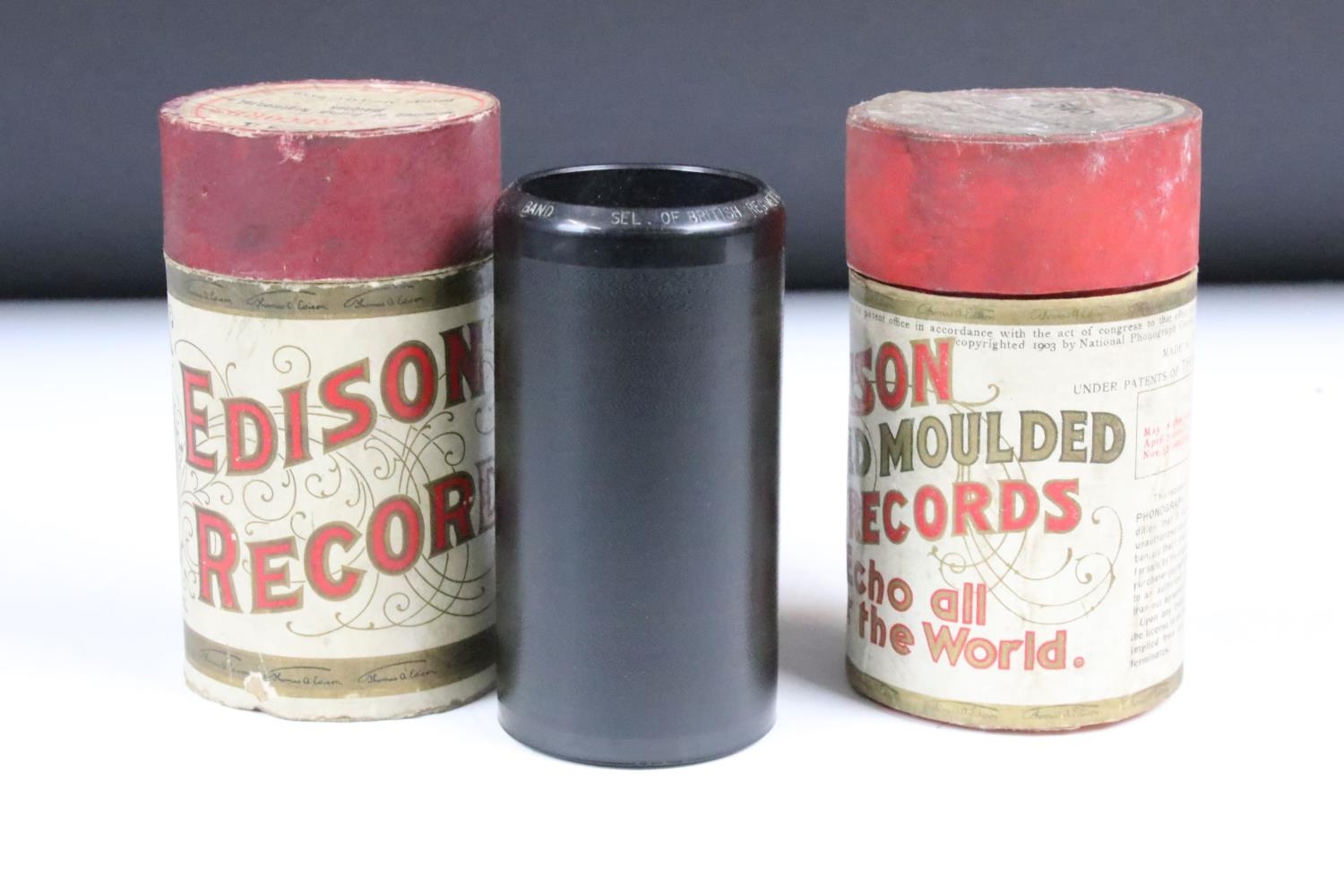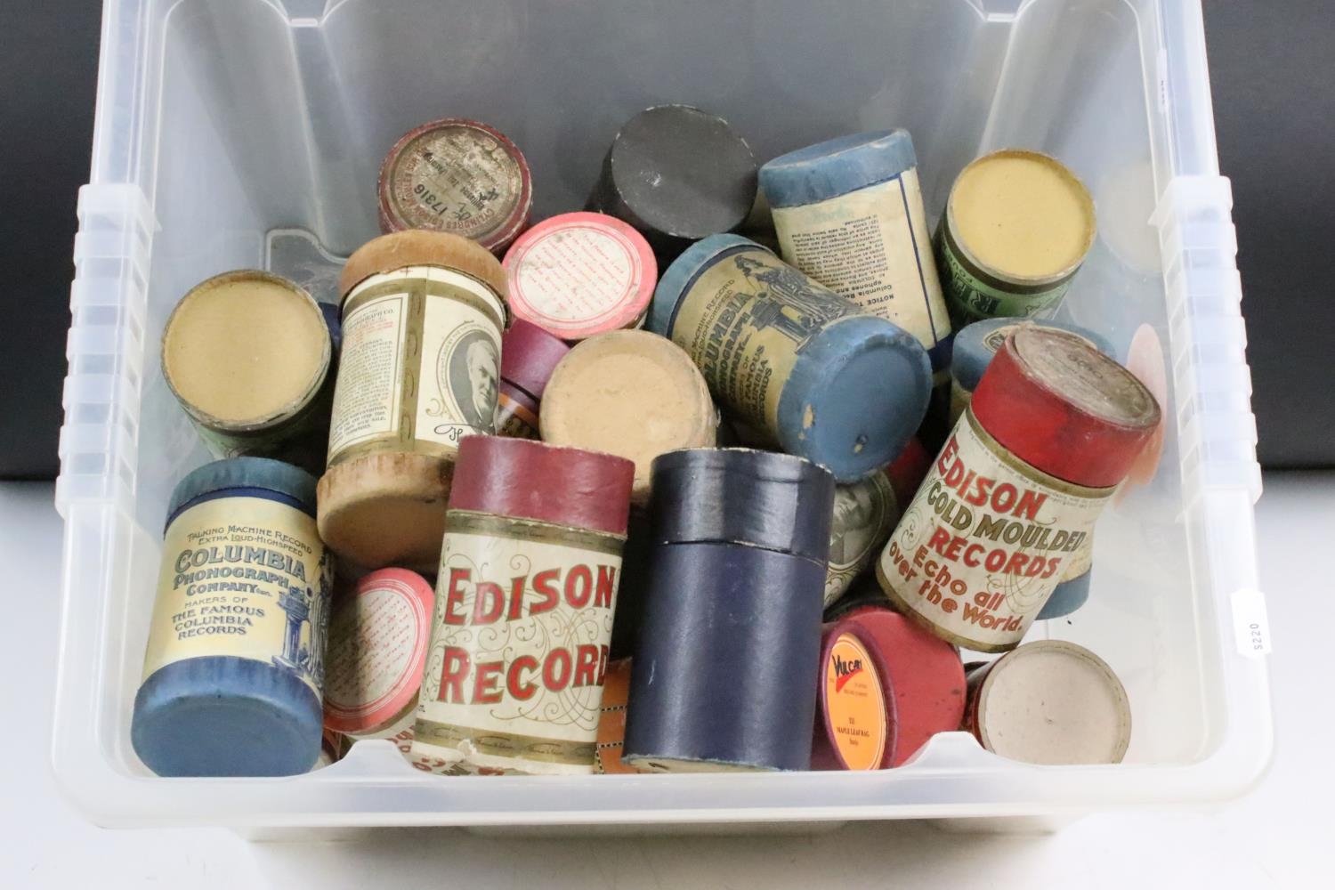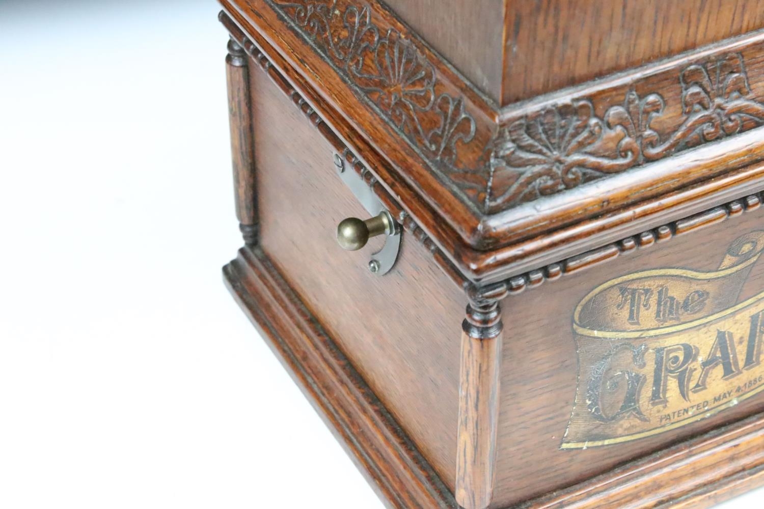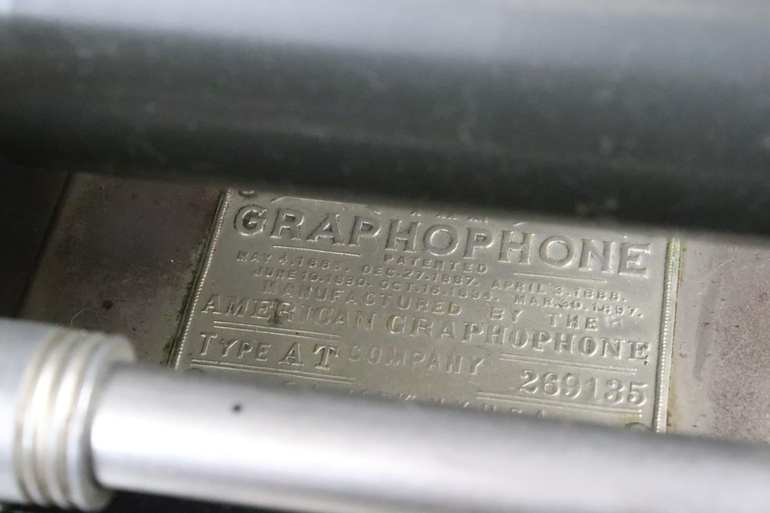 'The Graphophone' early 20th century Columbia Phonograph, Type AT, no. 269135, oak cased, with lid, metal horn, and a quantity of boxed wax cylinders (missing reproducer) (3)