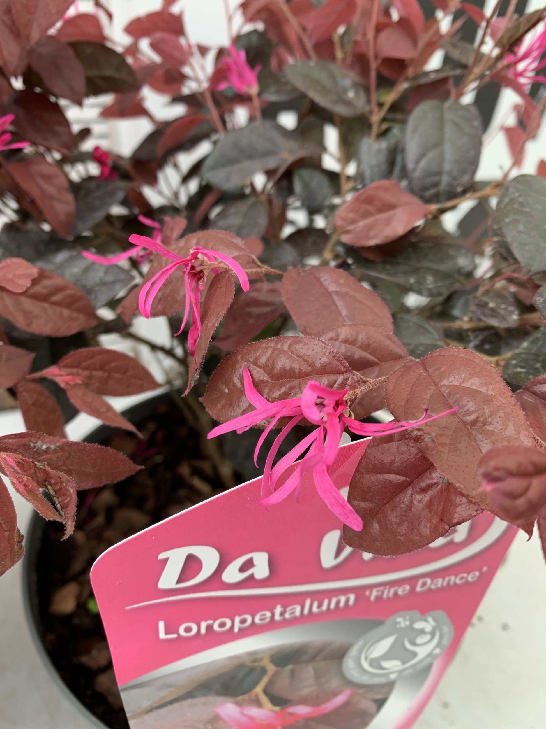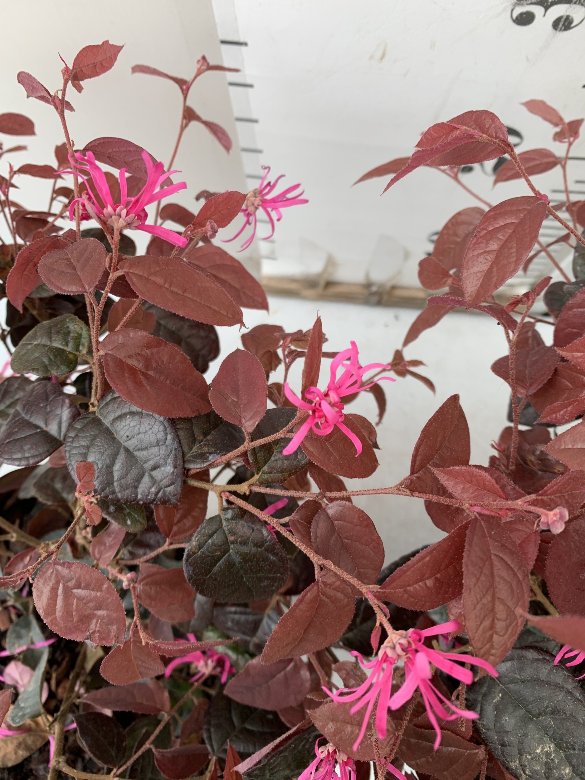 TWO LOROPETALUM CHINENSE 'FIRE DANCE' IN 3 LTR POTS. APPROX 40CM TALL, TO BE SOLD FOR THE TWO