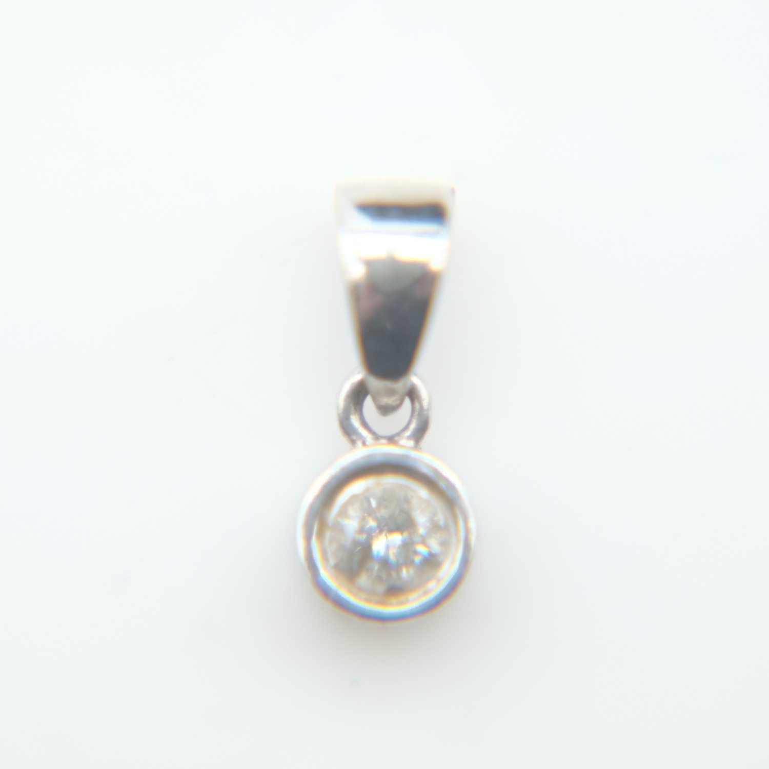 9ct white gold bezel-set diamond solitaire pendant, drop L: 10 mm. UK P&P Group 0 (£7+VAT for the first lot and £1+VAT for subsequent lots)