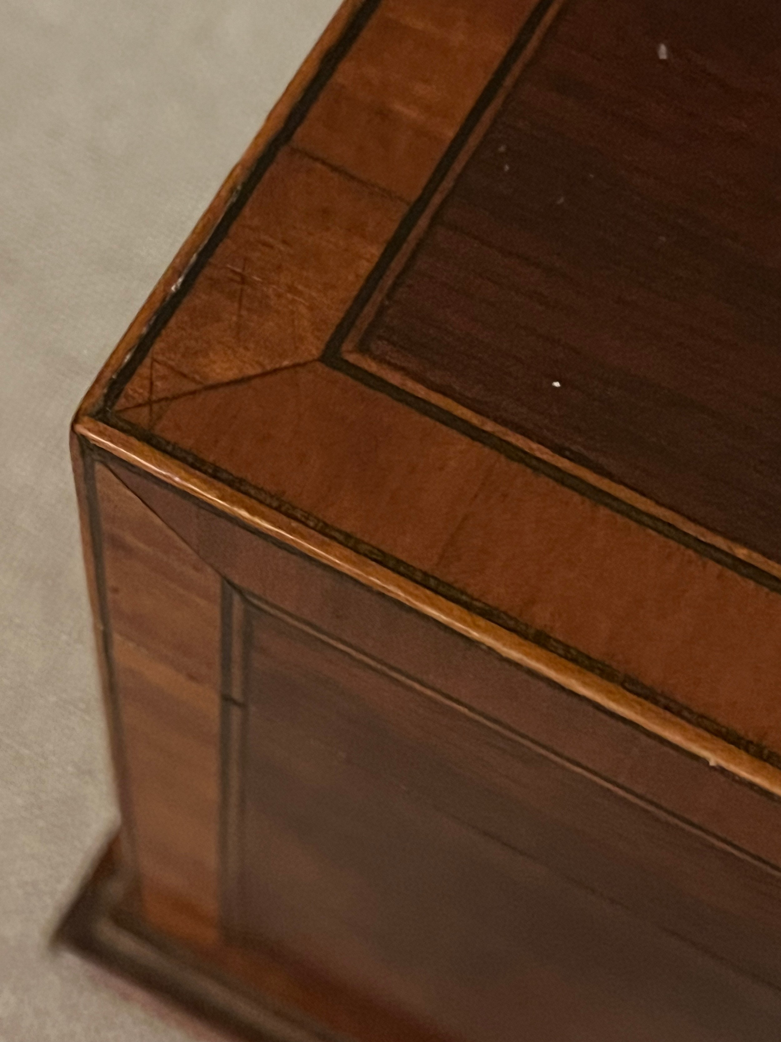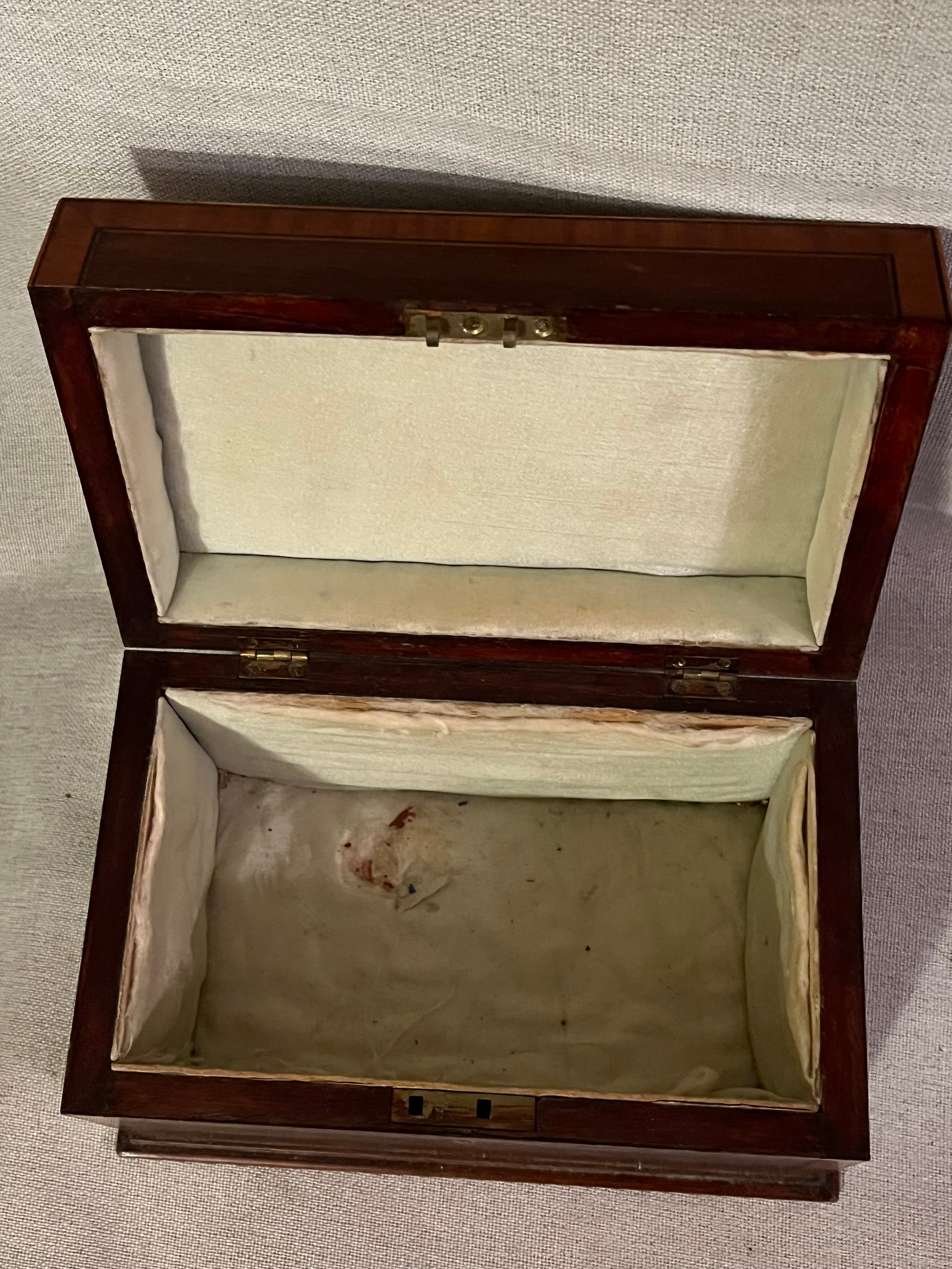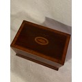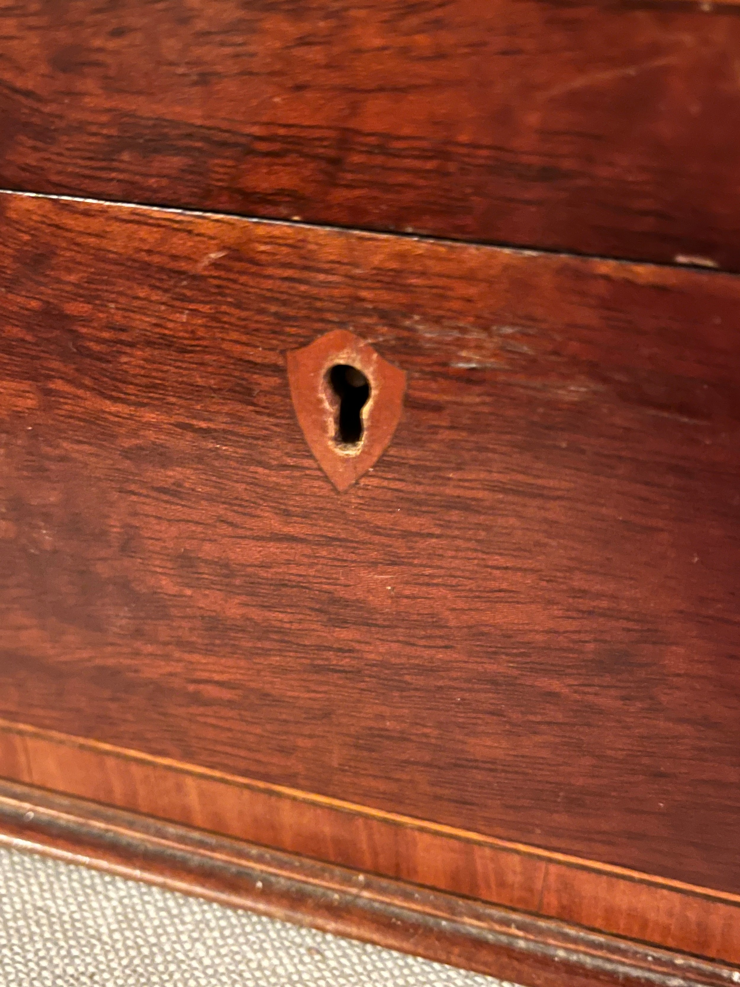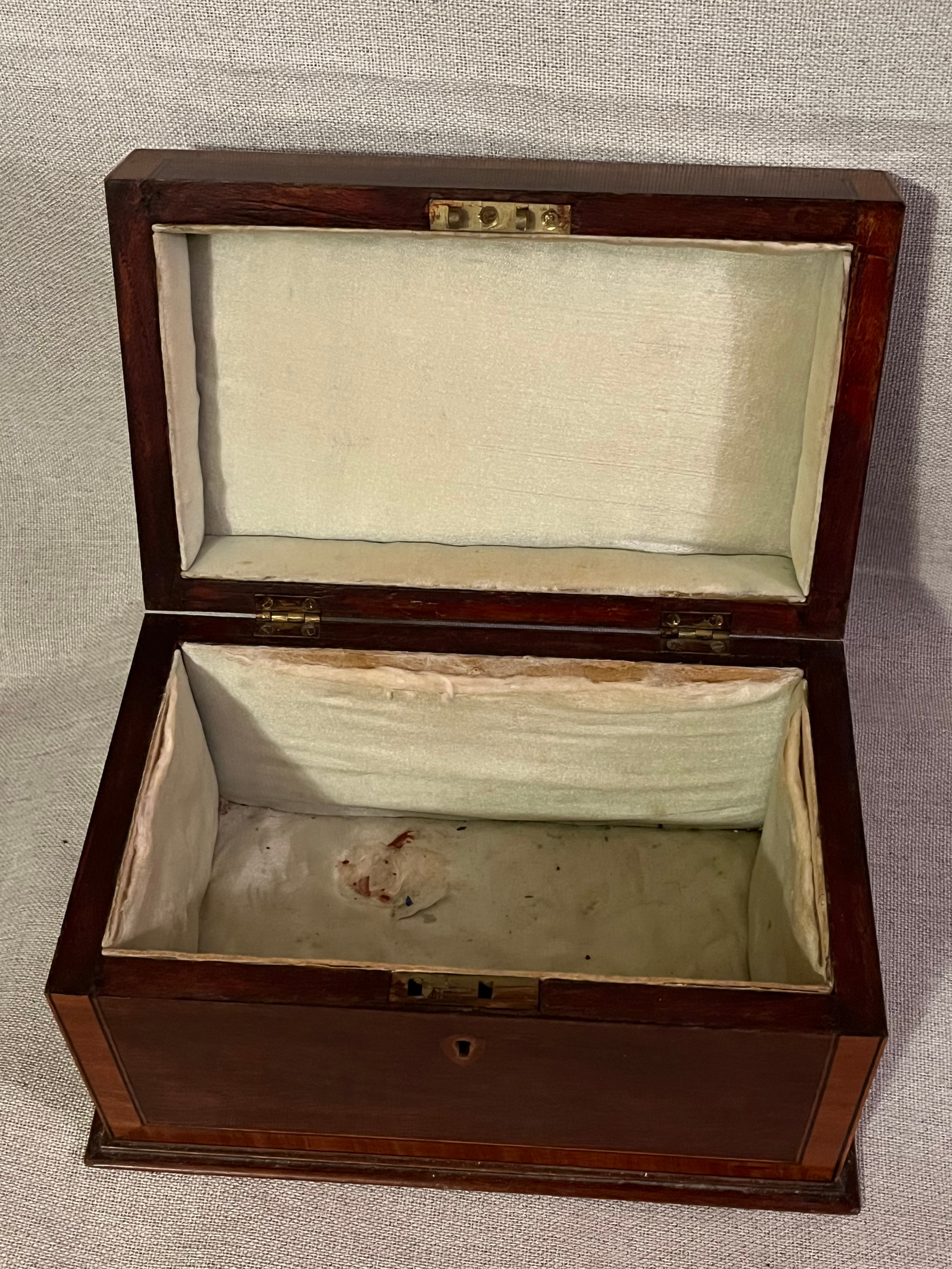 A Sheraton style Mahogany shell motif inlaid George III wooden box. No key