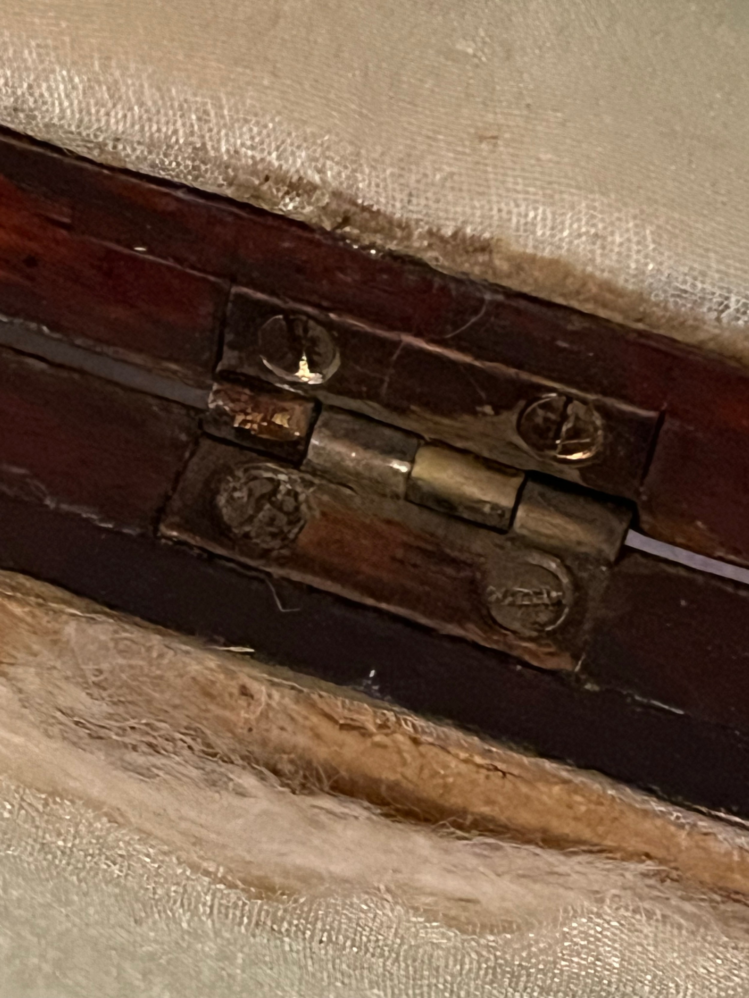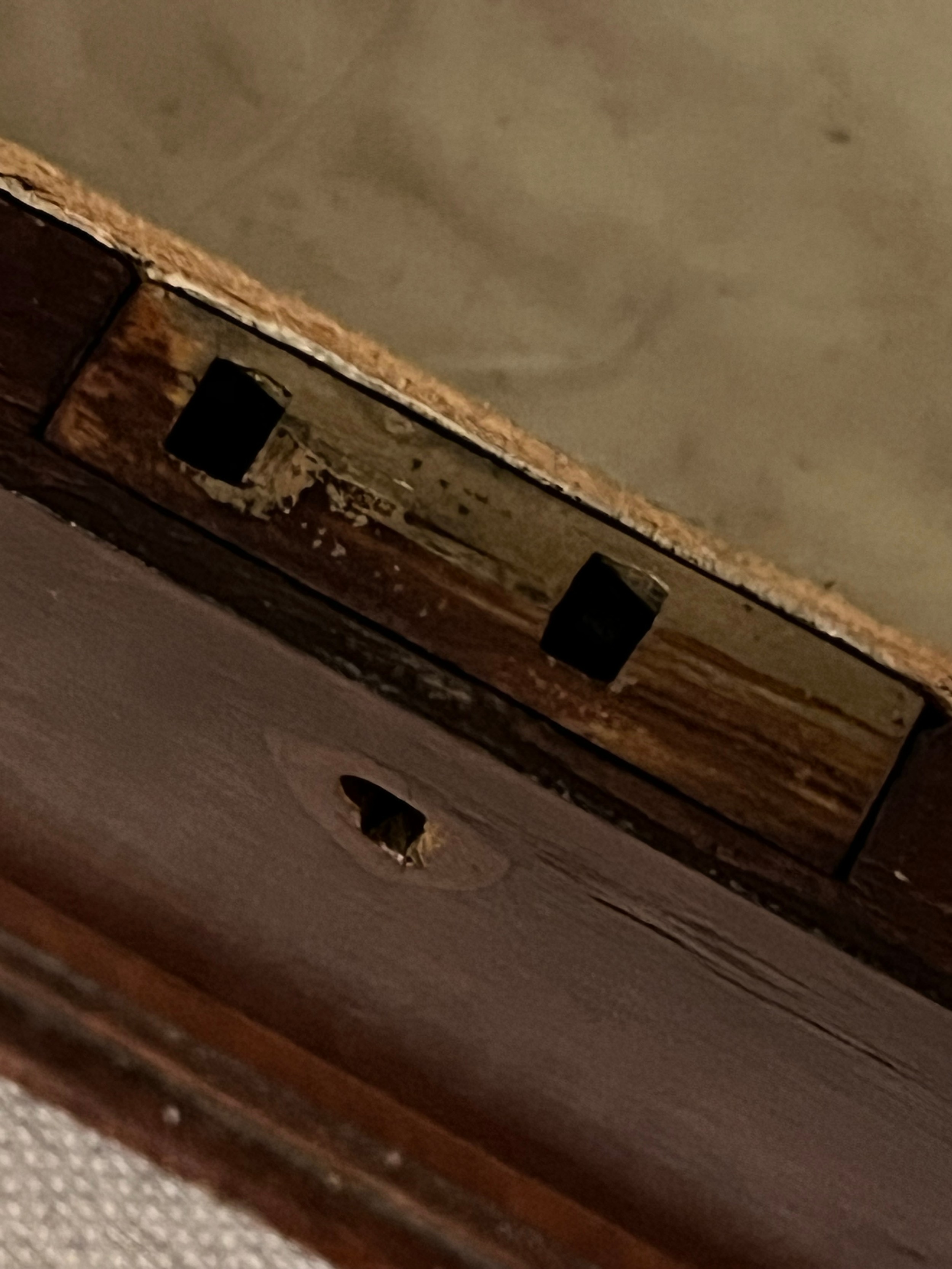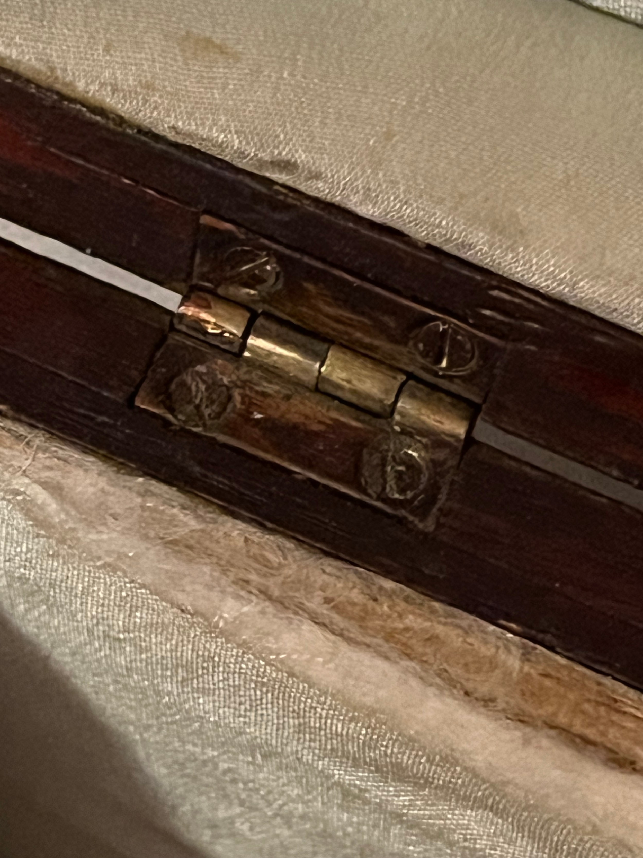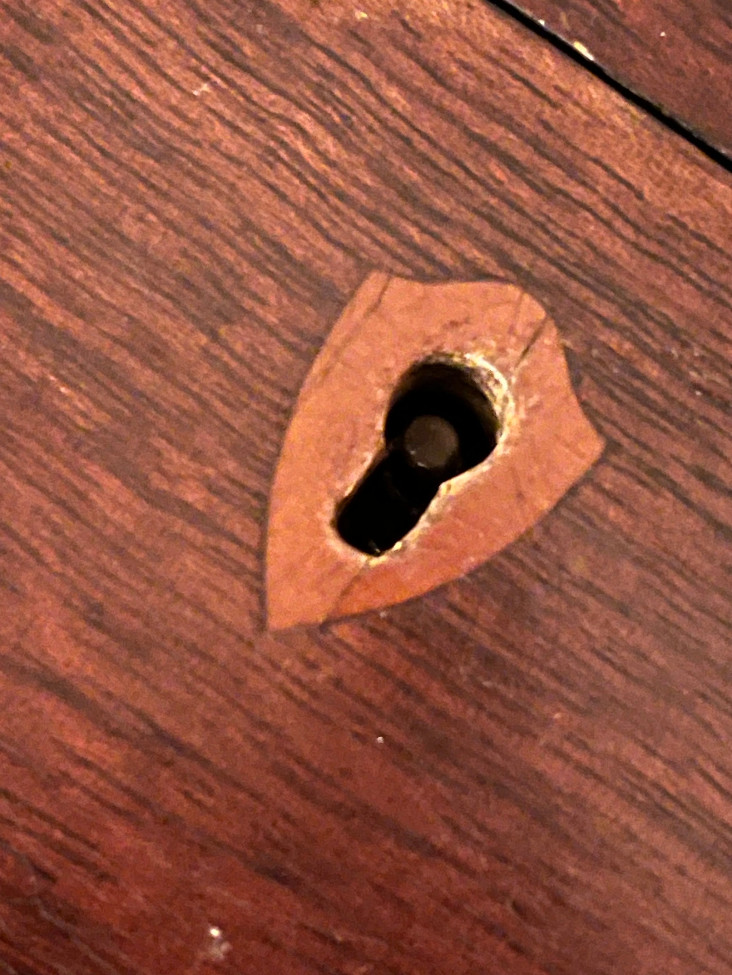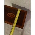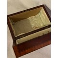 A Sheraton style Mahogany shell motif inlaid George III wooden box. No key