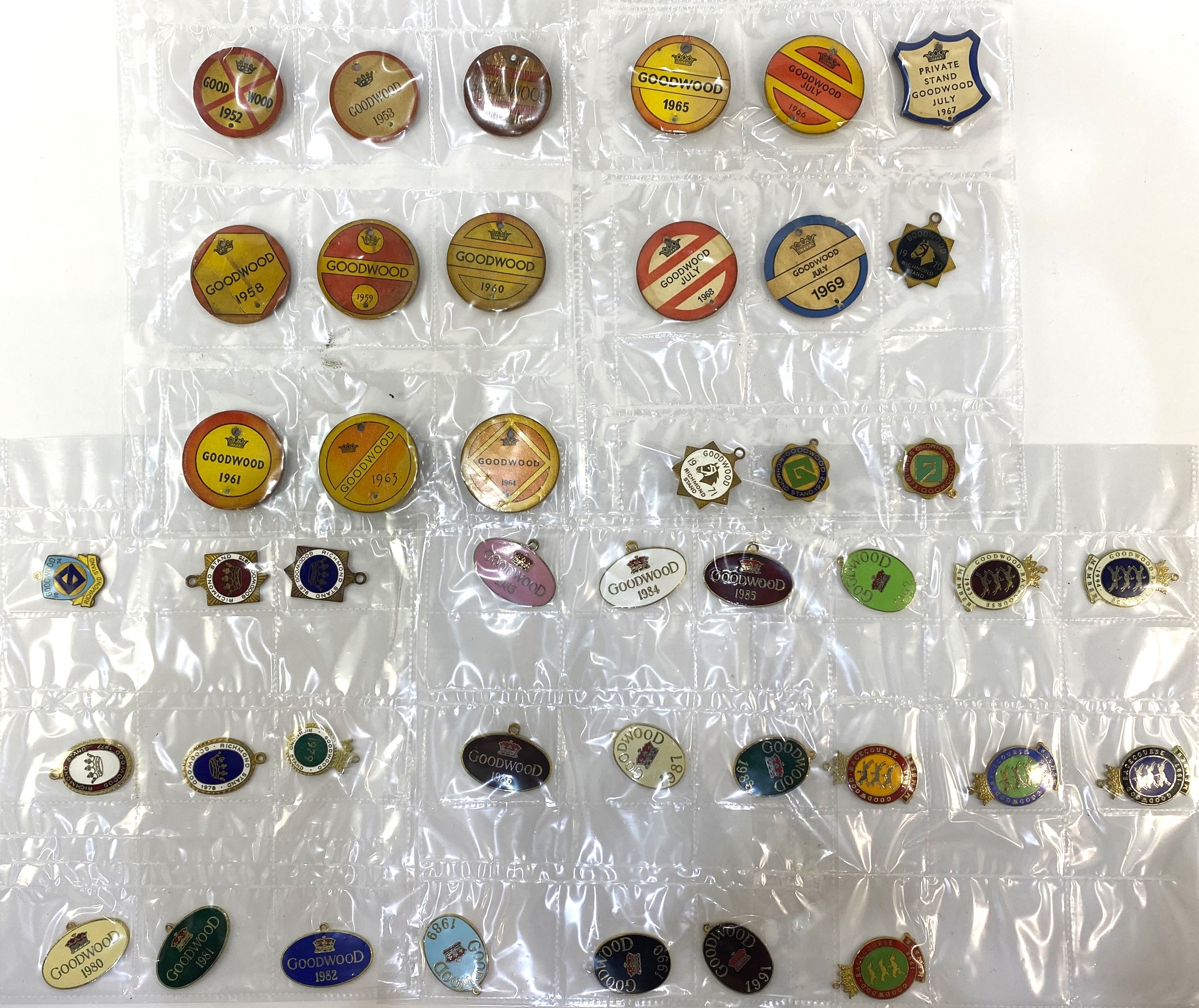 Horseracing interest: a collection of forty-three Goodwood Racecourse card and enamel badges dated 1952-54, 1958-1998