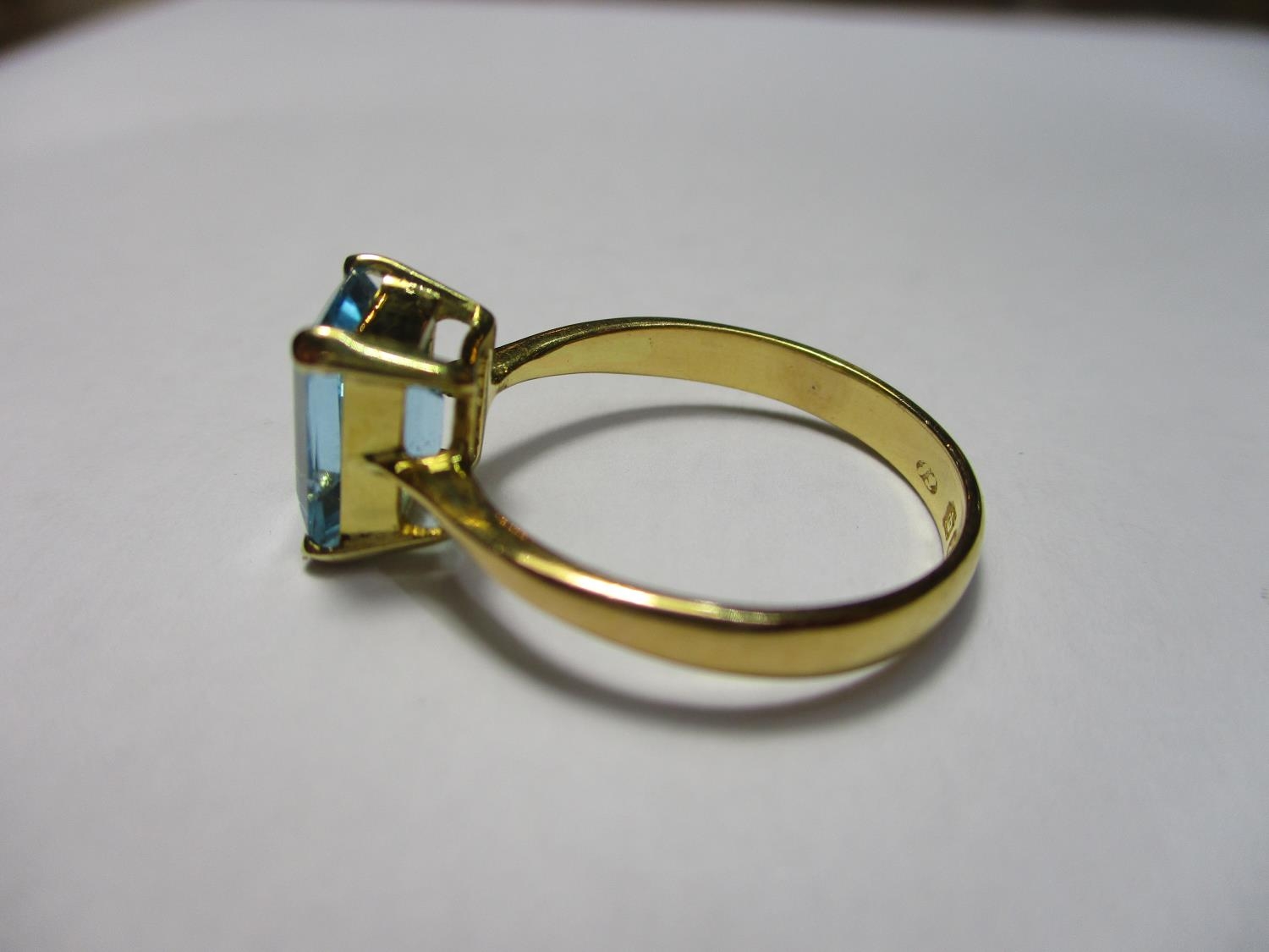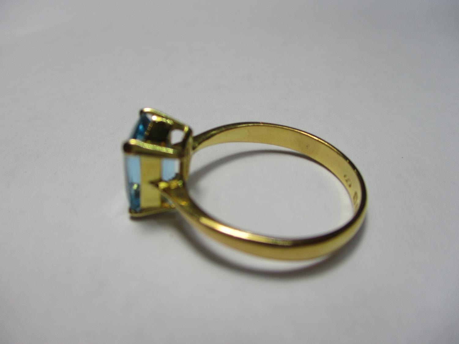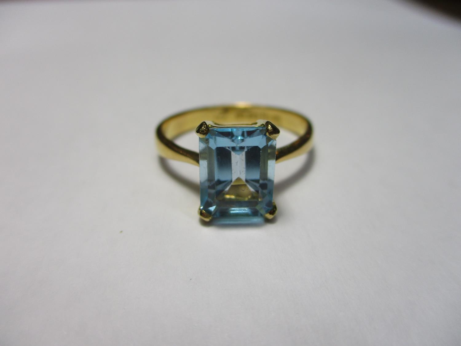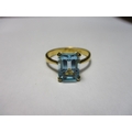 22ct Gold Ring with Emerald Cut Blue Topaz 4.13grms Size Q/R