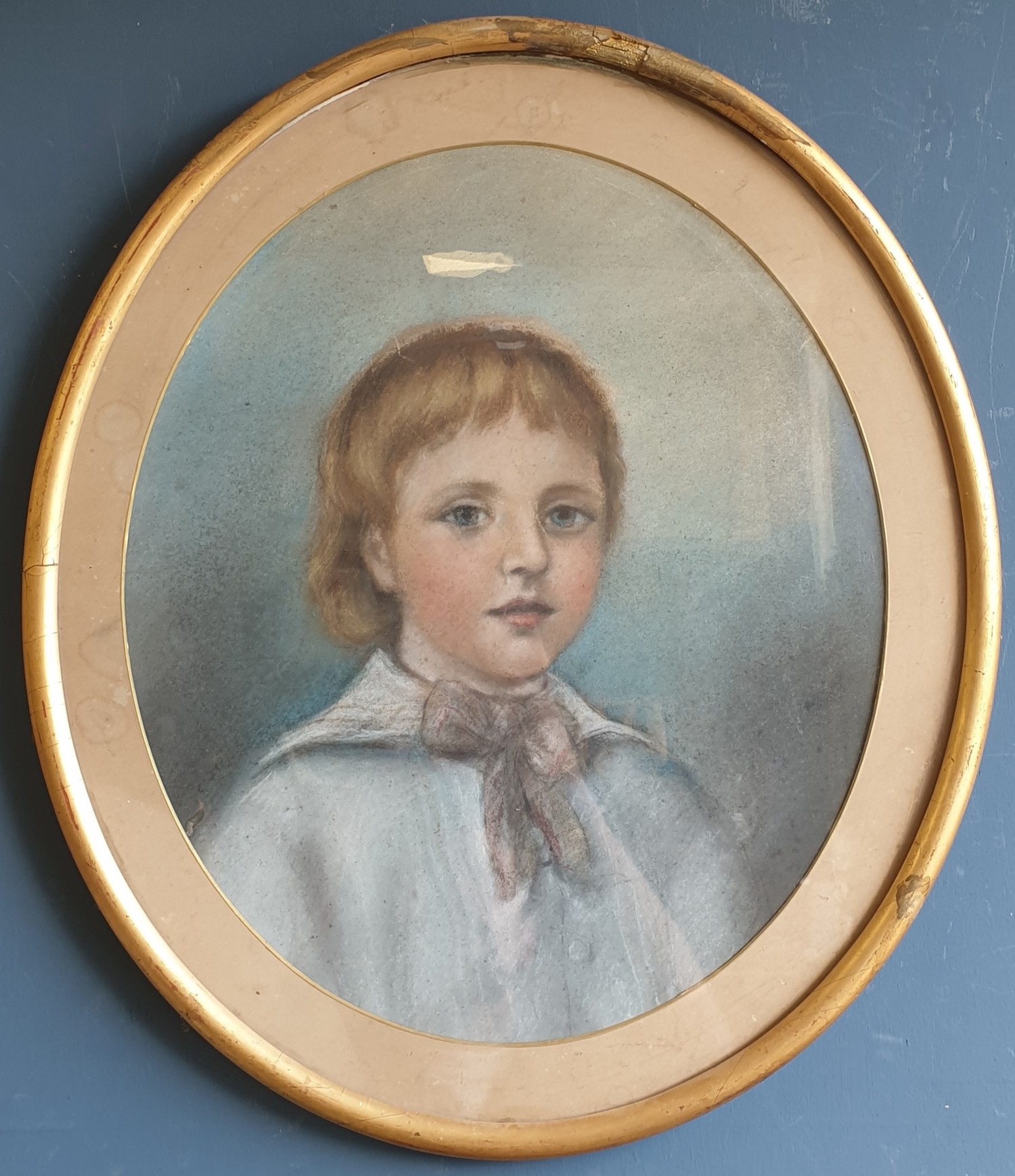 Gilt Framed Oval Pastel Portrait, H:58 x W:50cm