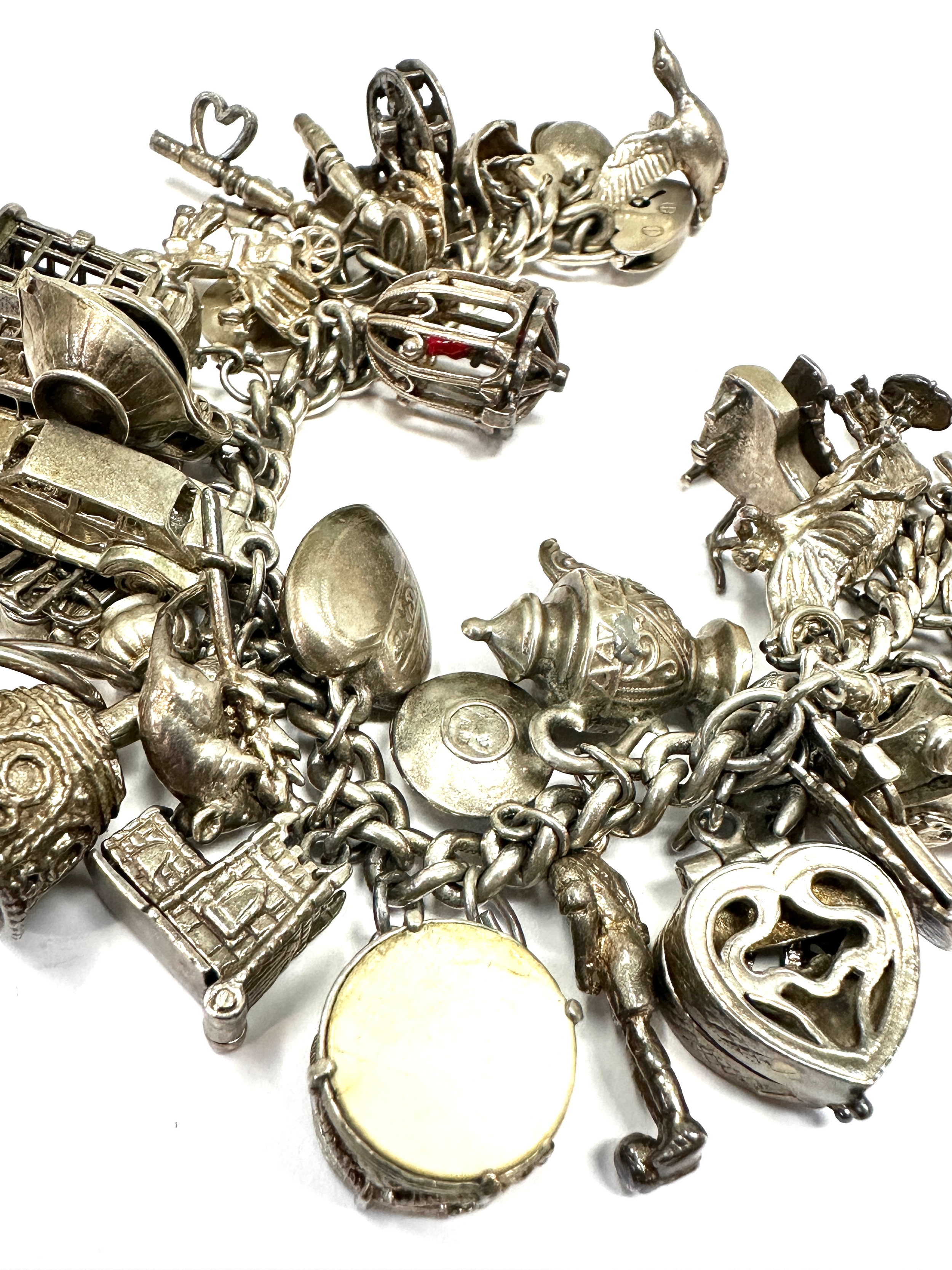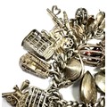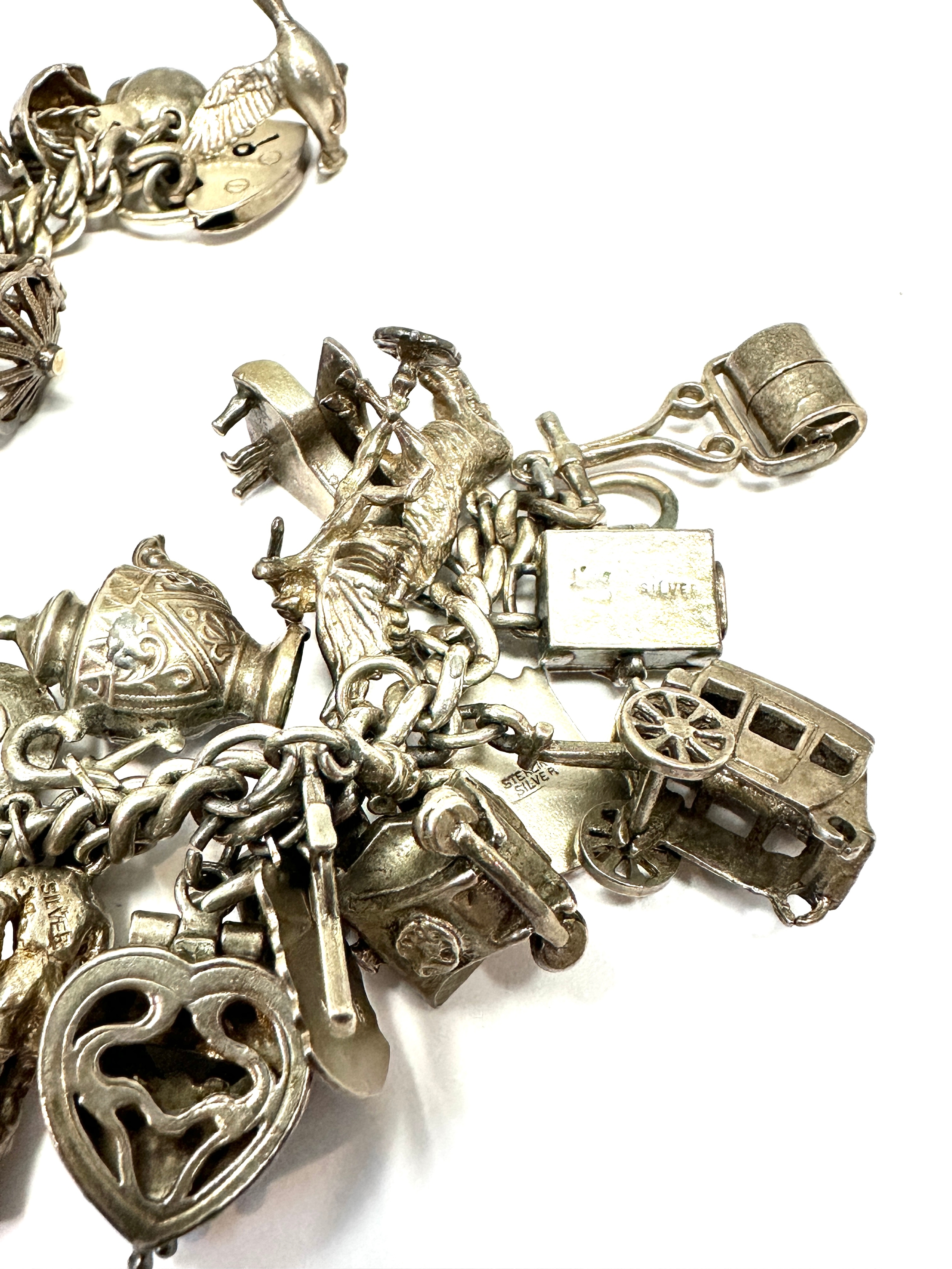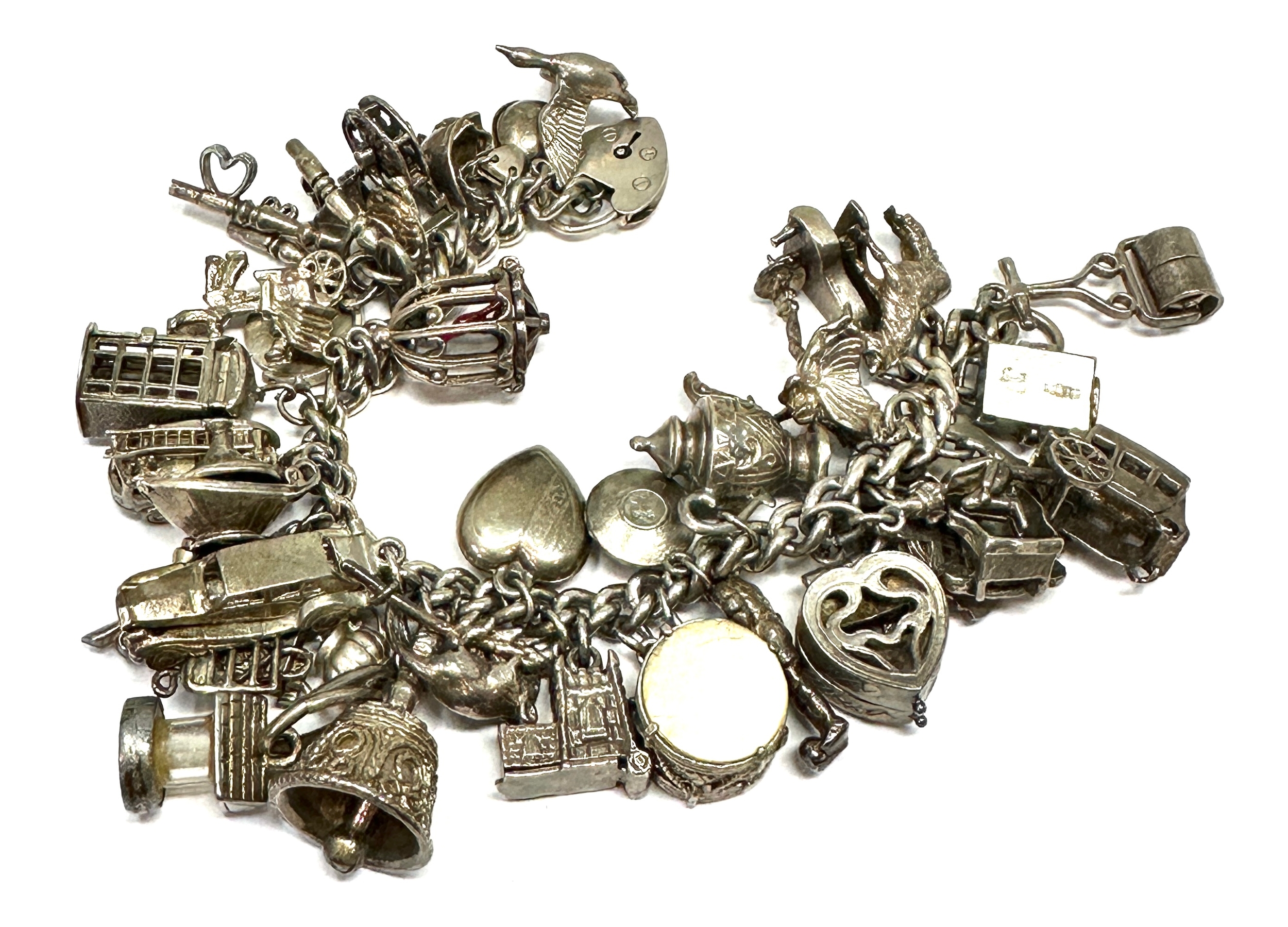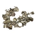 Large heavy silver charm bracelet & charms weight 138g