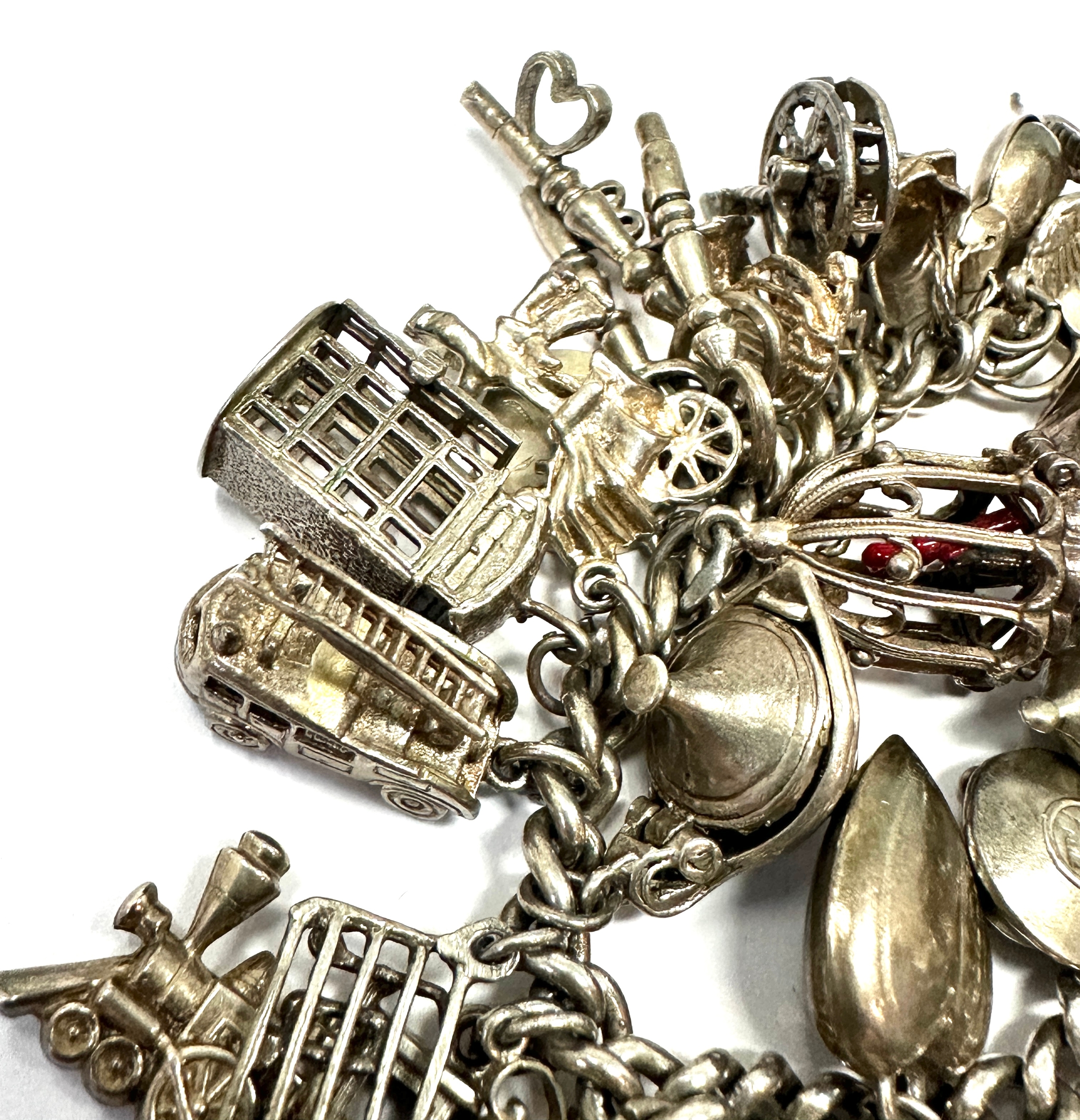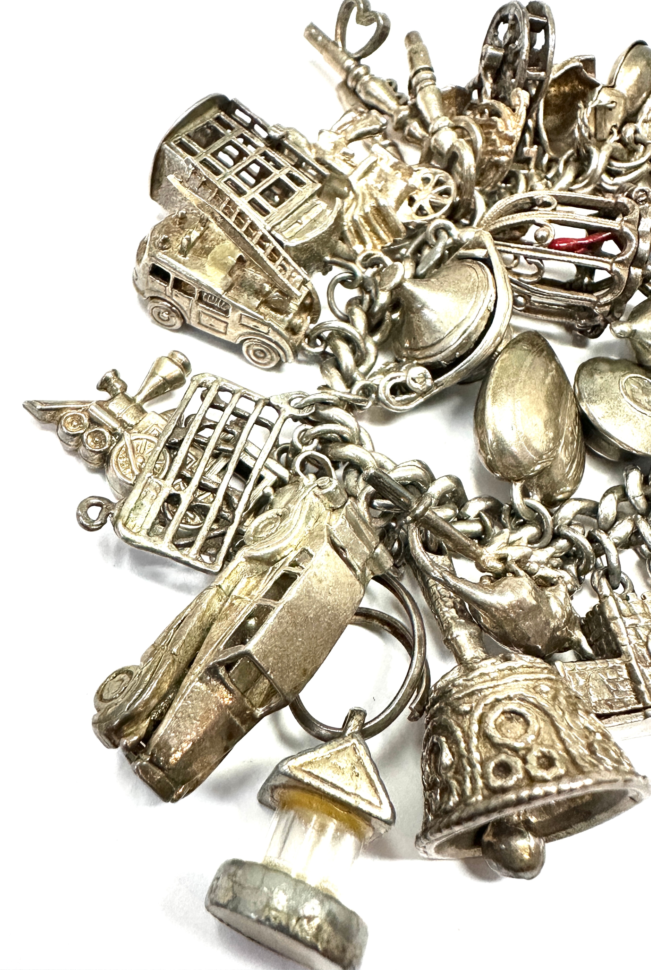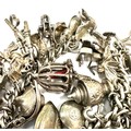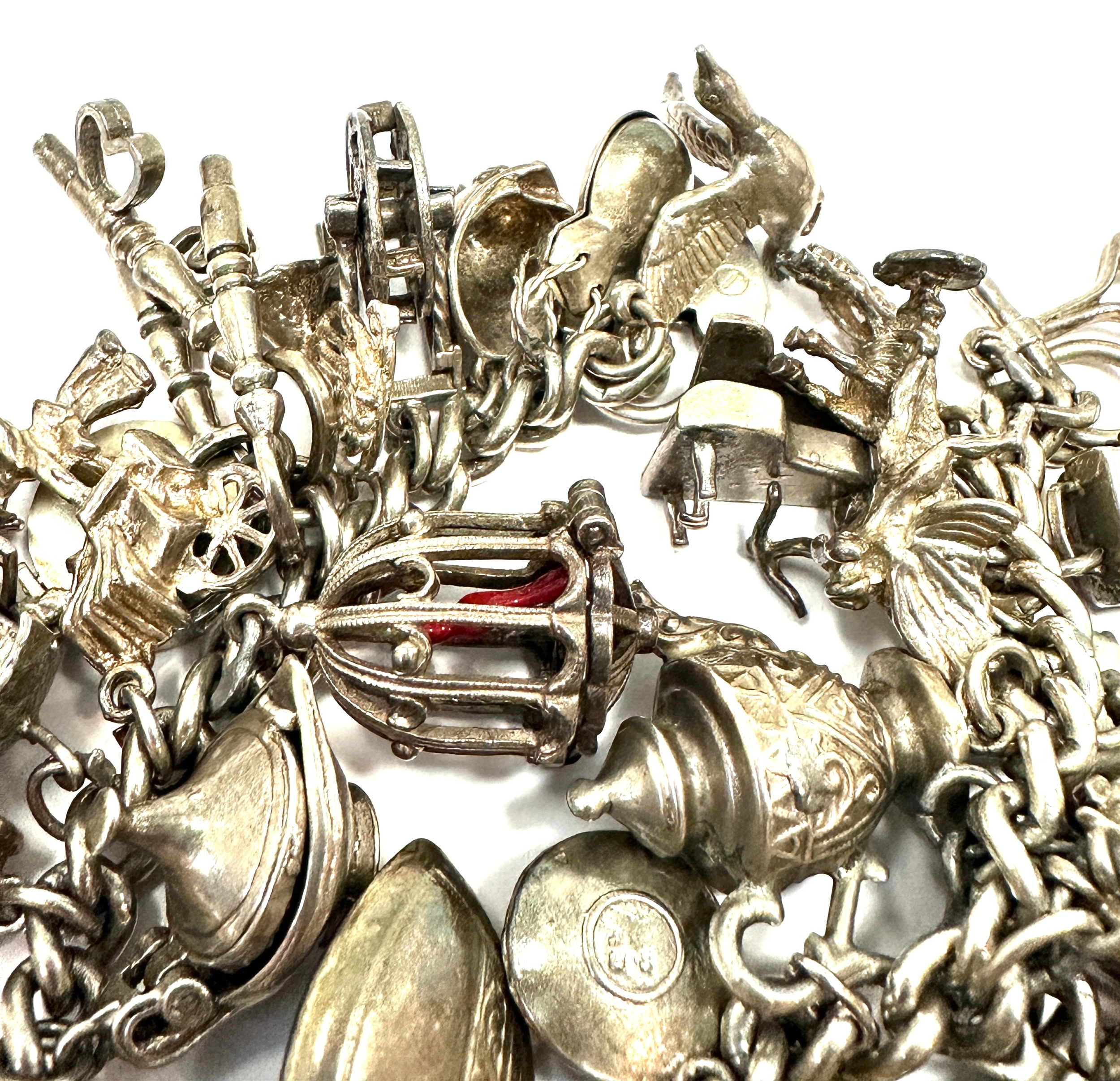 Large heavy silver charm bracelet & charms weight 138g