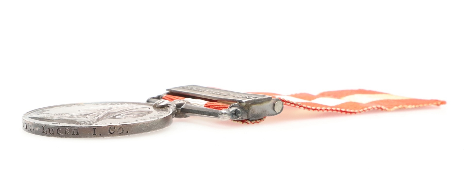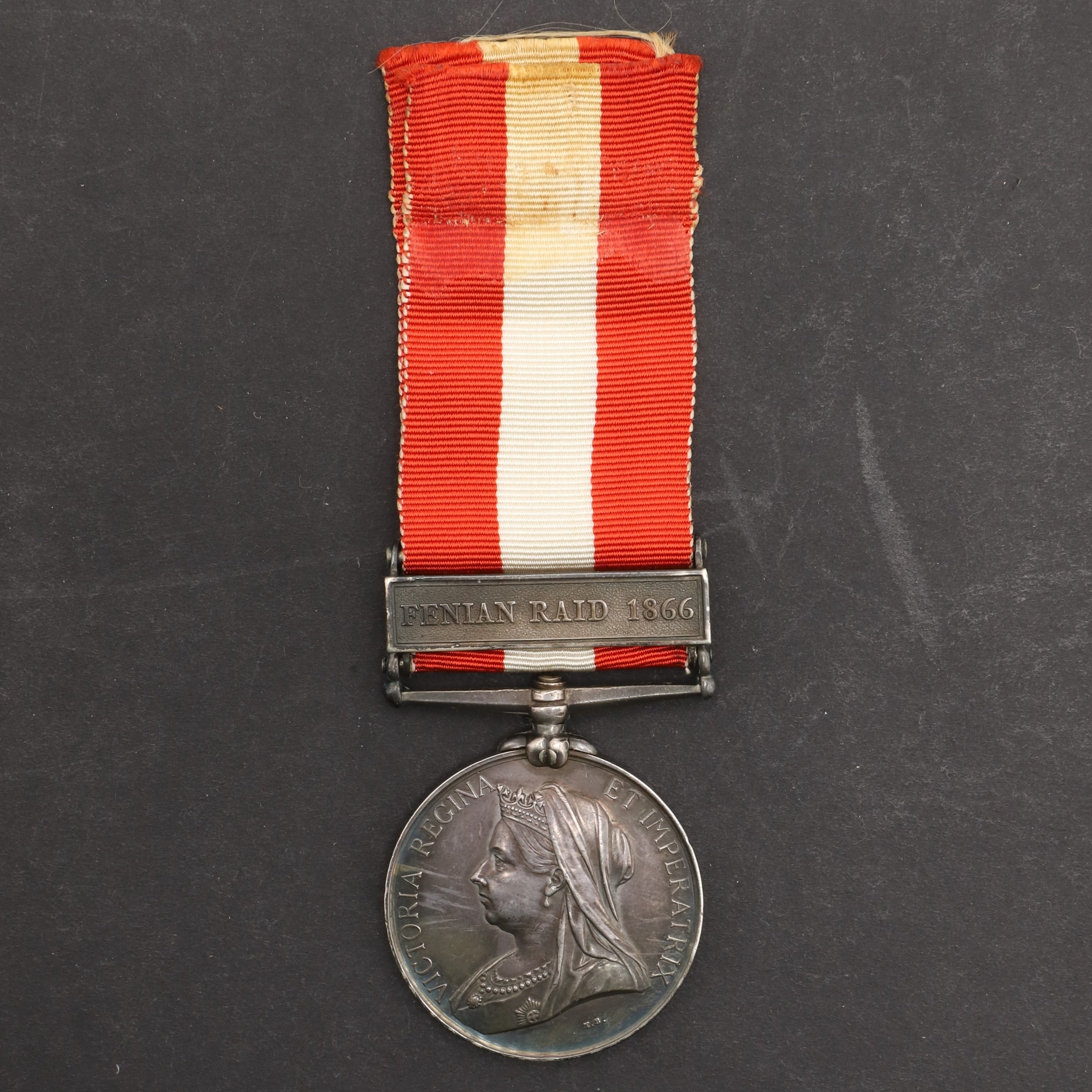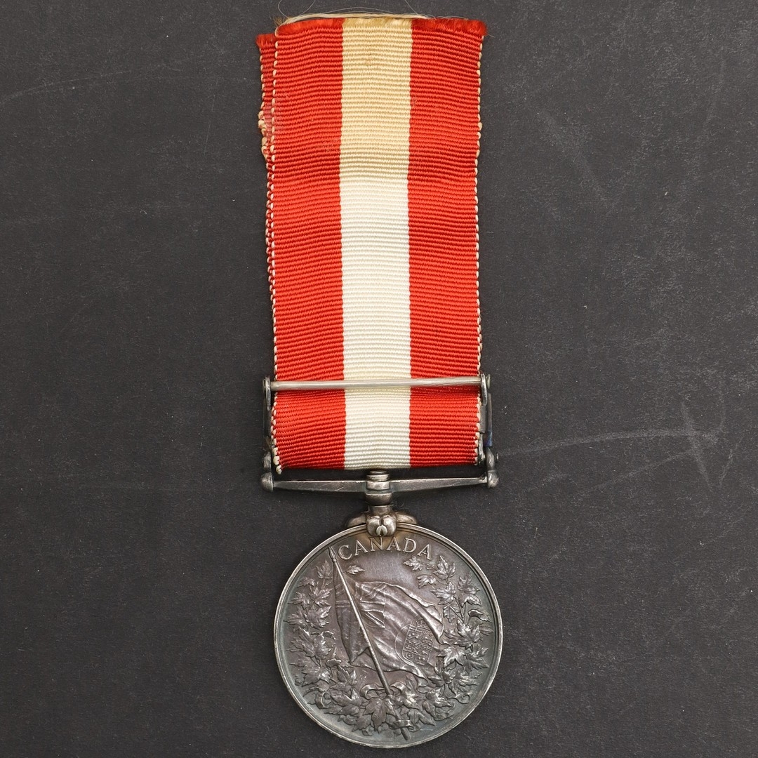 A CANADA GENERAL SERVICE MEDAL 1866-70 WITH FENIAN RAID 1866 CLASP TO I COMPANY. A Canada General Service Medal with Fenian Raid 1866 clasp named to Lt J.C. Frank Lucan I. Co. With copy roll suggesting 30 recipients for this unit including two Ensigns, one Lieutenant and one Cpatain.