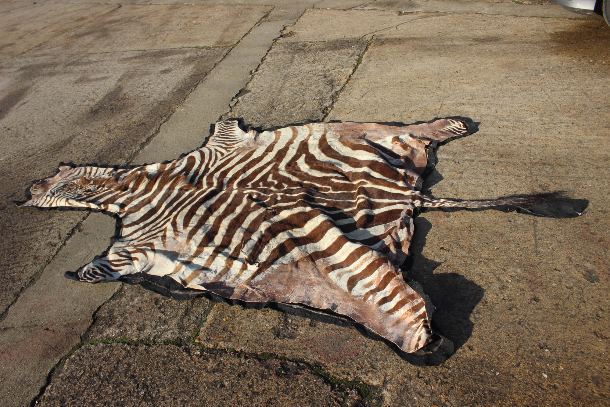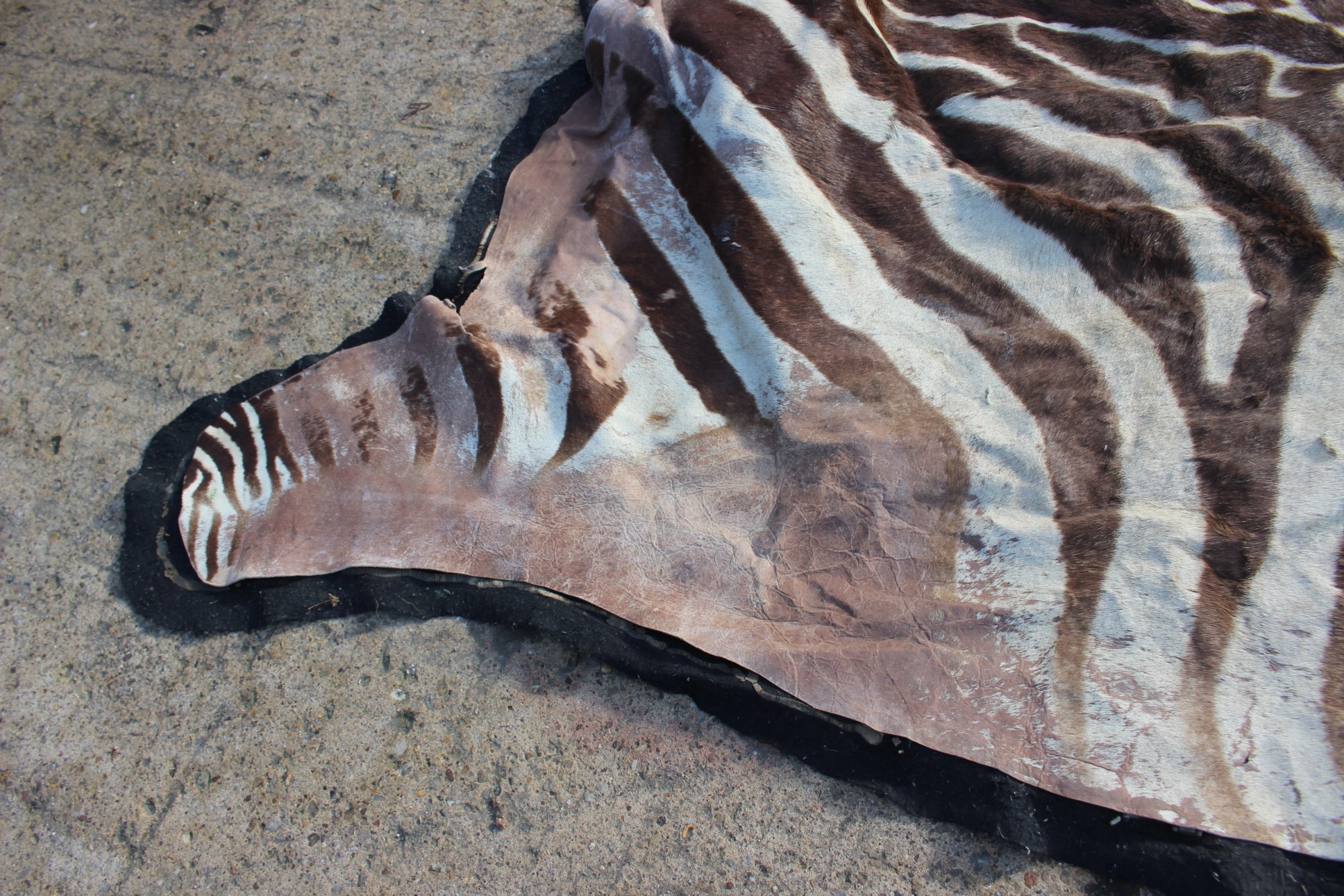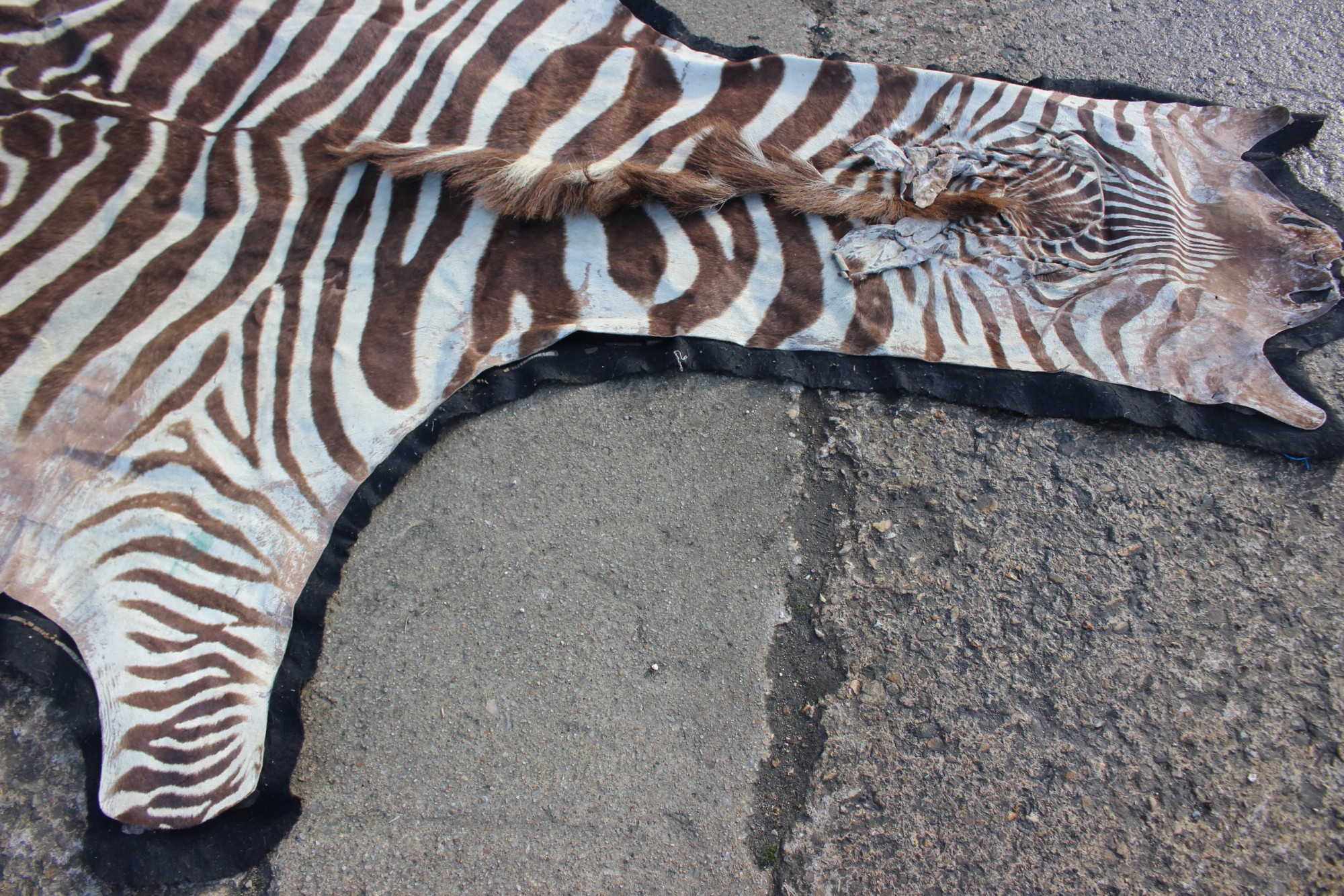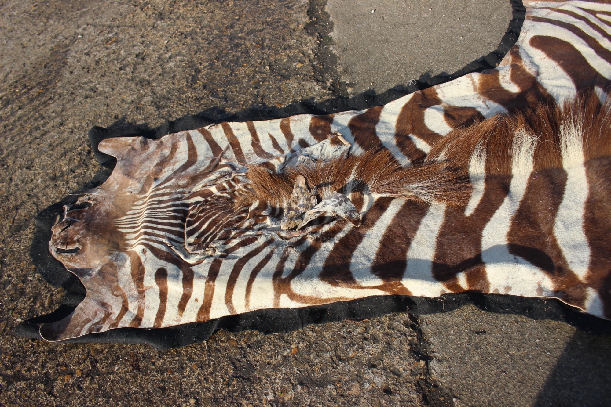 A mounted plains zebra (Equus Burchelli) skin, 115" long on felt backing (cuts)
