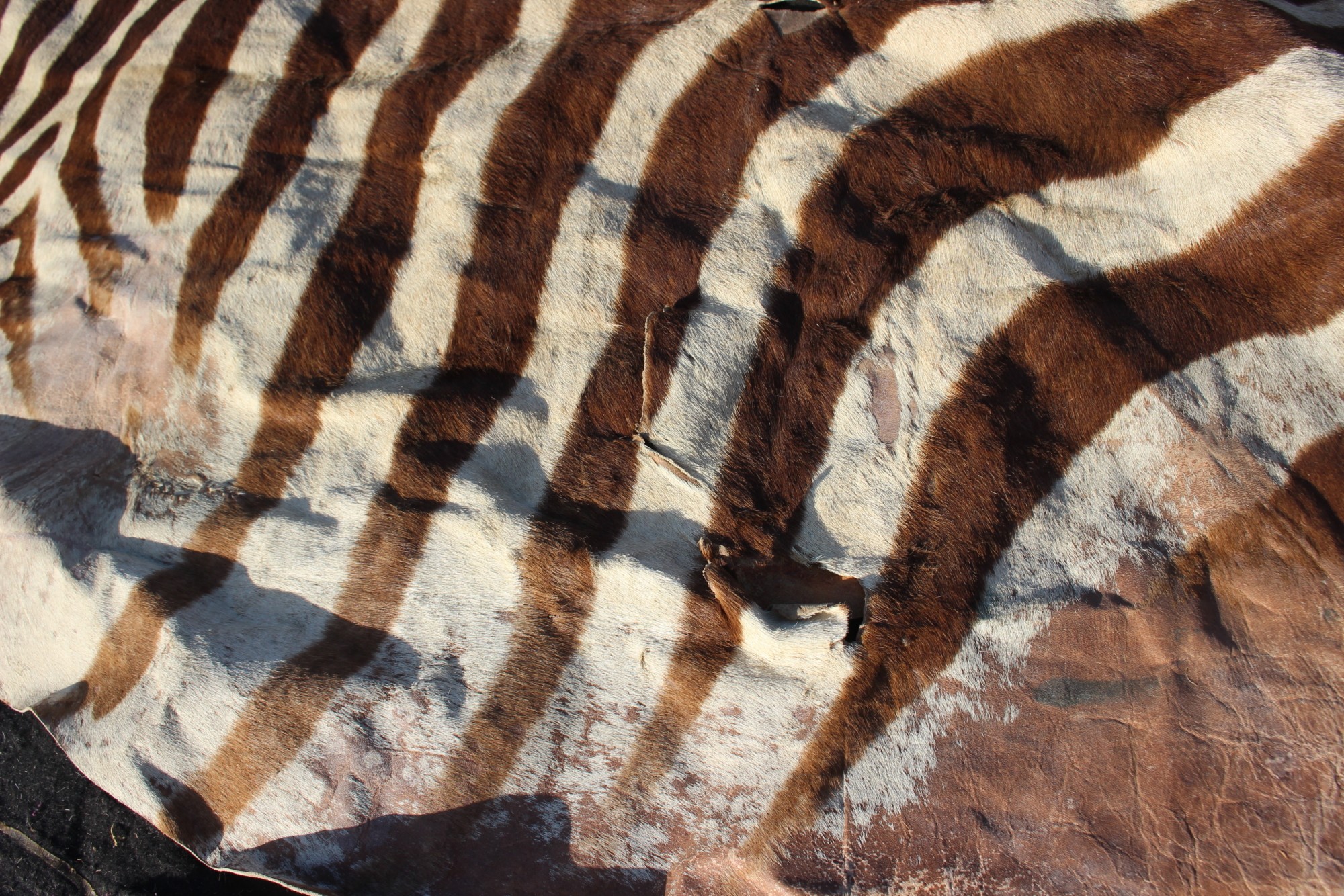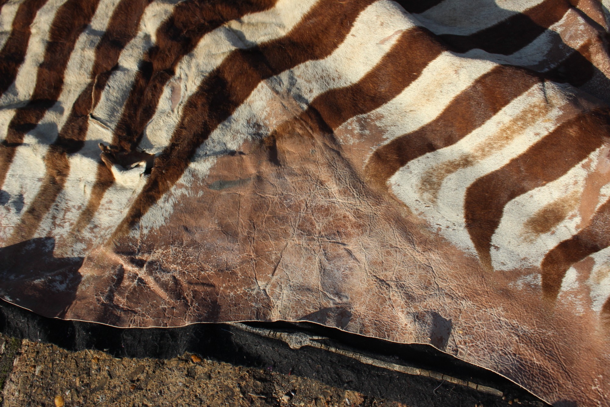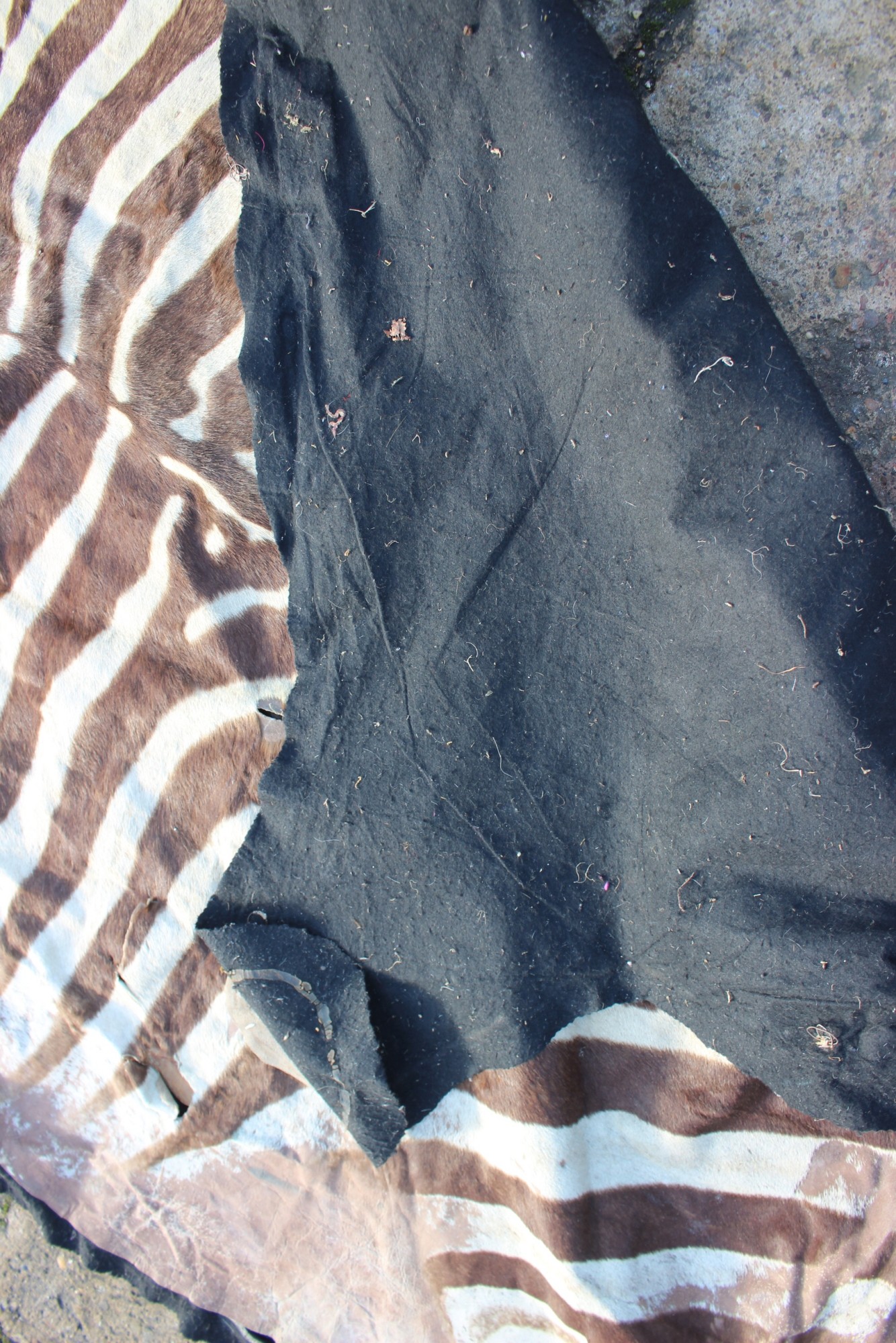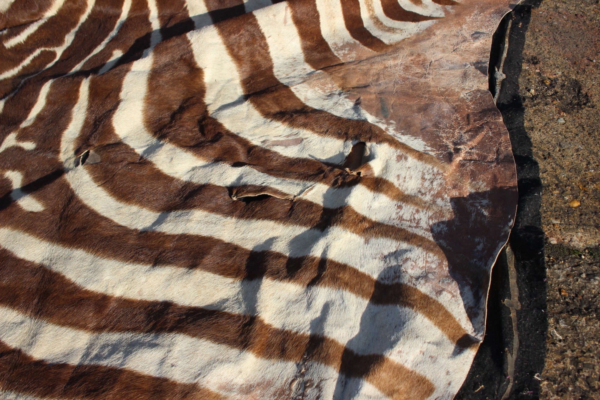 A mounted plains zebra (Equus Burchelli) skin, 115" long on felt backing (cuts)