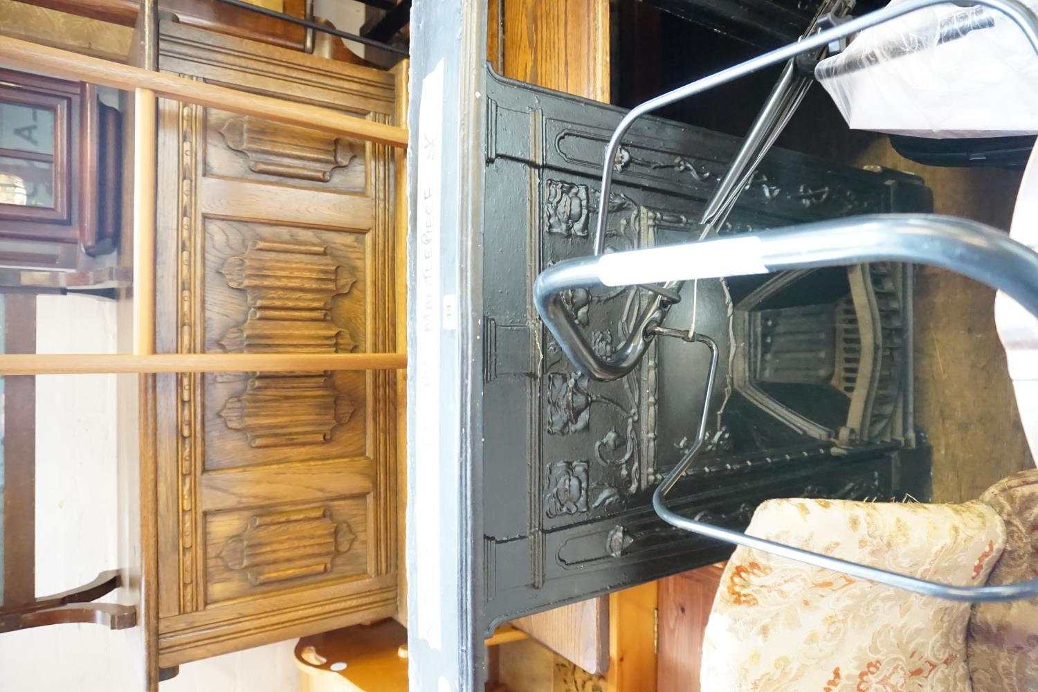 An Arts & Crafts period decorative cast iron fire surround