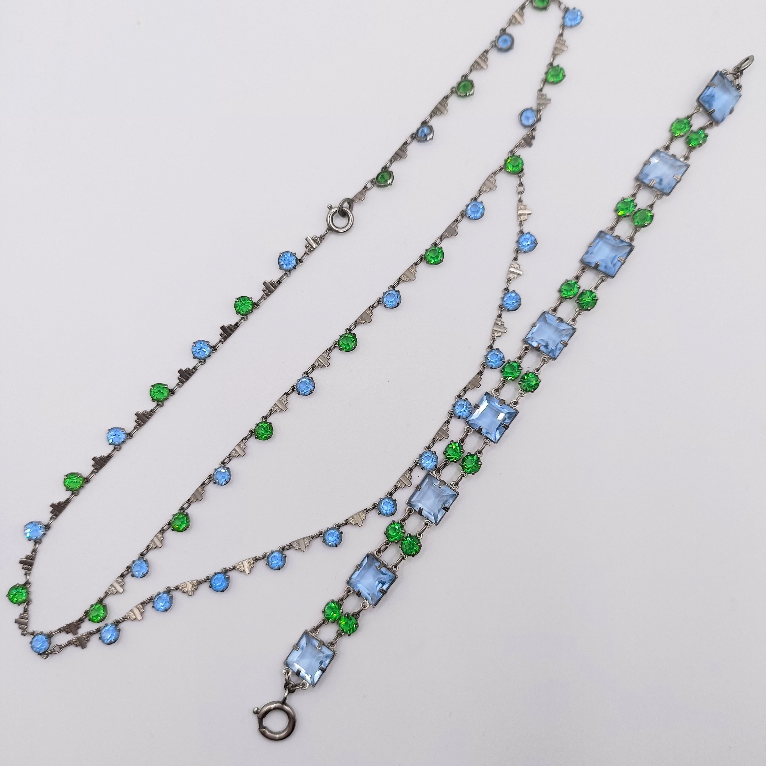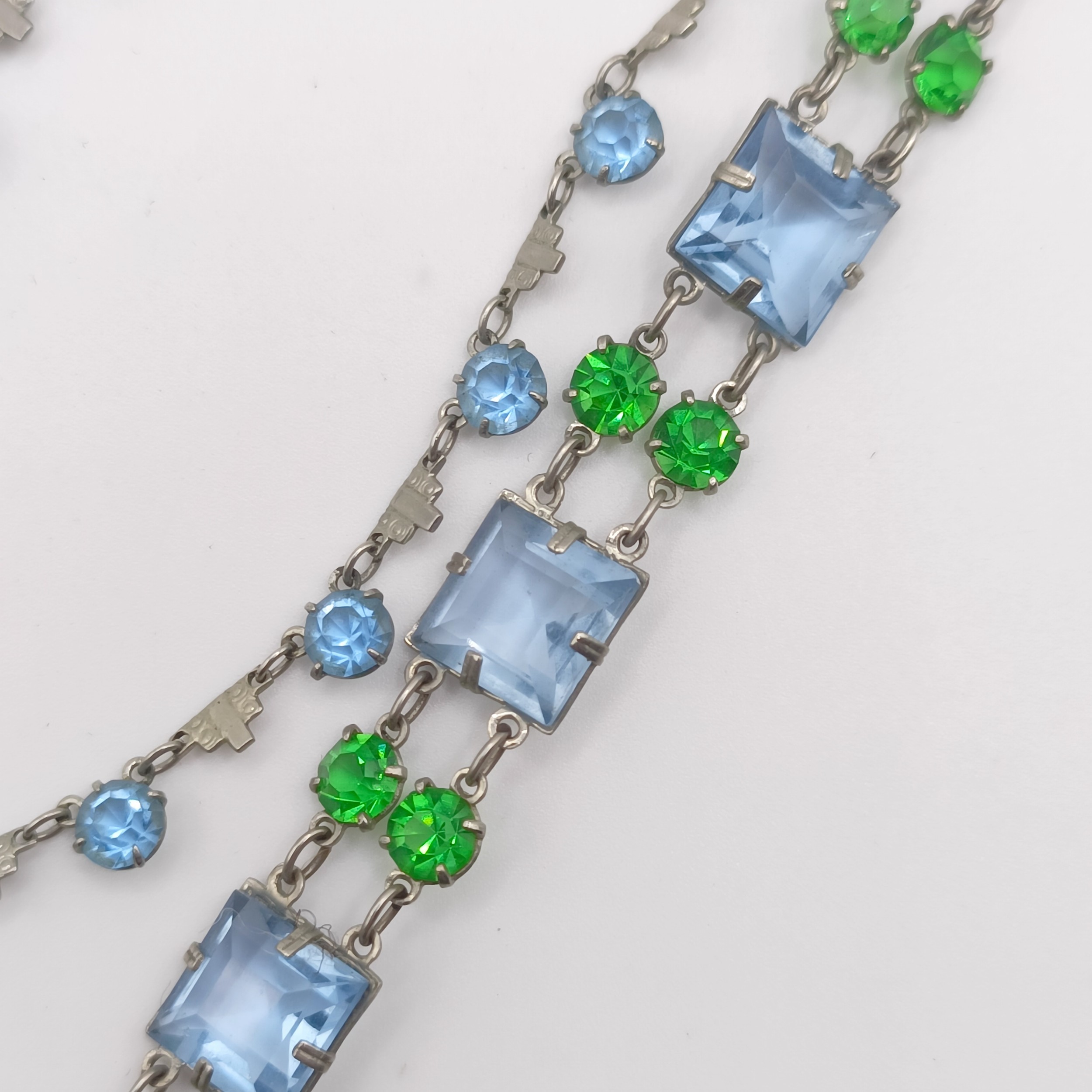 An Art Deco silver coloured metal and paste bracelet, and a similar necklace