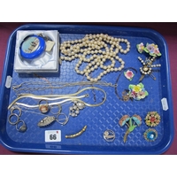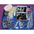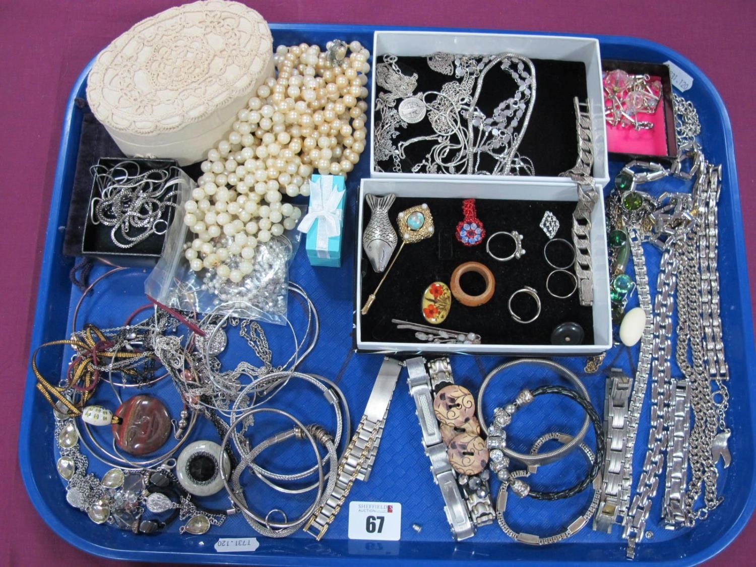 Assorted Costume Jewellery, including hallmarked silver bracelet, of textured finish (19cm long), imitation pearls, rings, further bracelets, chains, bangles, etc :- One Tray