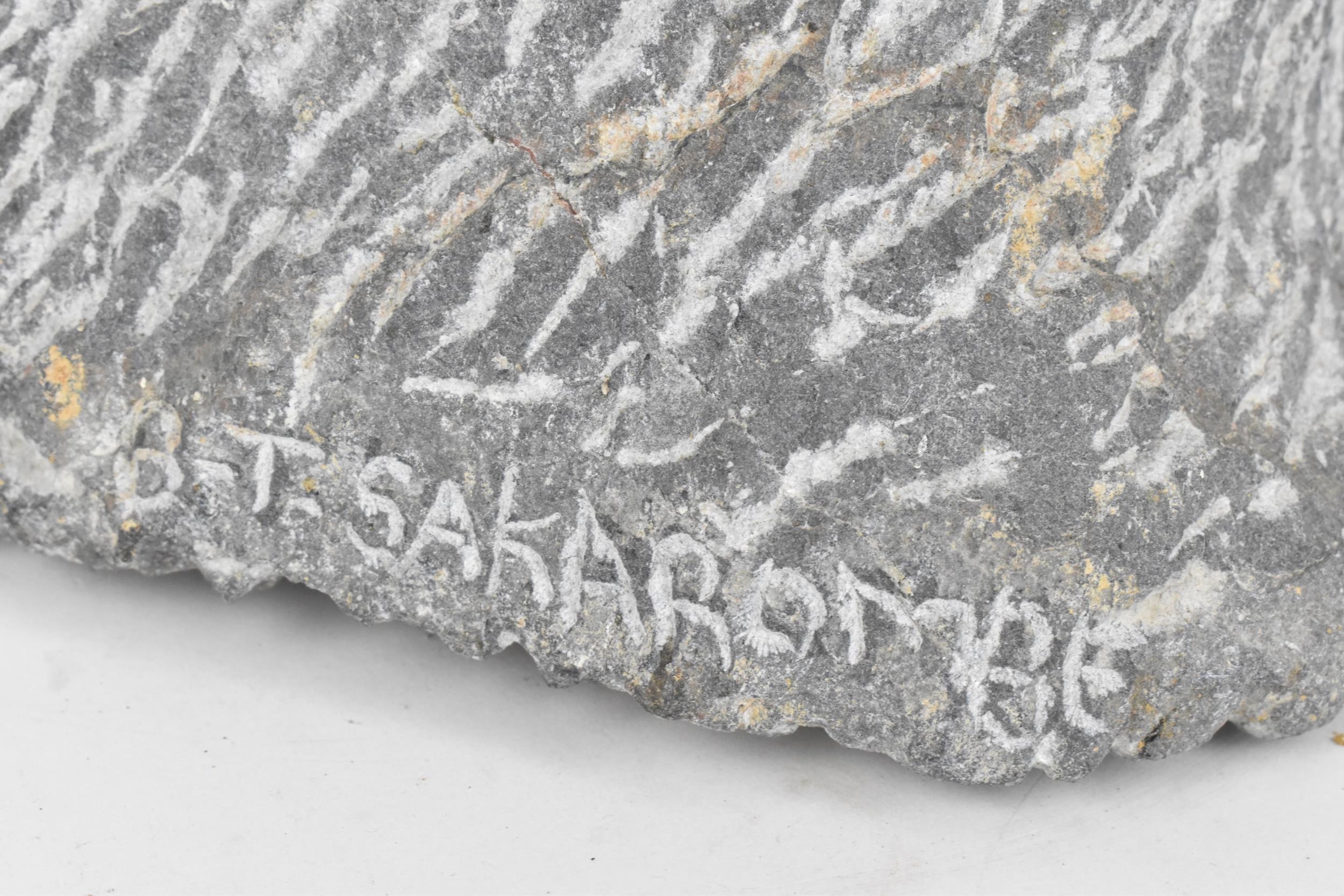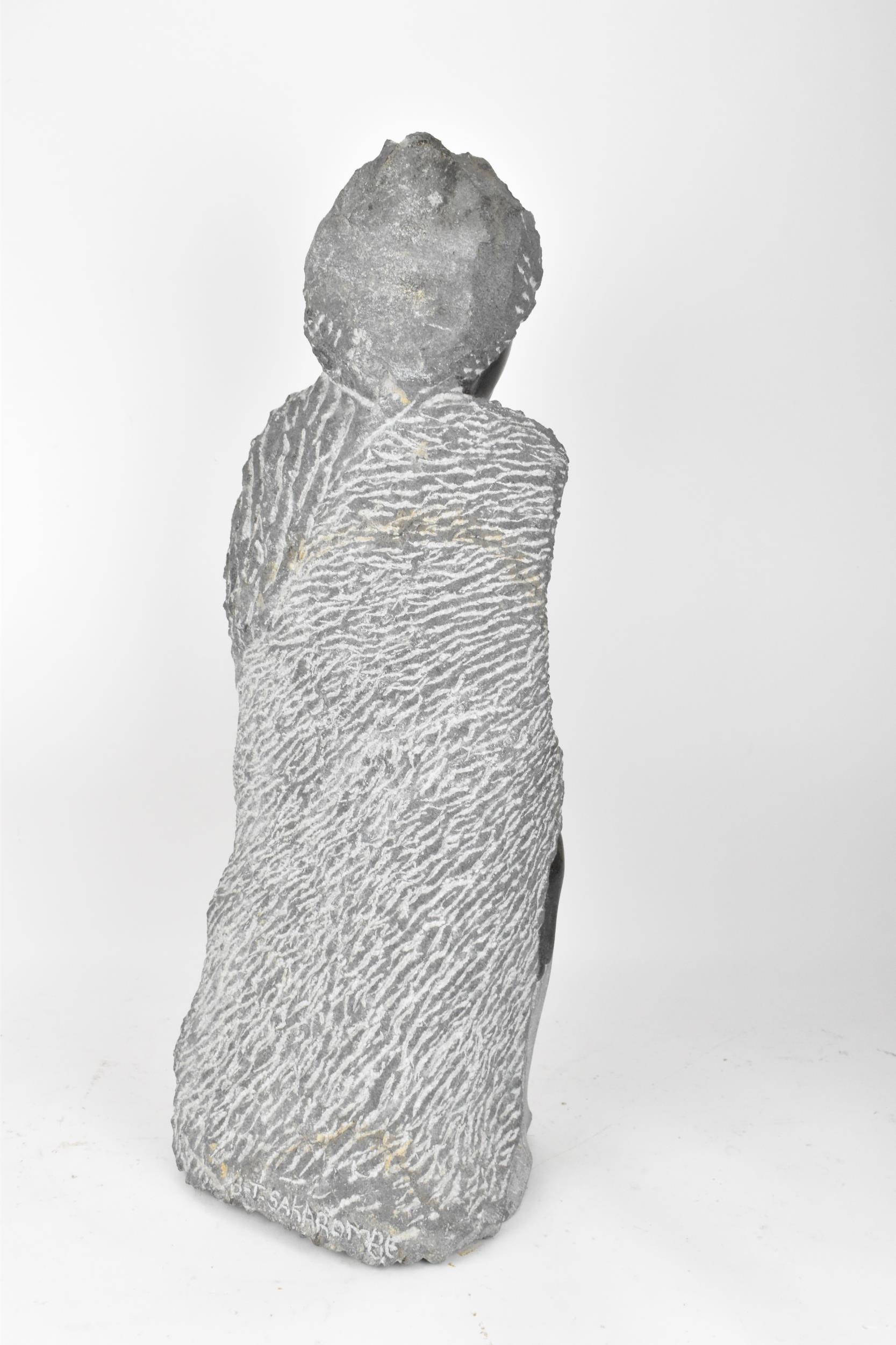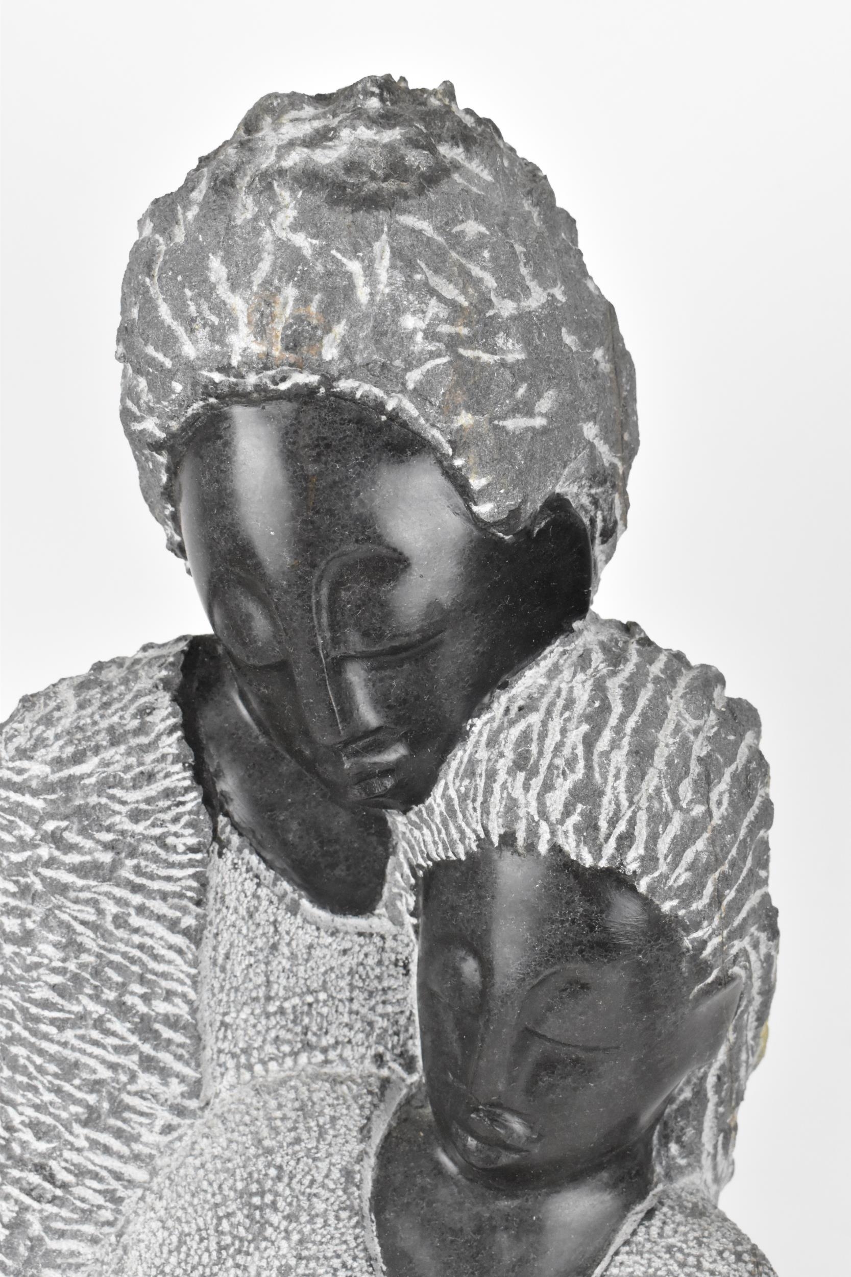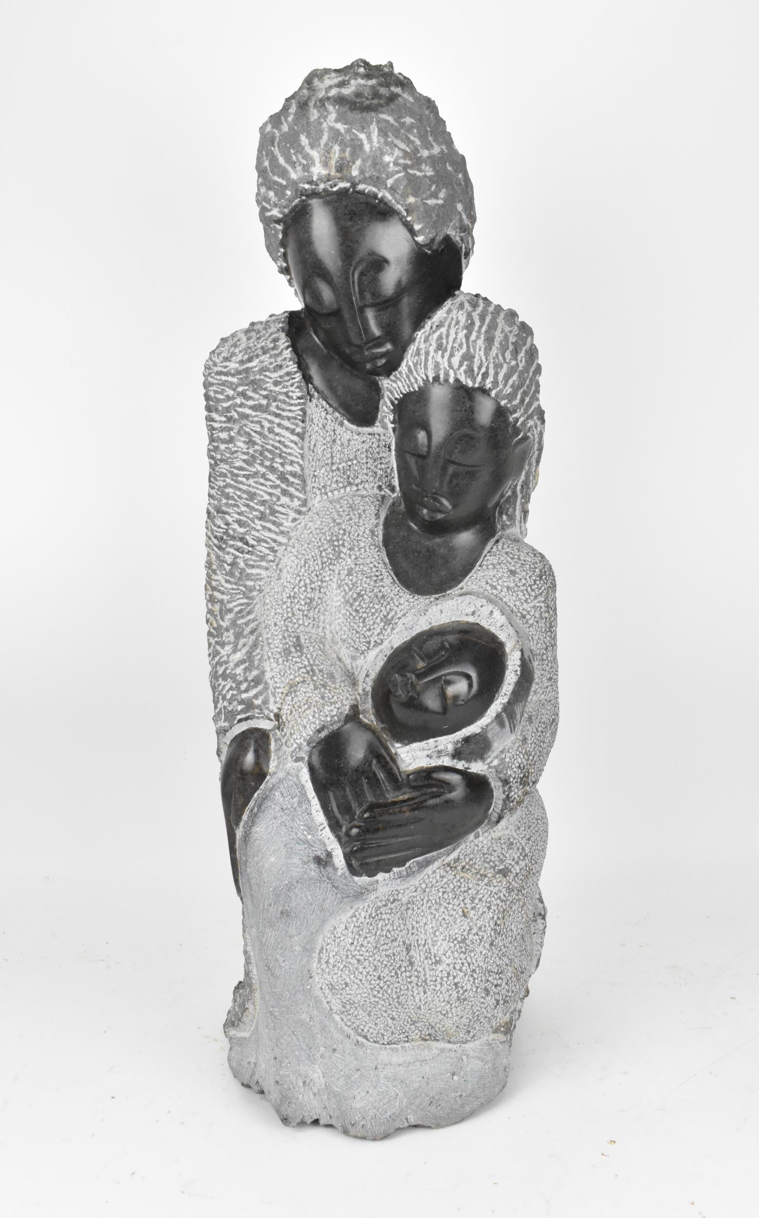 'Proud Parents', carved springstone figural sculpture, 61 cm high