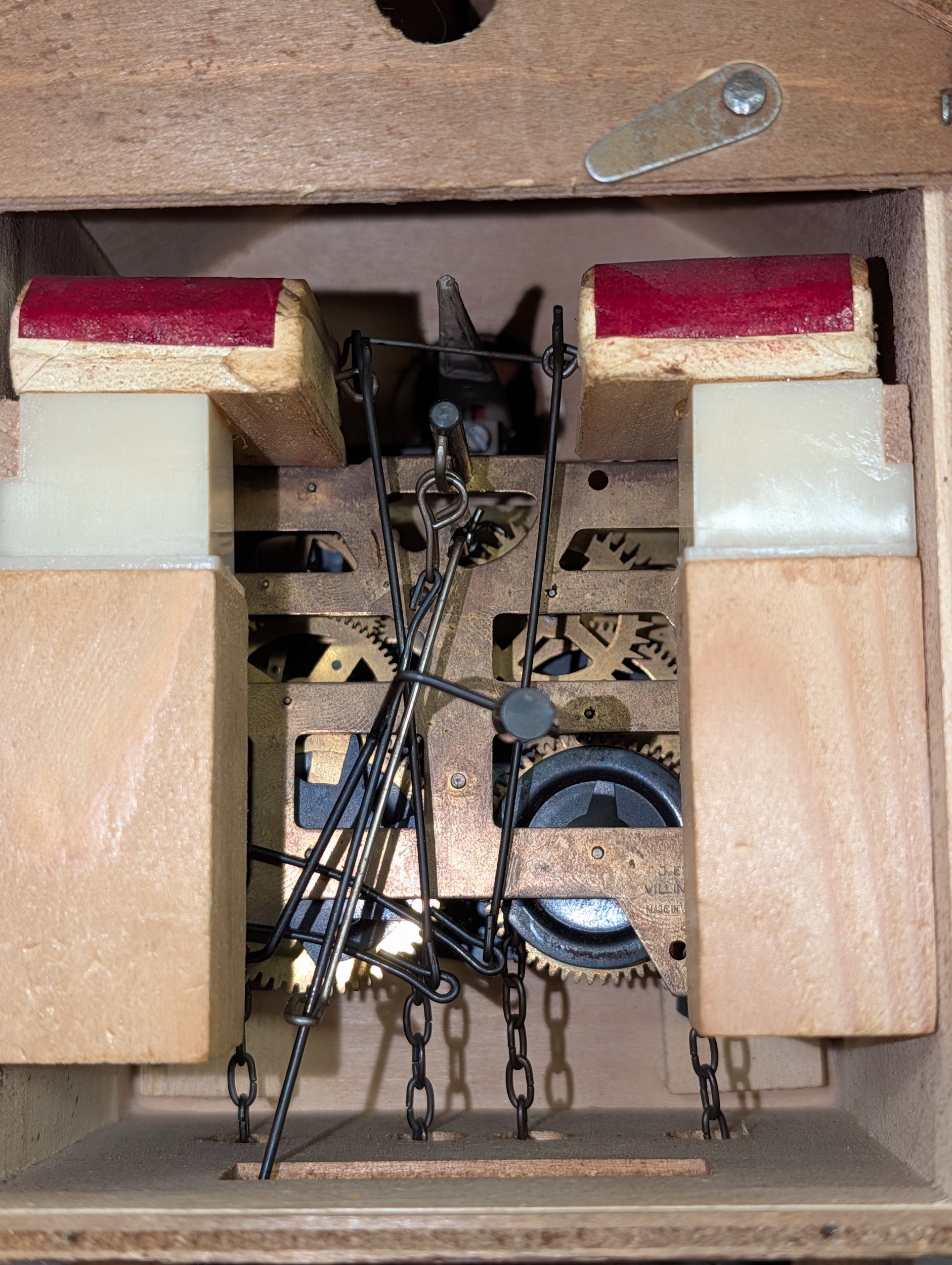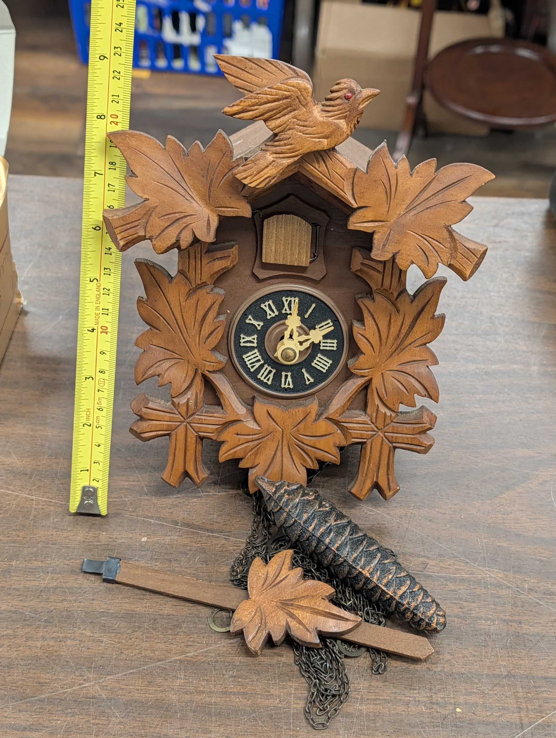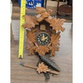 Vintage West German Carved Wood Cuckoo Clock with Bird and Leaf Motif, One Weight Missing