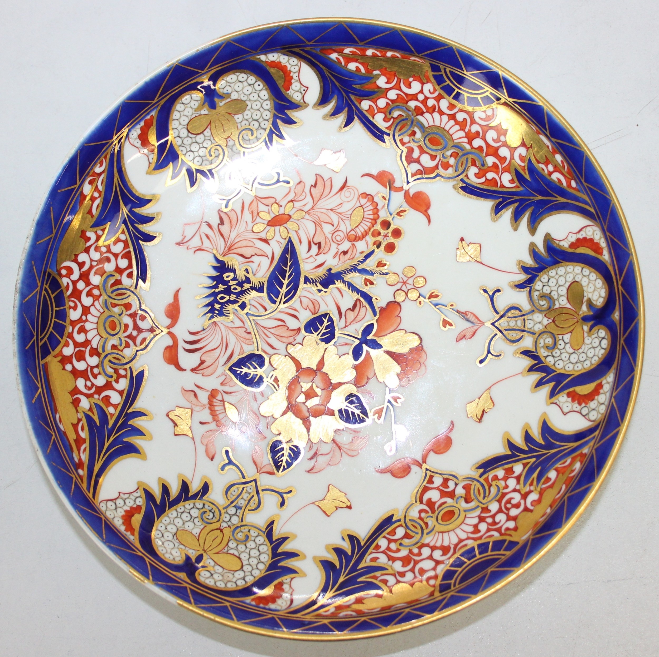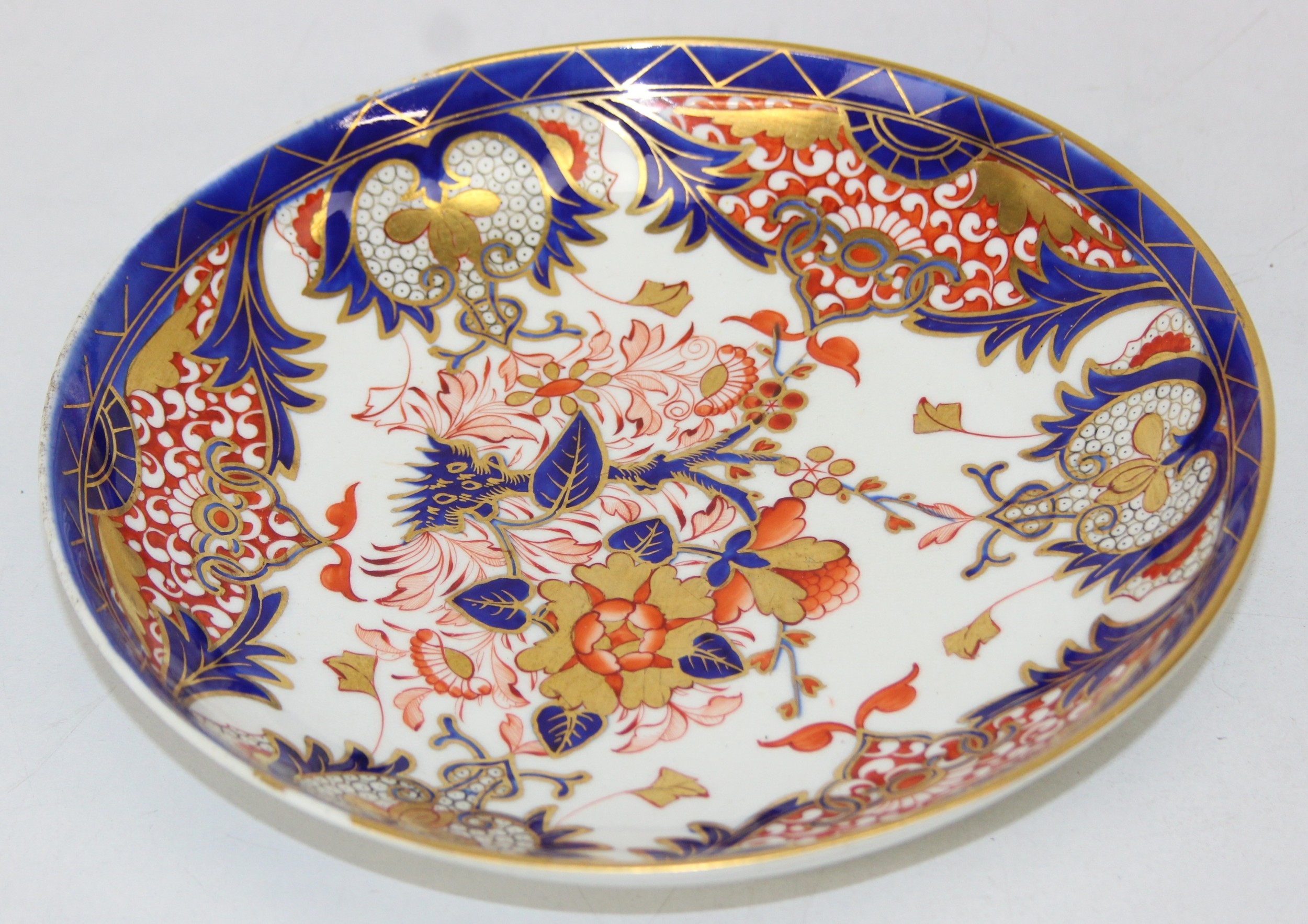 An antique Derby porcelain dish in the imari colours, Bloor Derby mark verso, early 19th century, 22cm