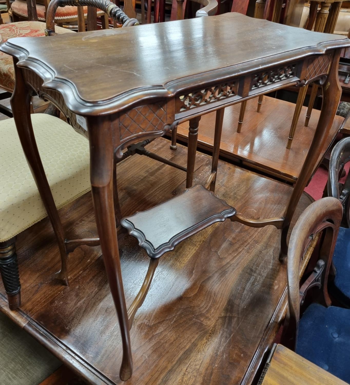 An Edwardian Mahogany two tier Side Table. 39 x 65 x H 70 cm approx.