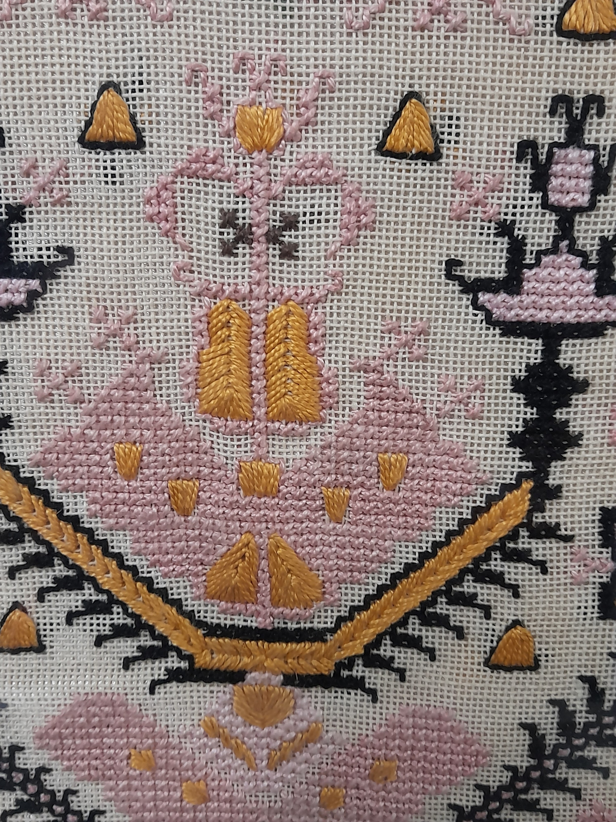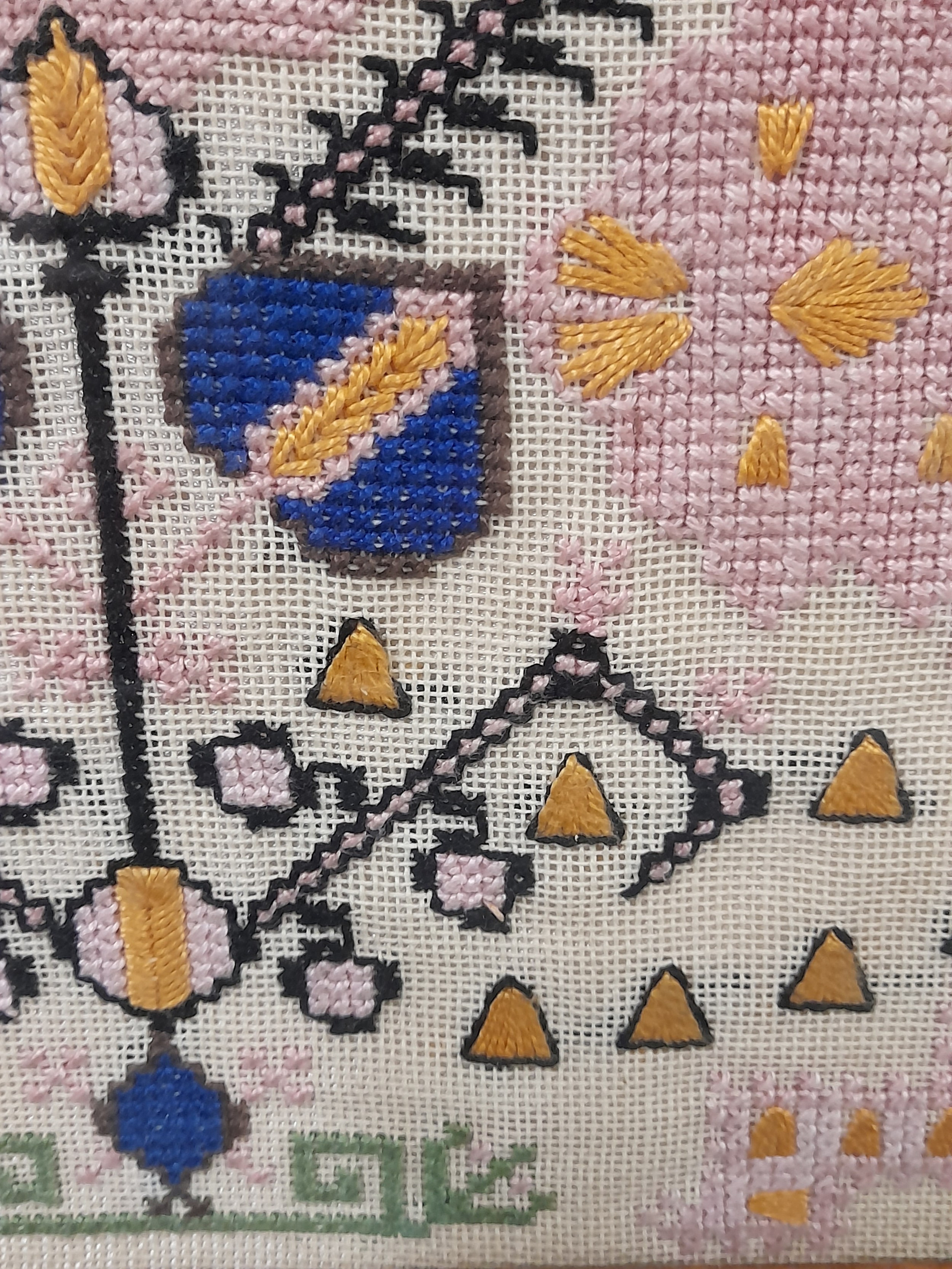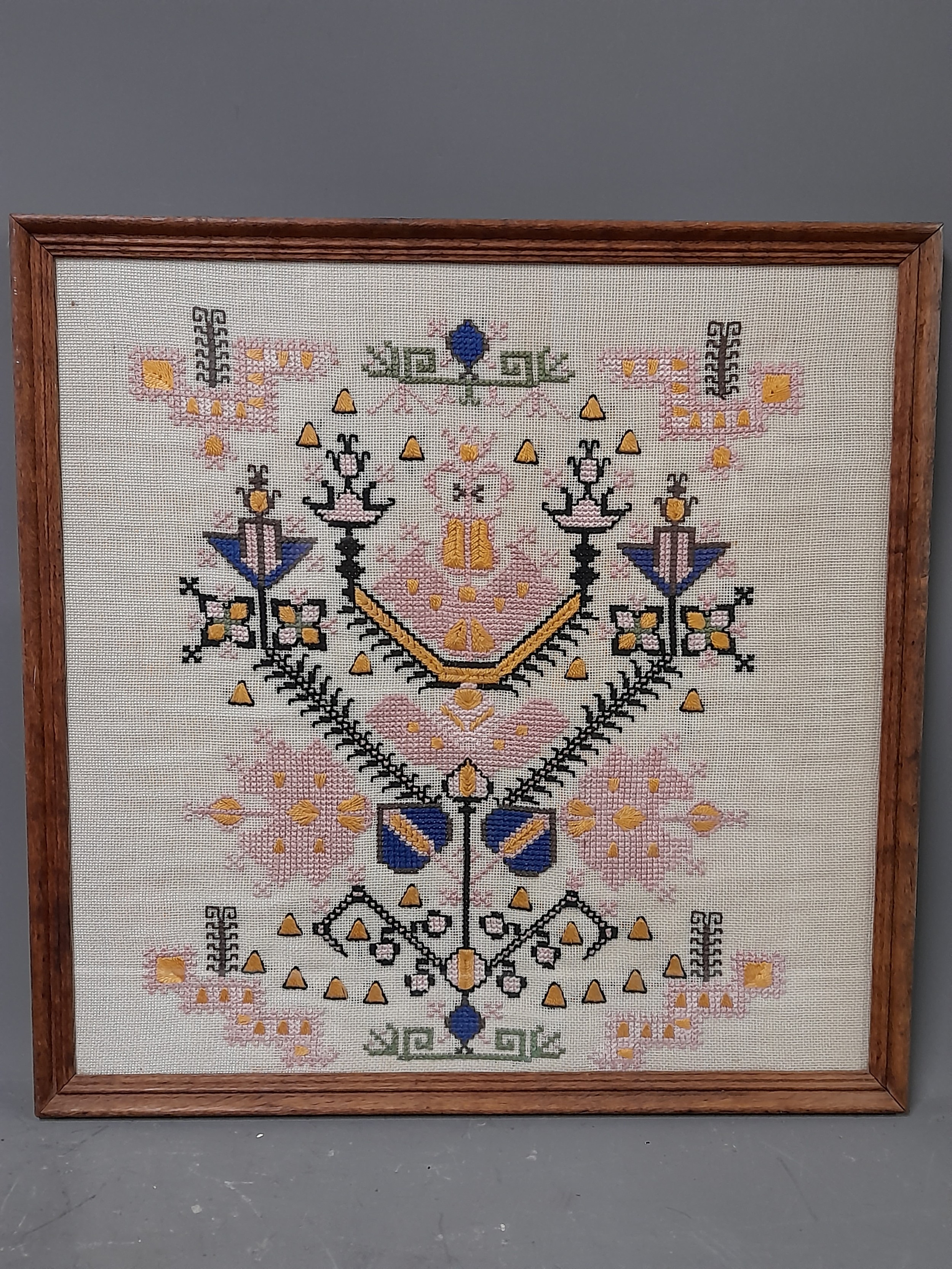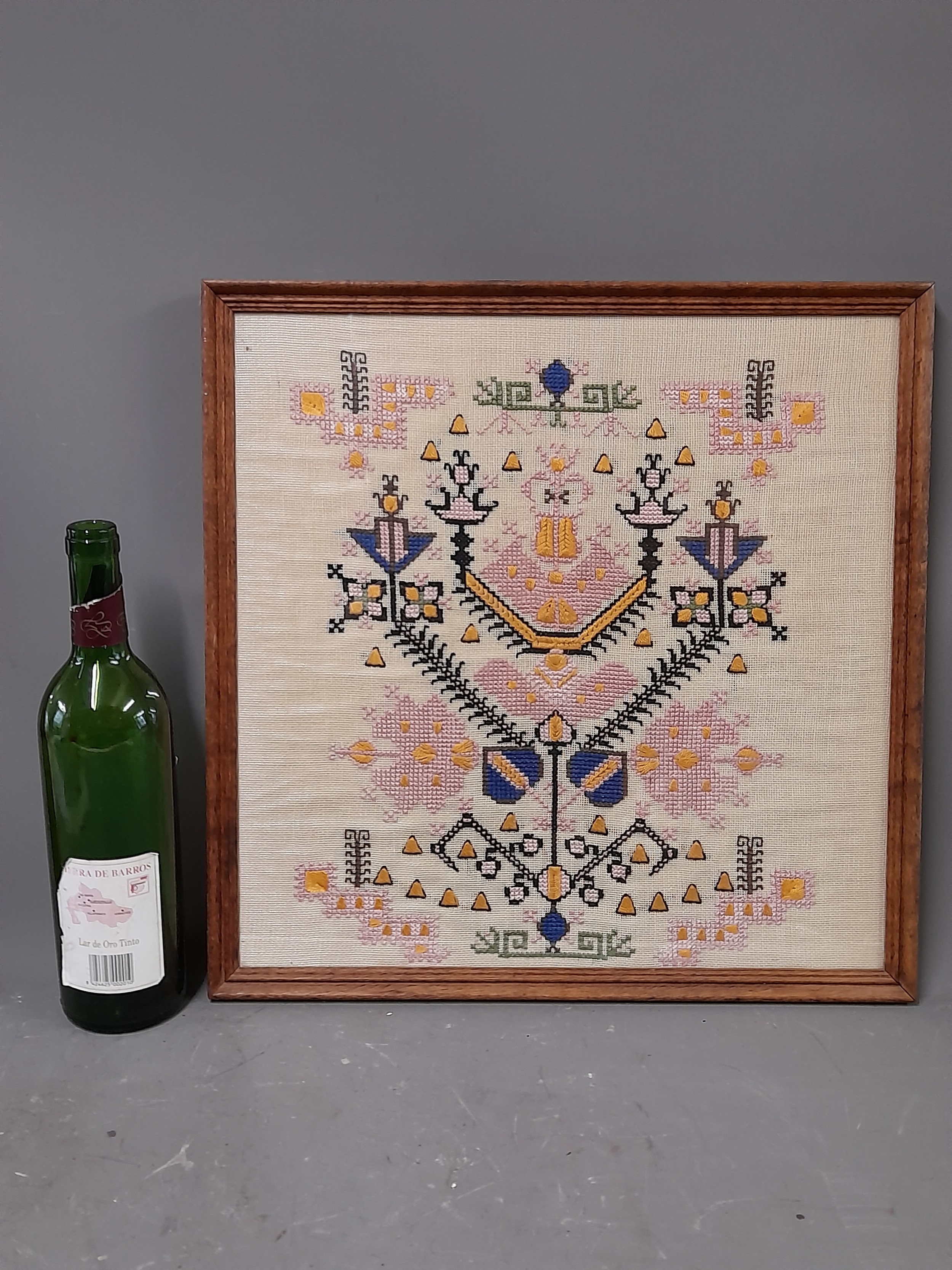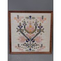 Framed and Glazed Vintage Embroidery, 44cm x 44cm