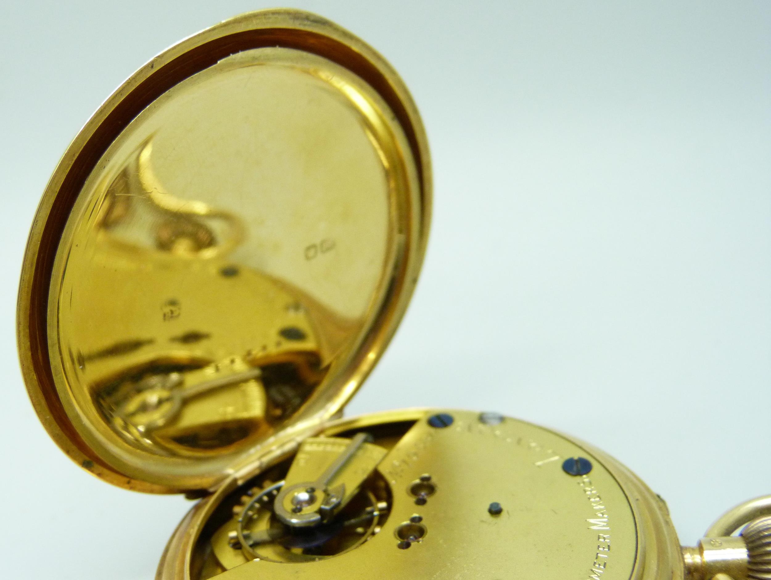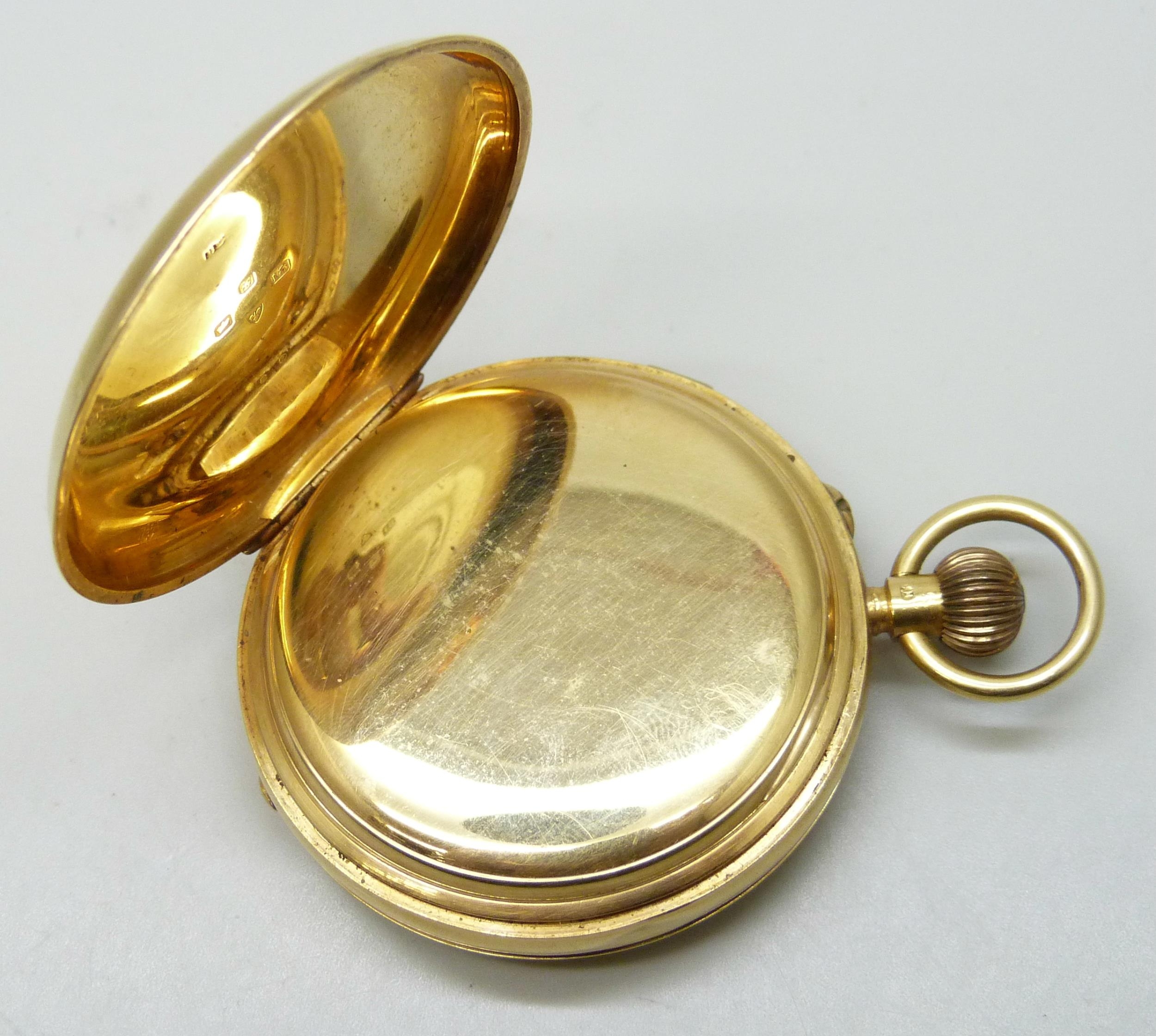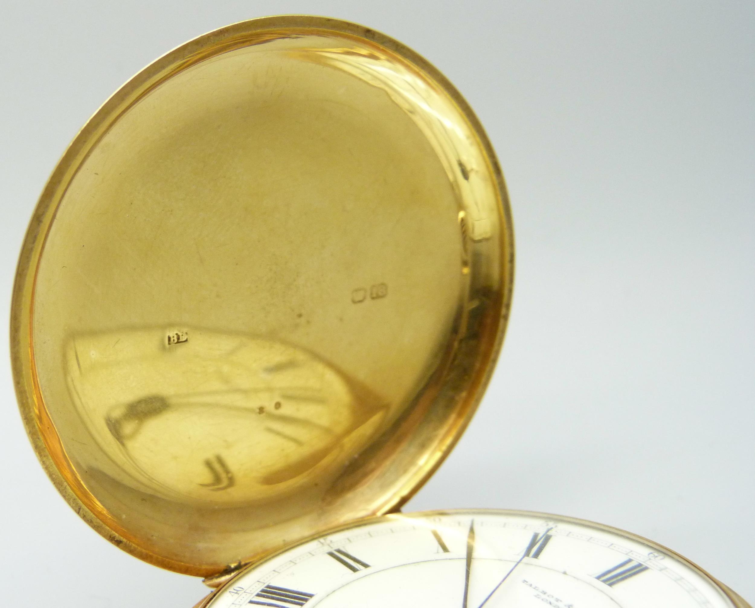 An 18ct gold cased full hunter pocket watch, the dial marked Talbot & Son, London, hallmarked Chester, 1907, 134.3g