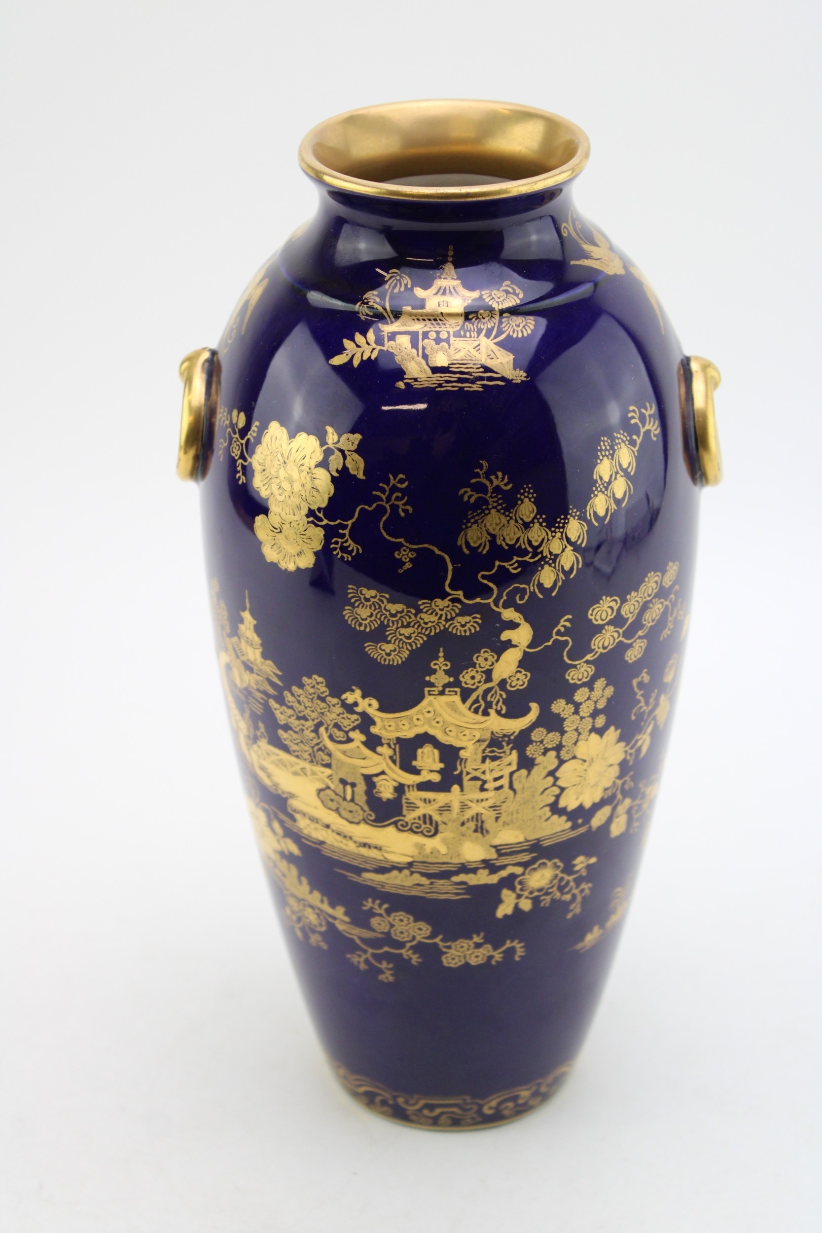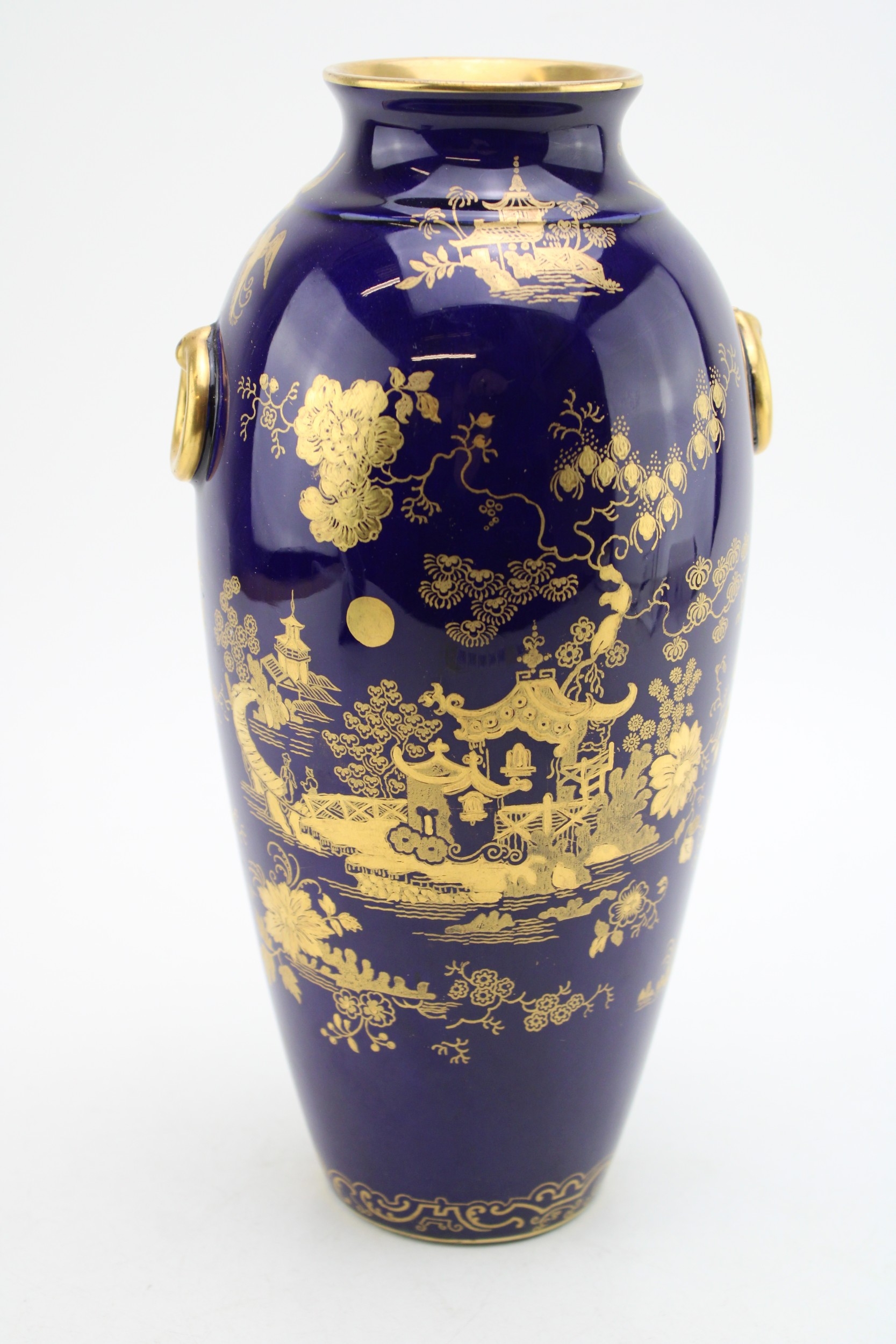 Cauldon pottery vase, decorated with traditional oriental scenes, 27.5cm tall.