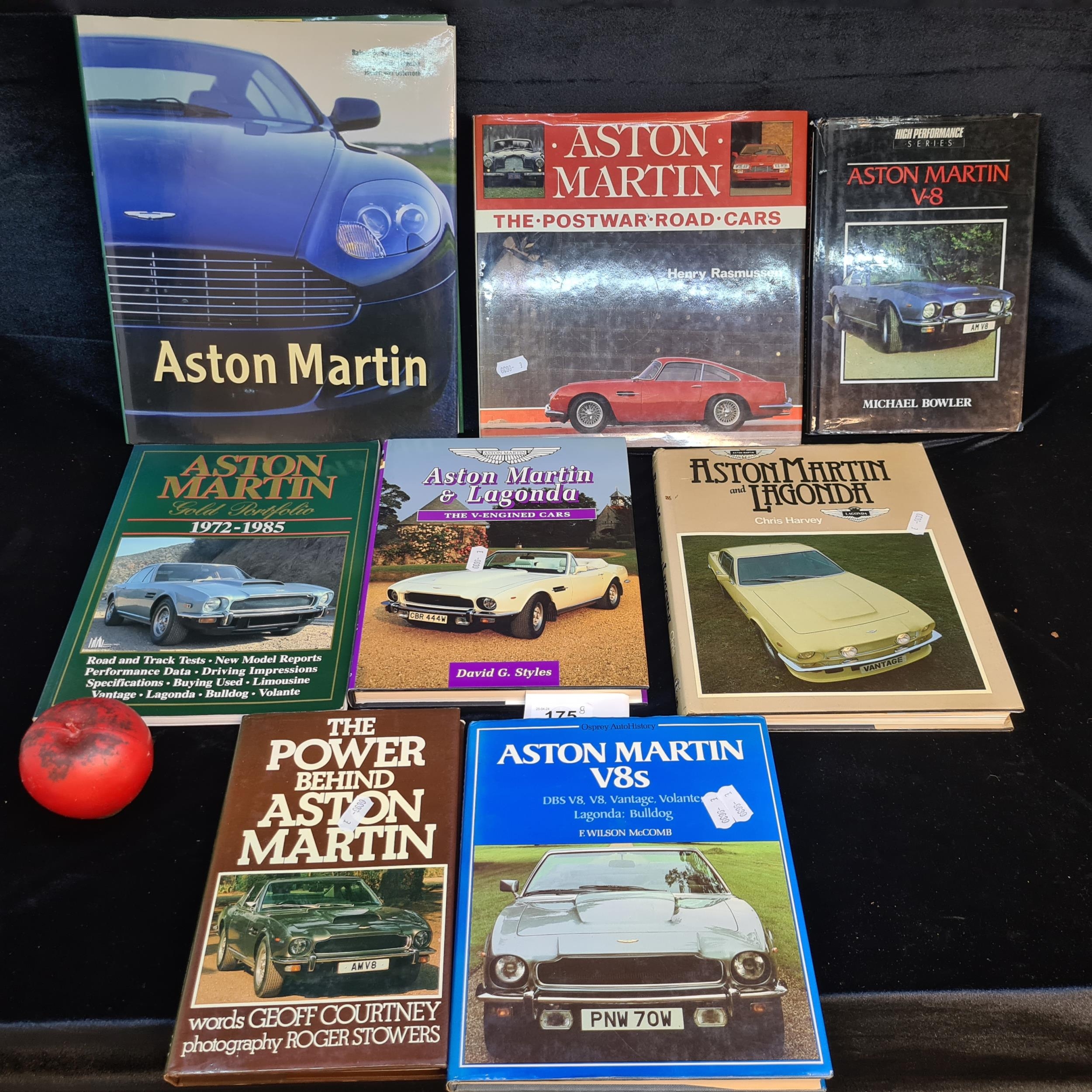 A selection of eight mostly hardback books, all based on the iconic Aston Martin car. Dating from 1970s to 1990s. Seven hardbacks all include their original dustjackets. Great collectors books.