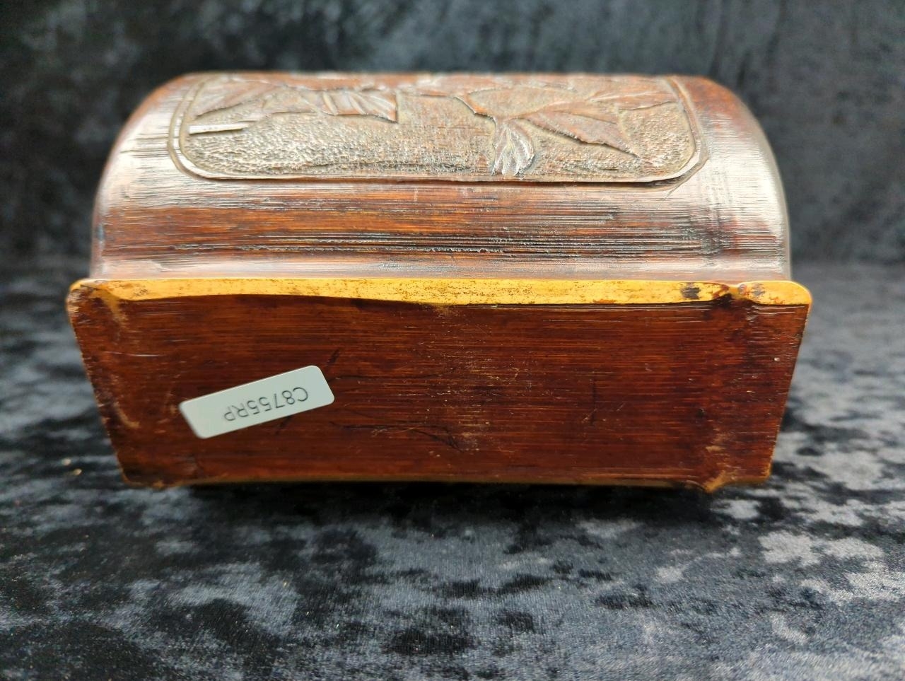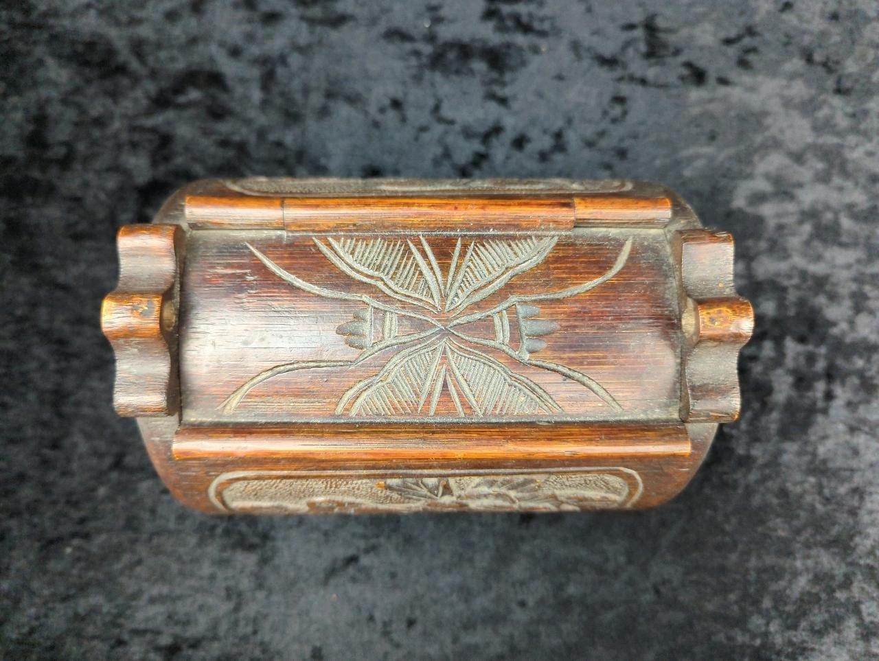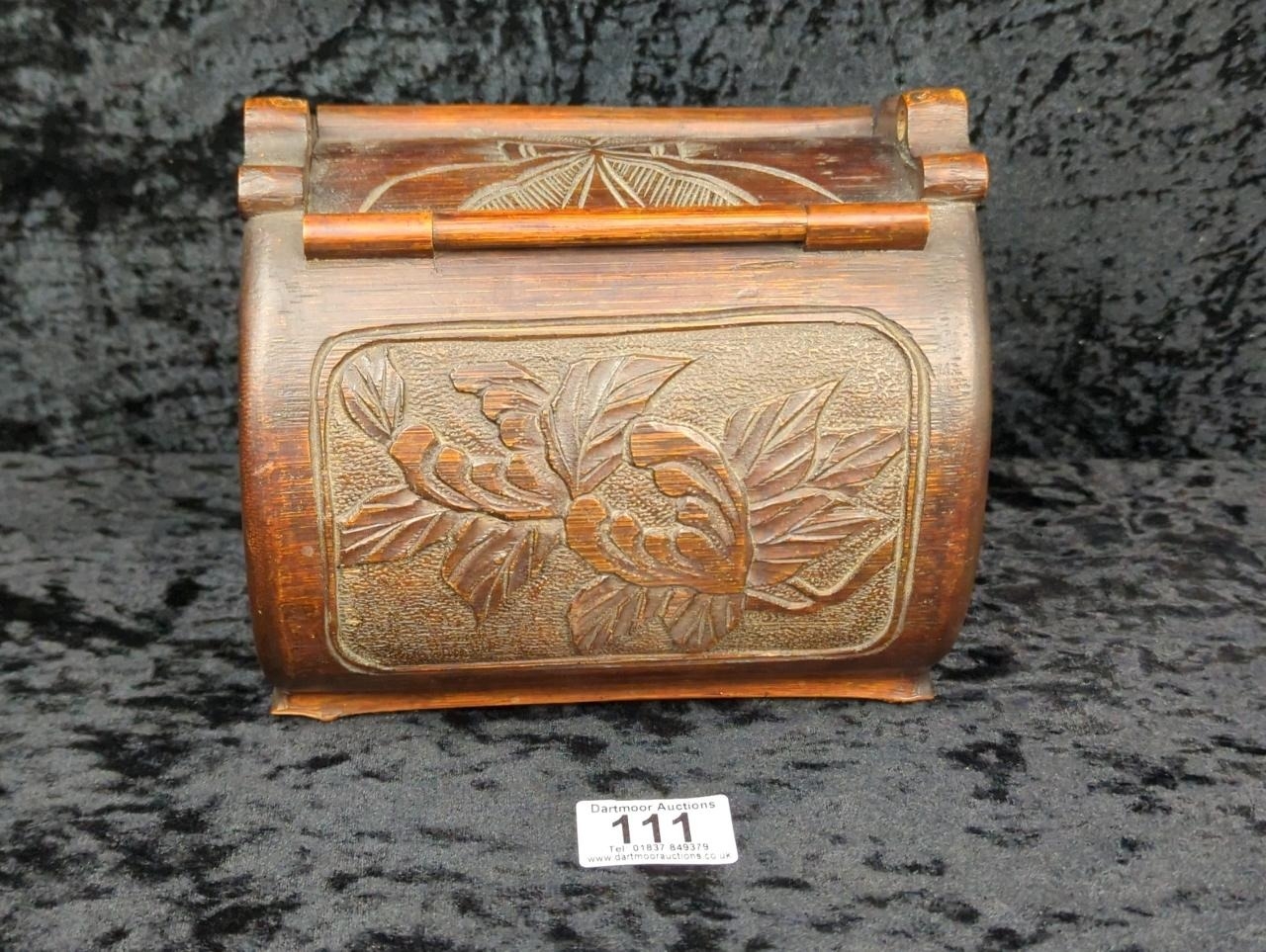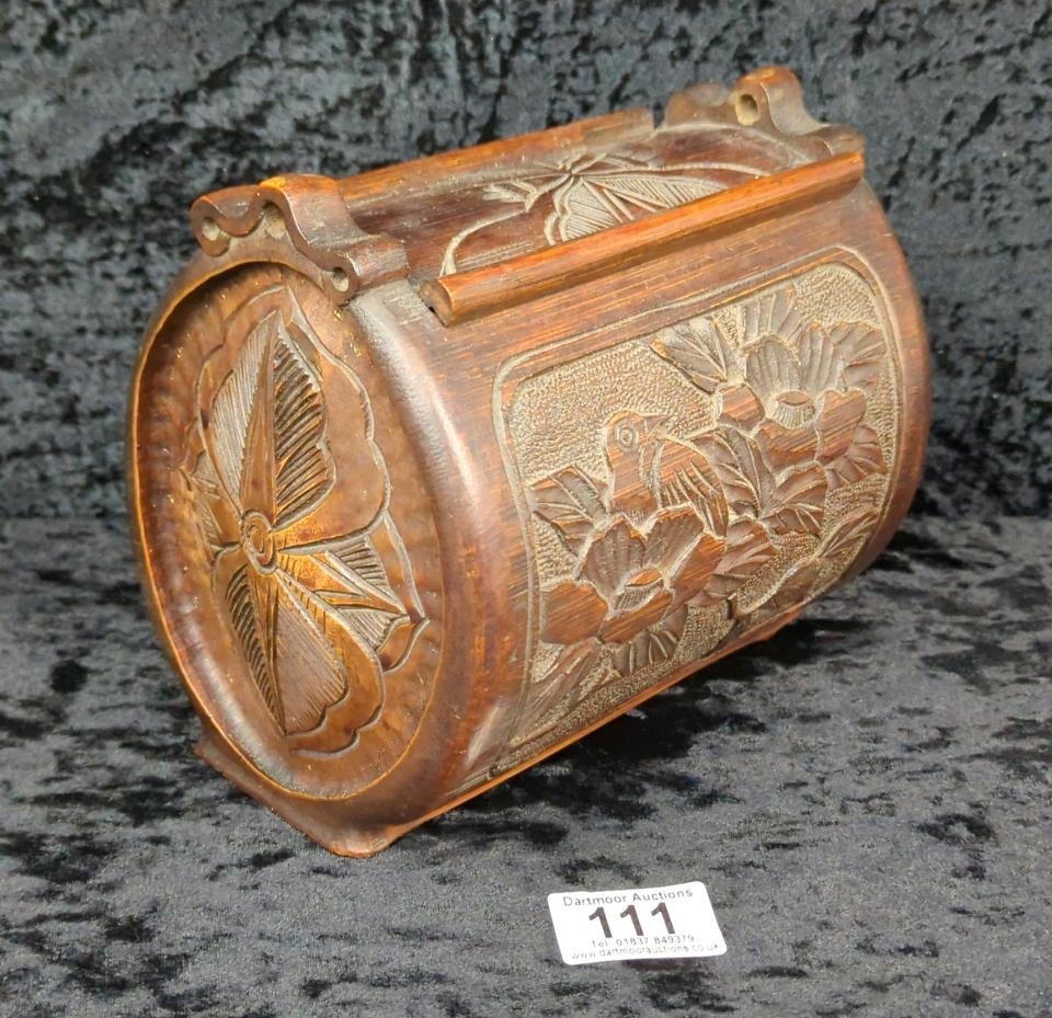 Beautiful antique early 20th Century Chinese hand-carved bamboo scholar's box, or jewellery casket. Approx H16 x W18 x D13cm.