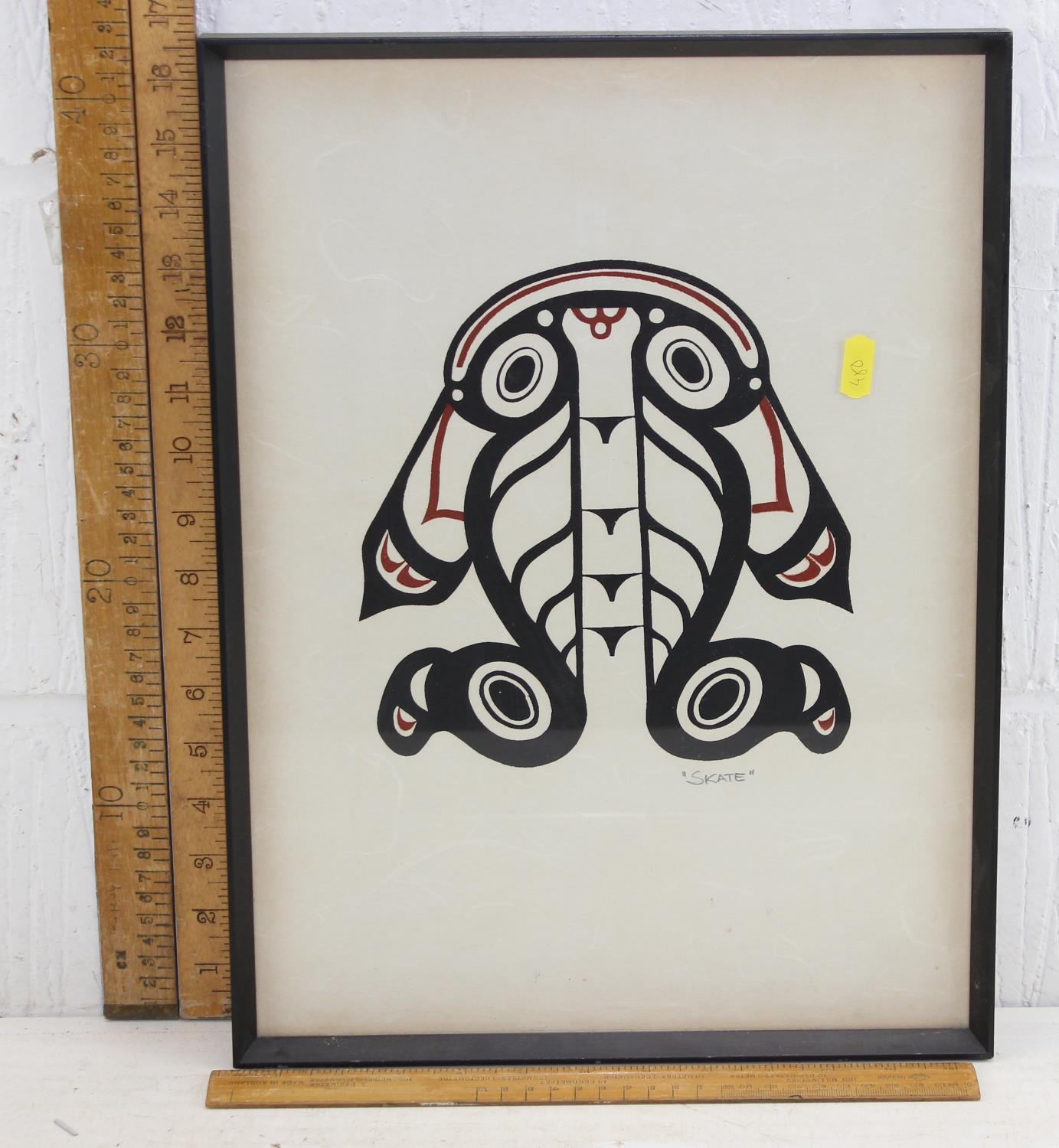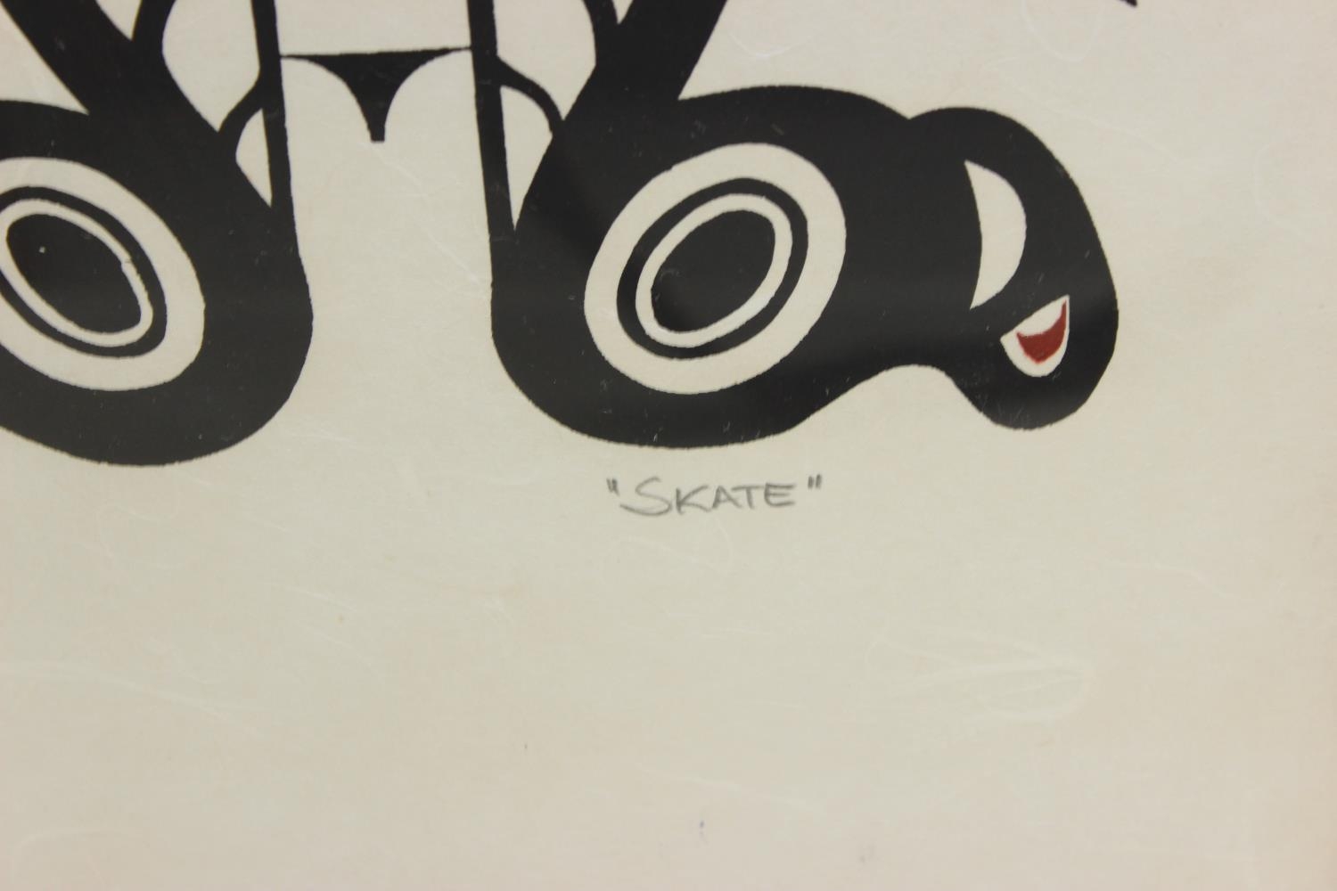 A tribal style screen print titled 'SKATE', unsigned.